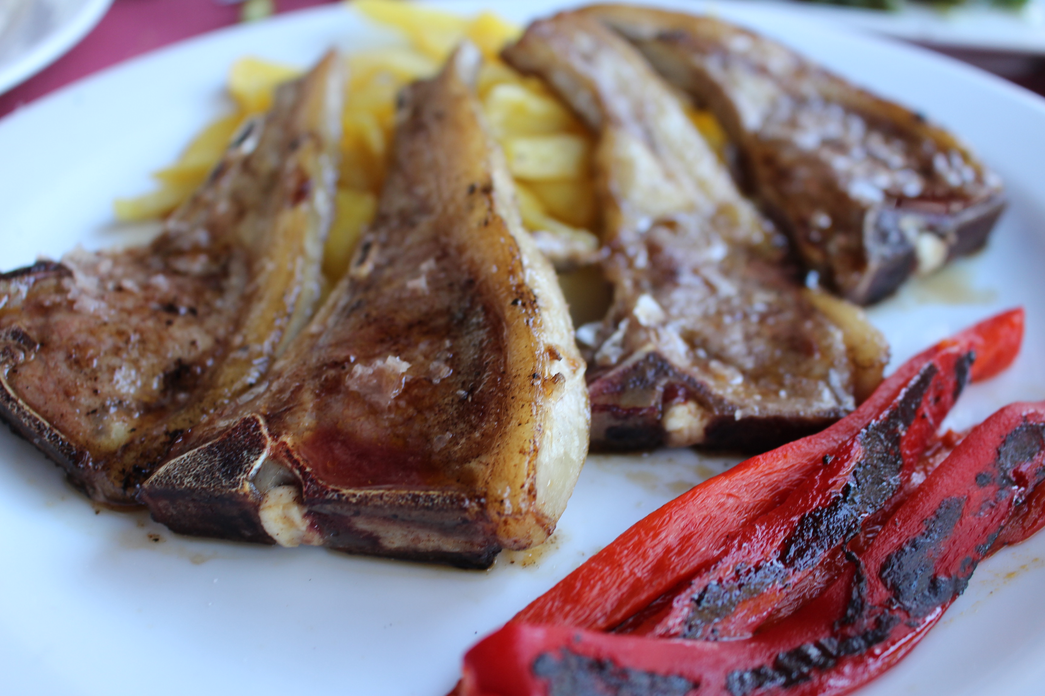 Probé las xouvas que para mí son el auténtico manjar de Galicia, pimientos de Herbón, unas chuletas de cordero gallego que me sorprendieron por su excelente sabor, no tan fuerte como el que tomamos en tierras castellanas.
