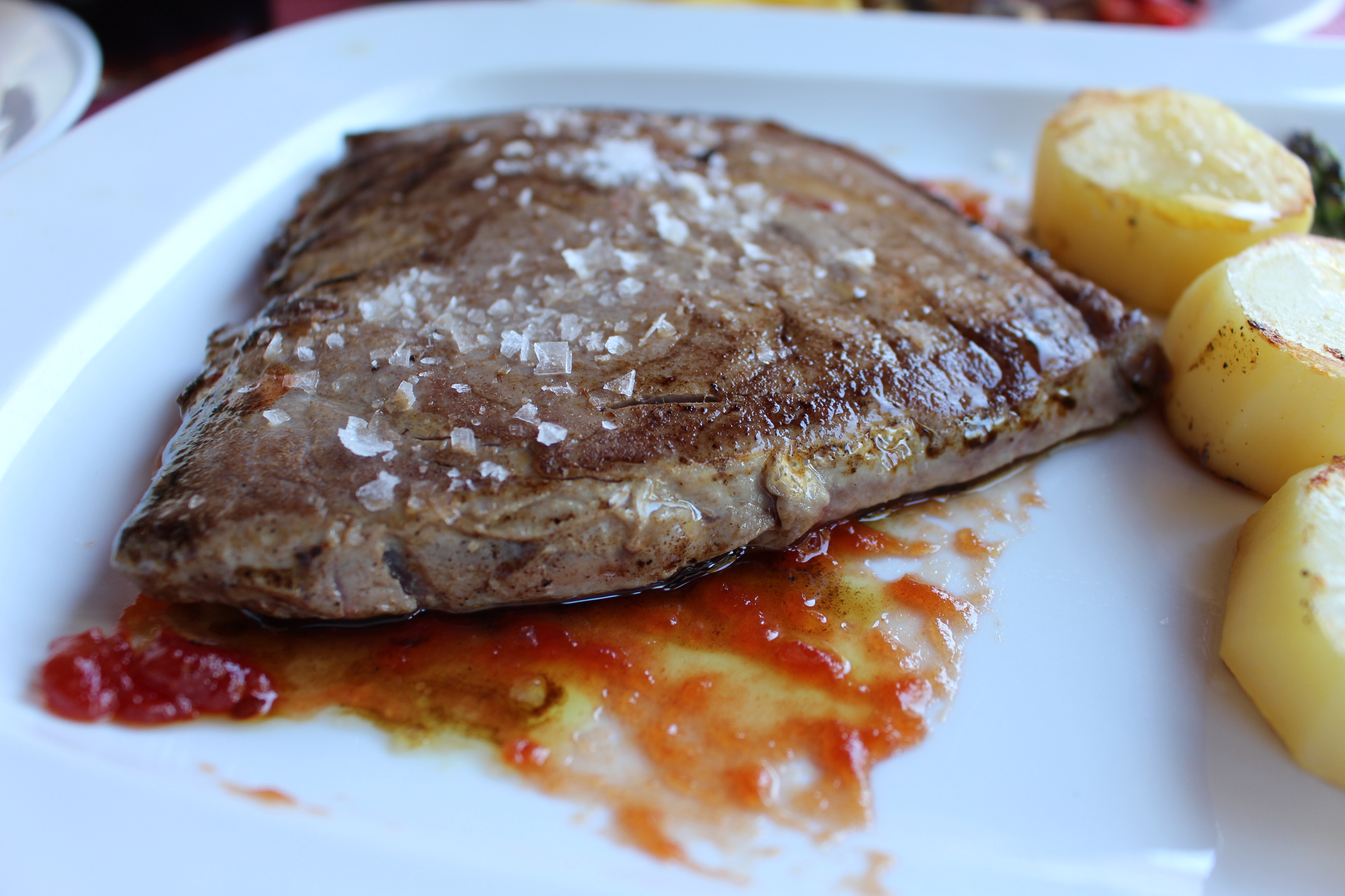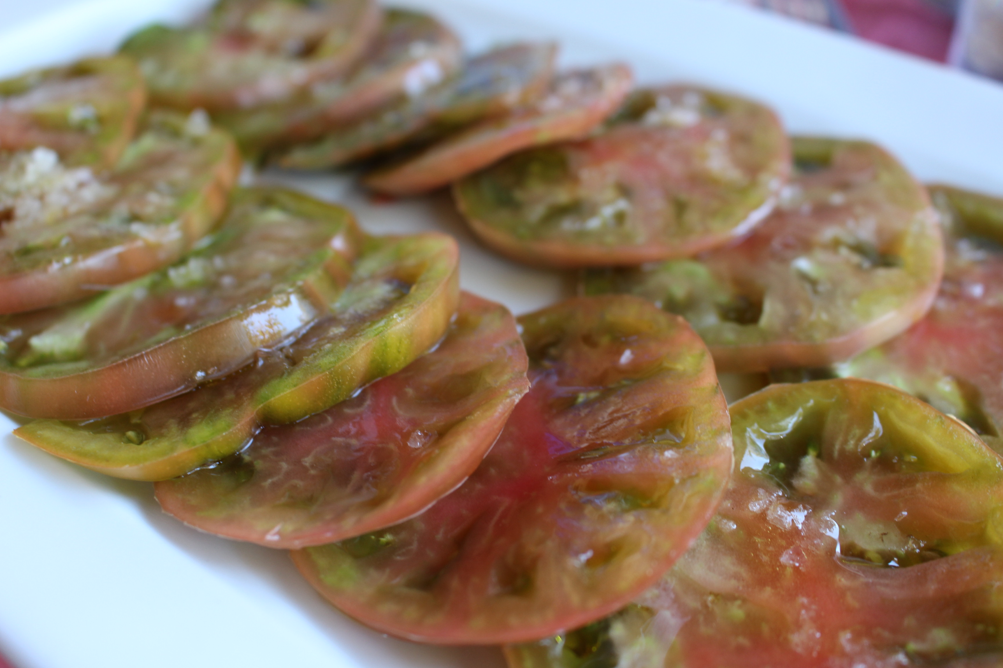Un tomate negro de Santiago y para finalizar unos lomos de bonito, vuelta y vuelta absolutamente deliciosos. Como no podía ser de otra forma todo lo armonizamos con los excelentes vinos que elaboran Raúl Pérez y Rodrigo Méndez en Rias Baixas y Ribeira Sacra.