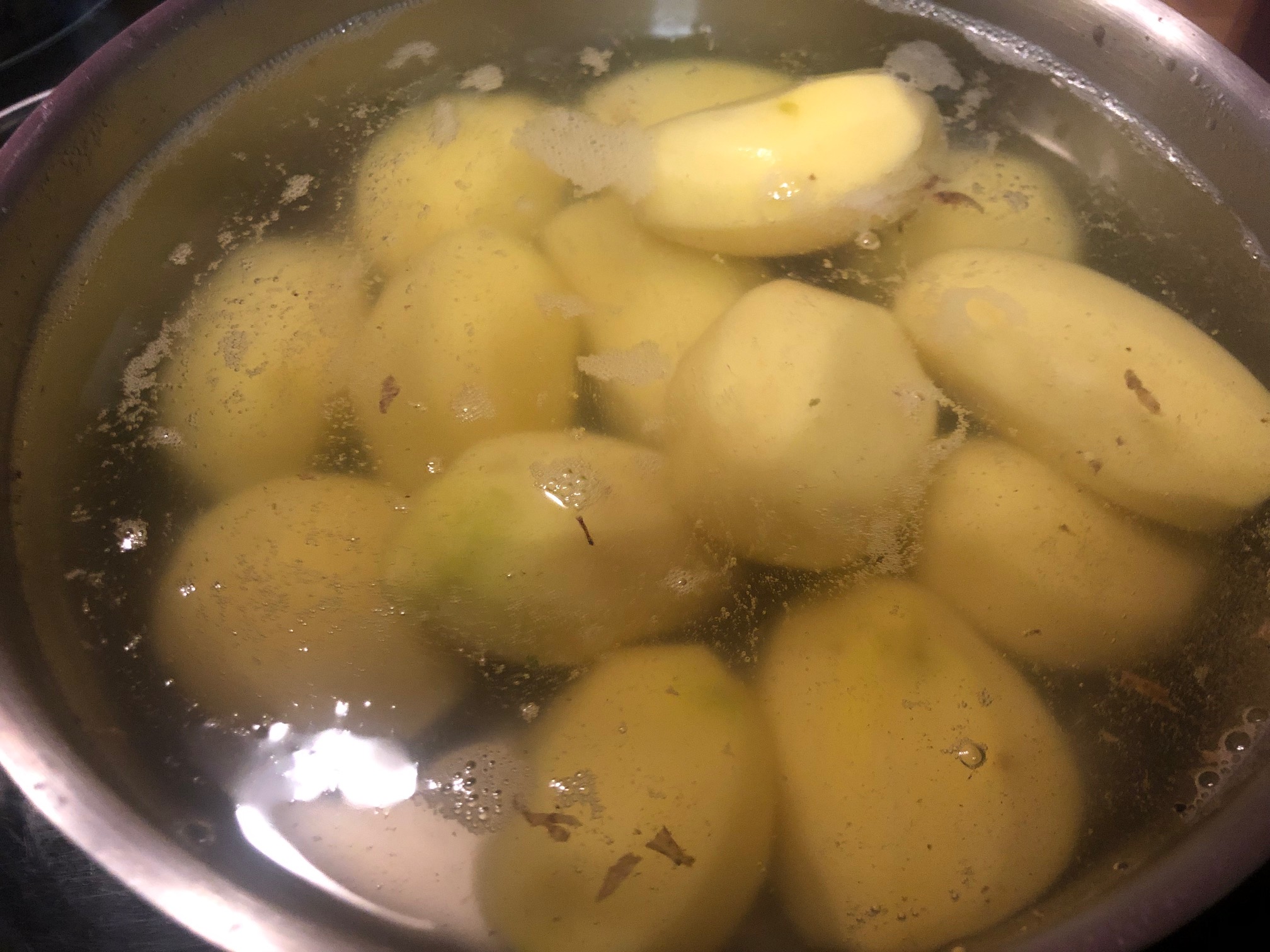 Pelamos unas patatas y las ponemos a cocer con un puñado de sal