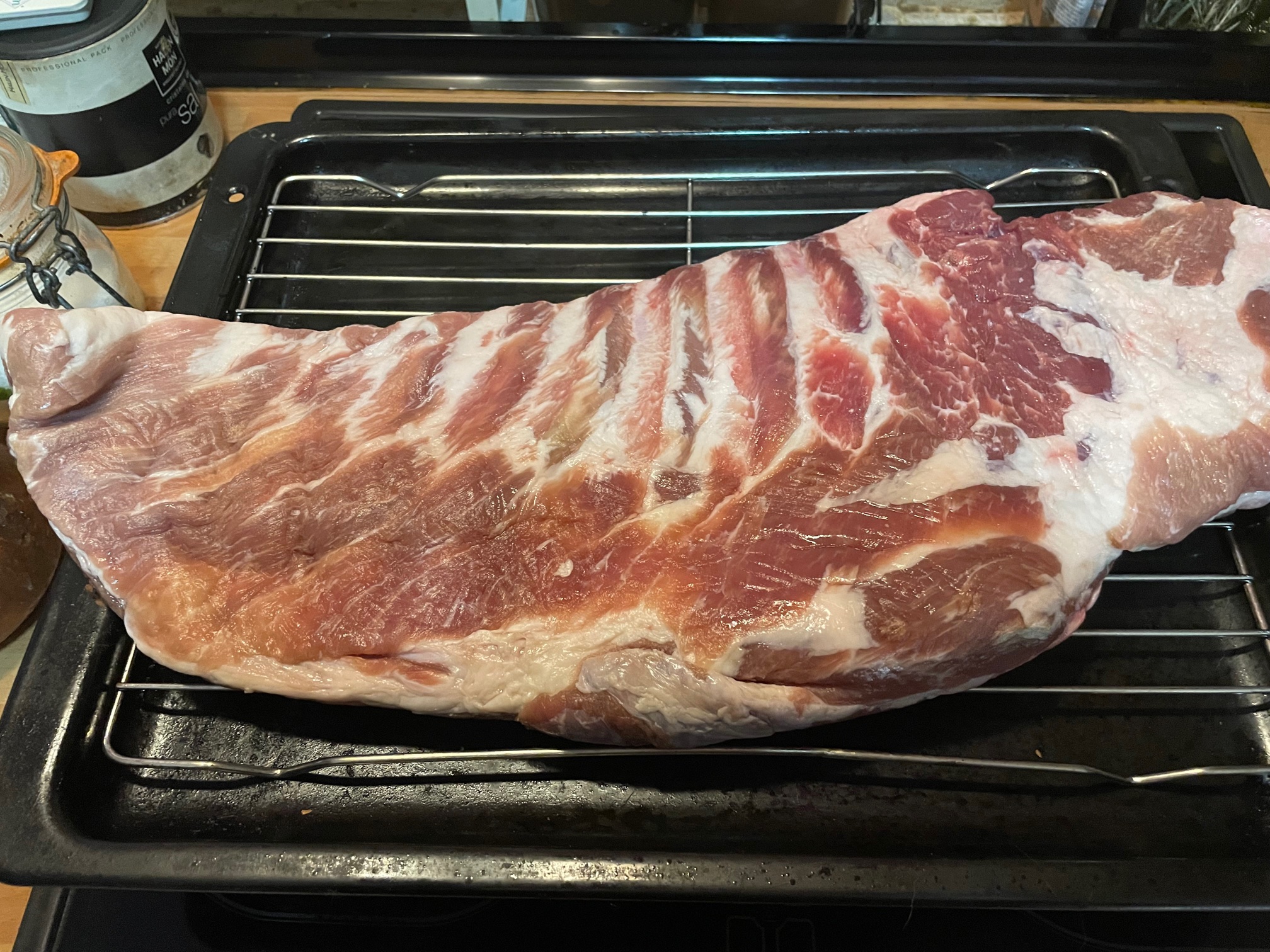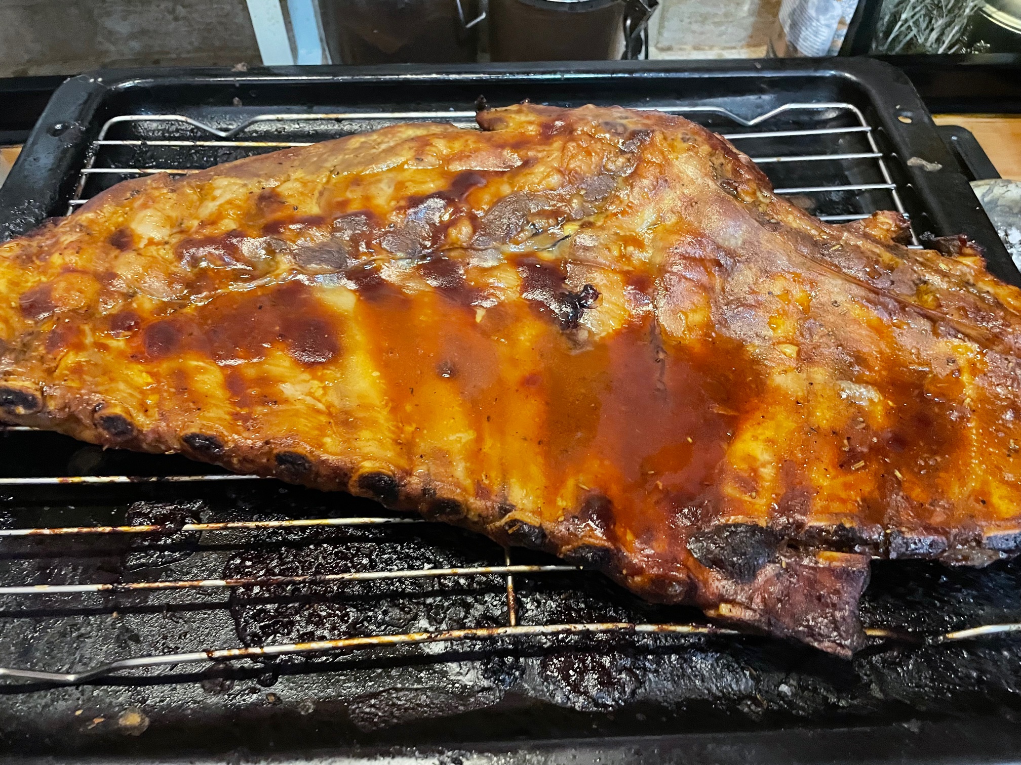 Hoy preparamos un costillar de cerdo alimentado con castañas gallegas en el horno a baja temperatura.