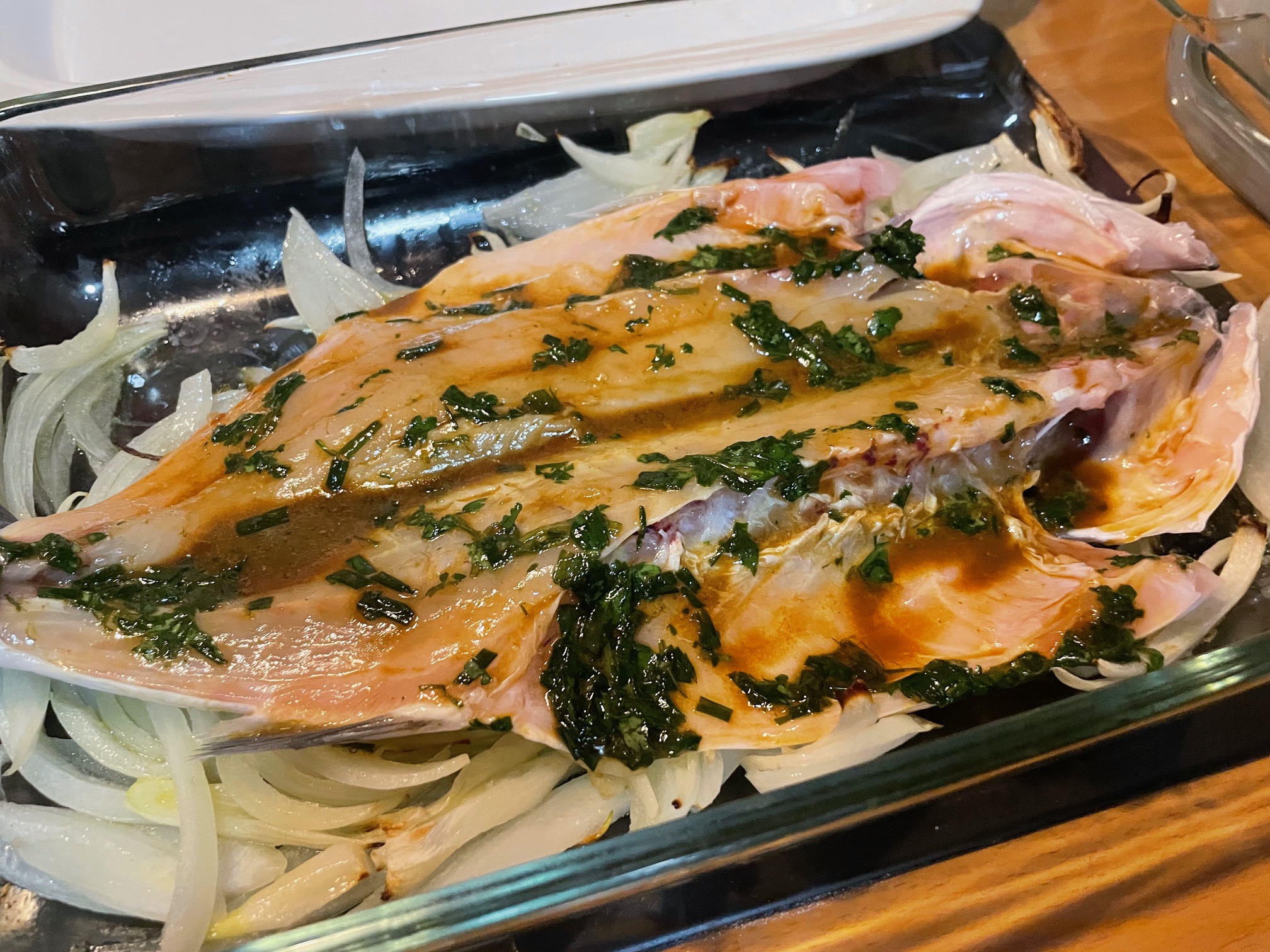 Introducimos el pescado en el horno 20 minutos a 180 grados (depende del tamaño)