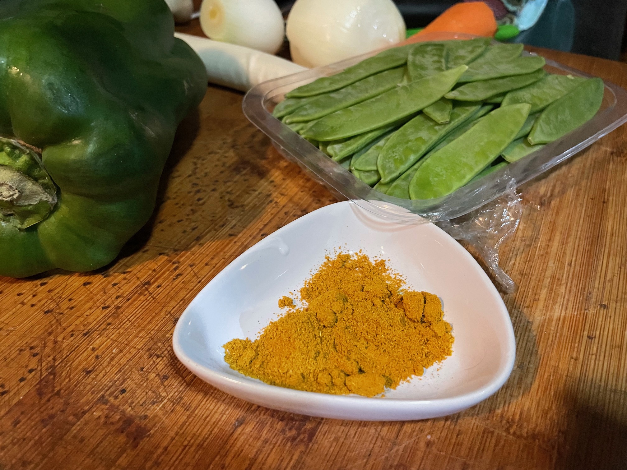 Añadimos una cucharada de harina, tomate frito, una copa de vino blanco y una cuchara pequeña de curry