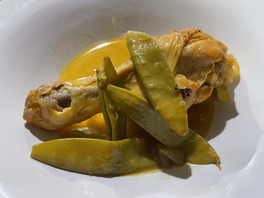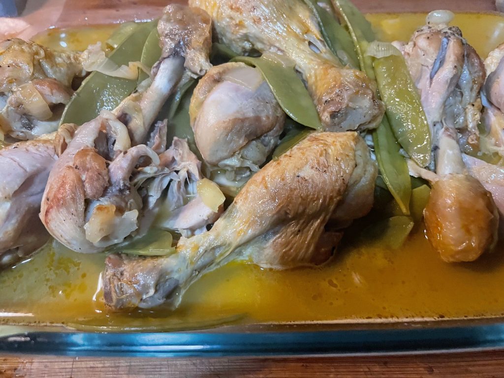 Abrimos con cuidado, retiramos los muslos y algunos tirabeques, pasamos el resto por la batidora