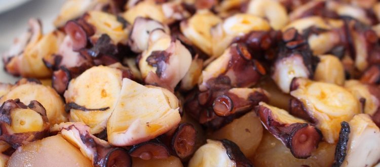 Percebes, pulpo y mar azul