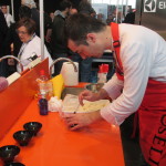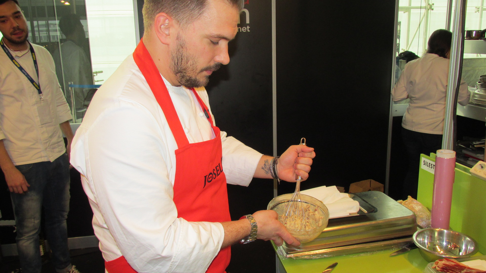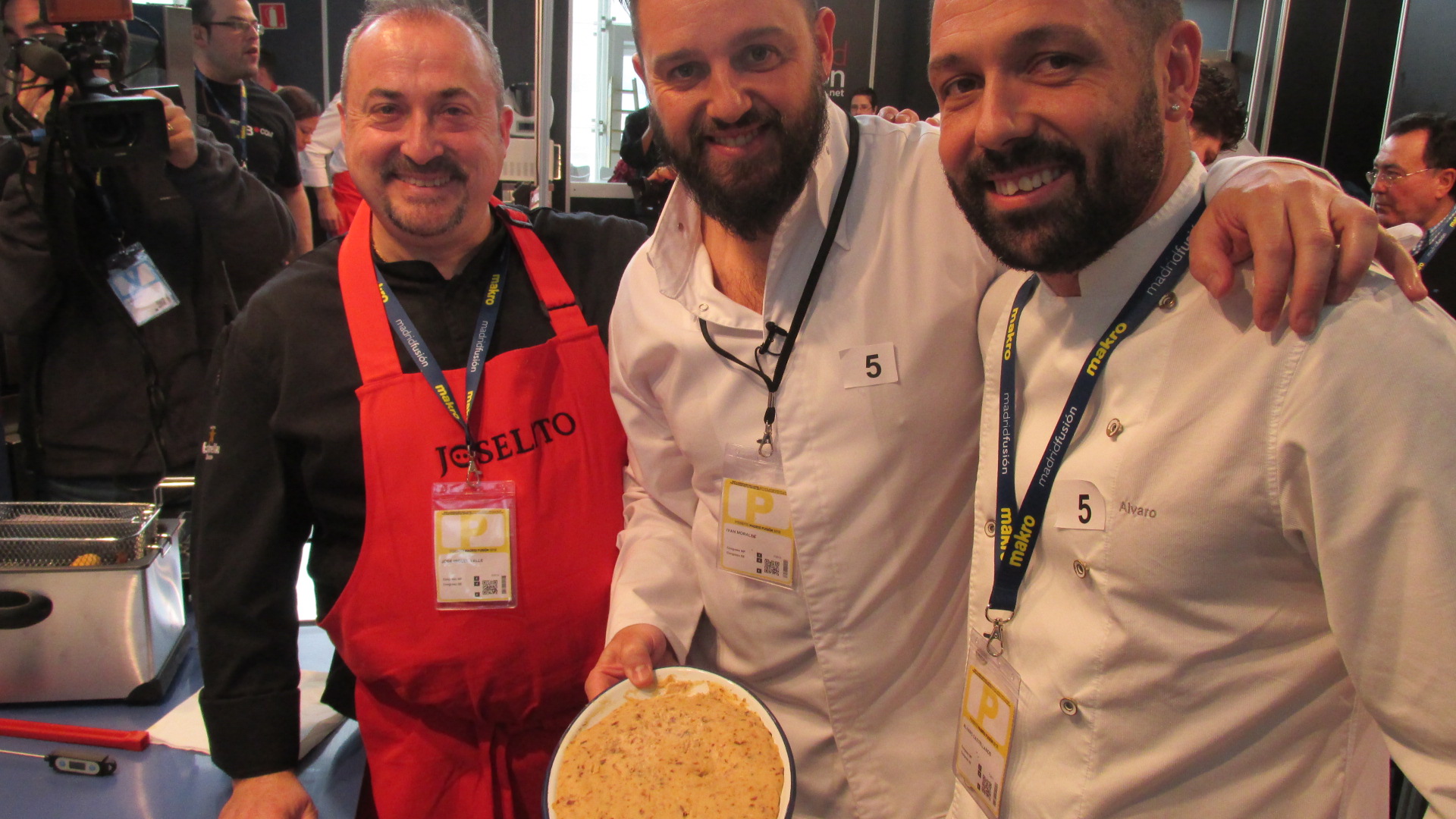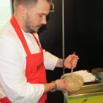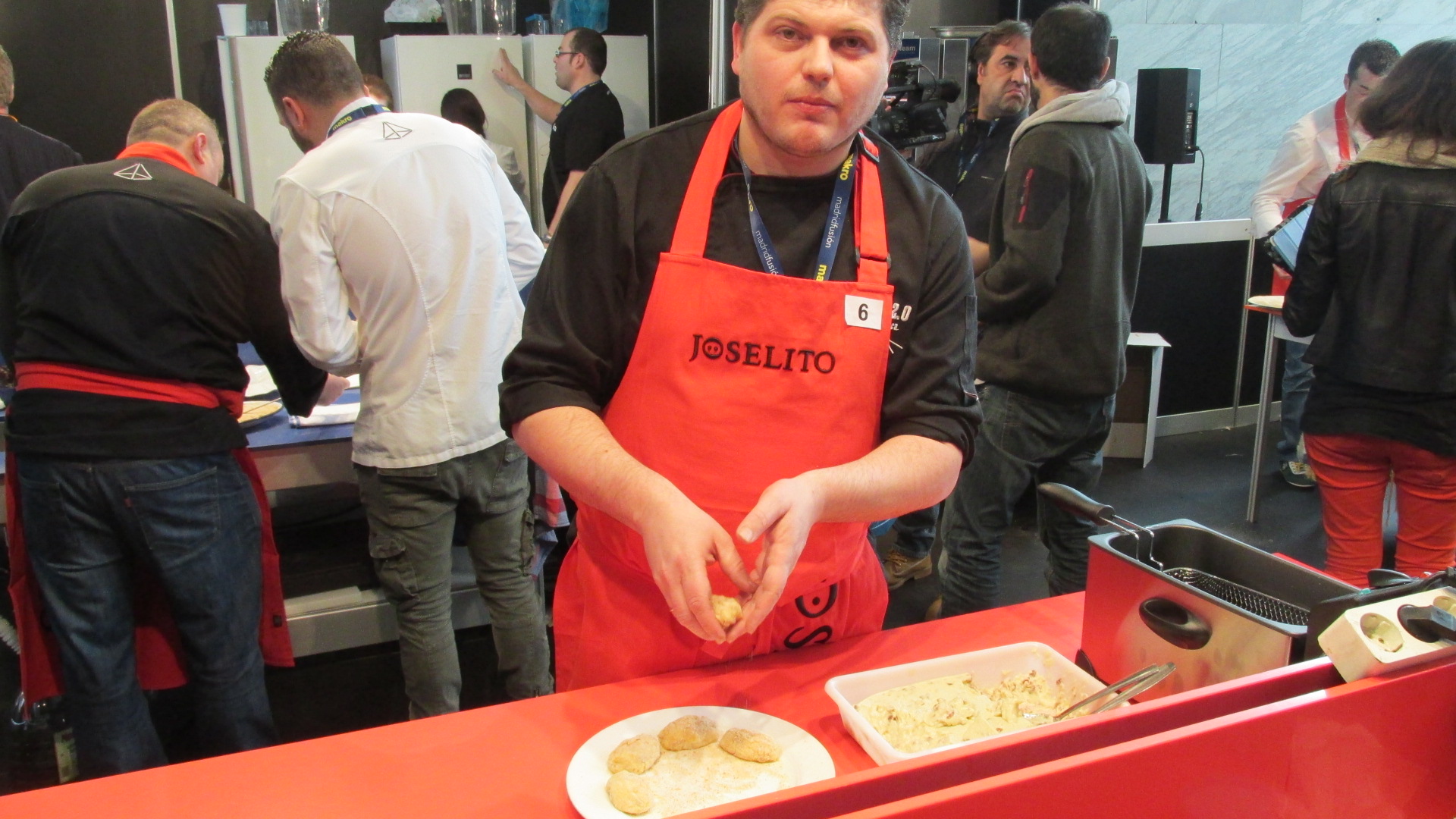 Estuve con ellos en el preámbulo del concurso, palpando sus nervios y viendo como elaboraban la bechamel, elemento clave en la elaboración de las croquetas. Todos ellos utilizaron como único ingrediente para la masa, 300 gramos del mejor jamón Joselito.
