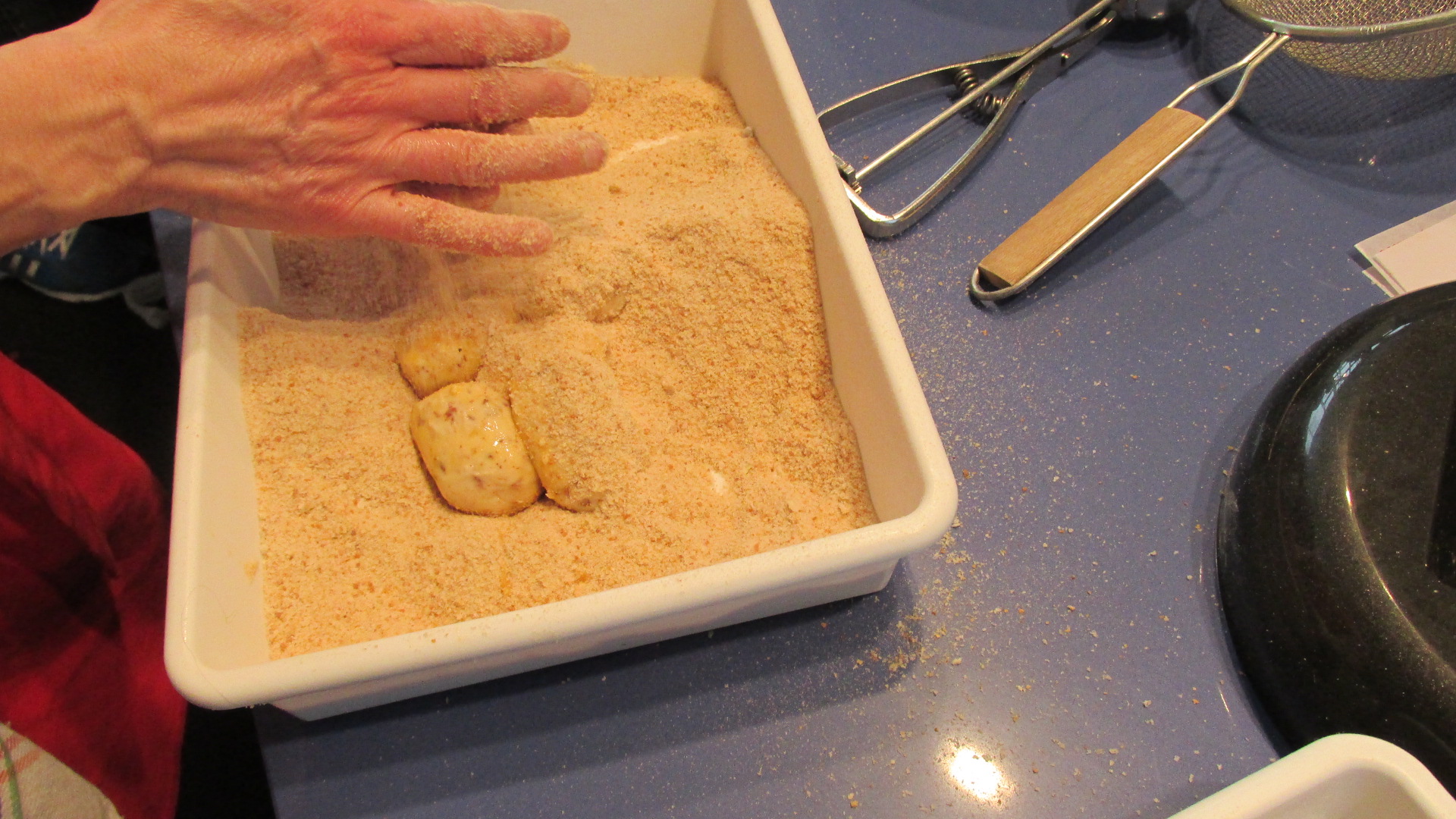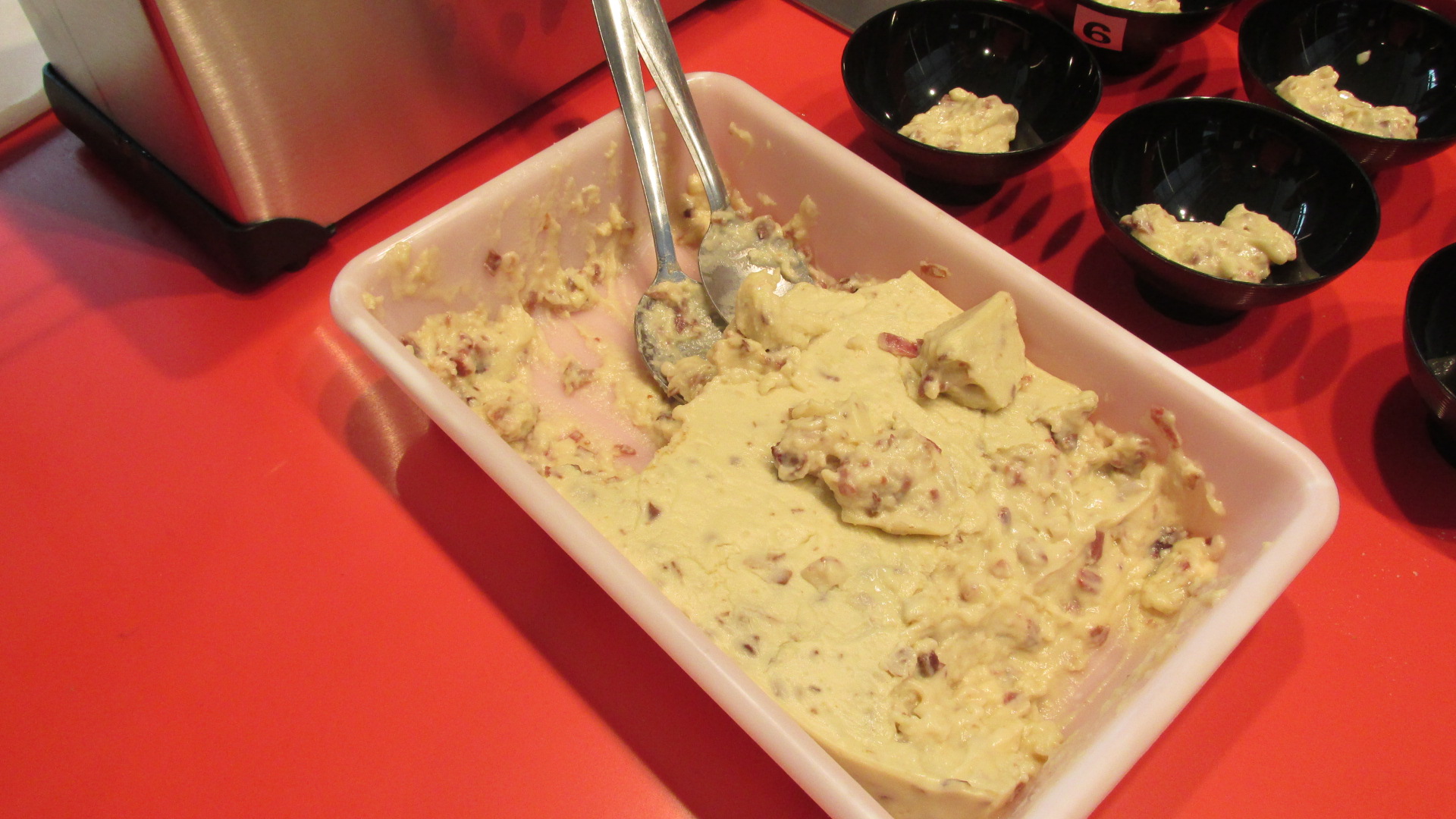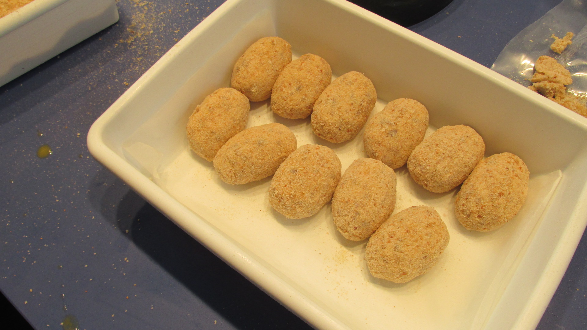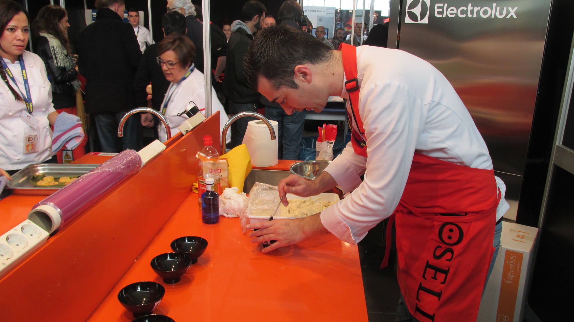 Estuve con ellos en el preámbulo del concurso, palpando sus nervios y viendo como elaboraban la bechamel, elemento clave en la elaboración de las croquetas. Todos ellos utilizaron como único ingrediente para la masa, 300 gramos del mejor jamón Joselito.