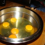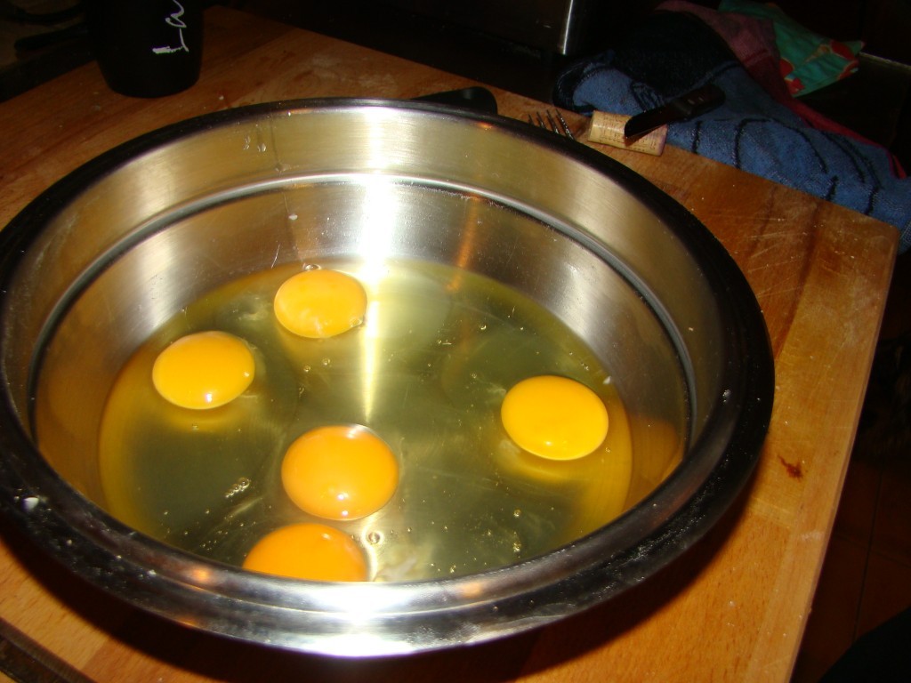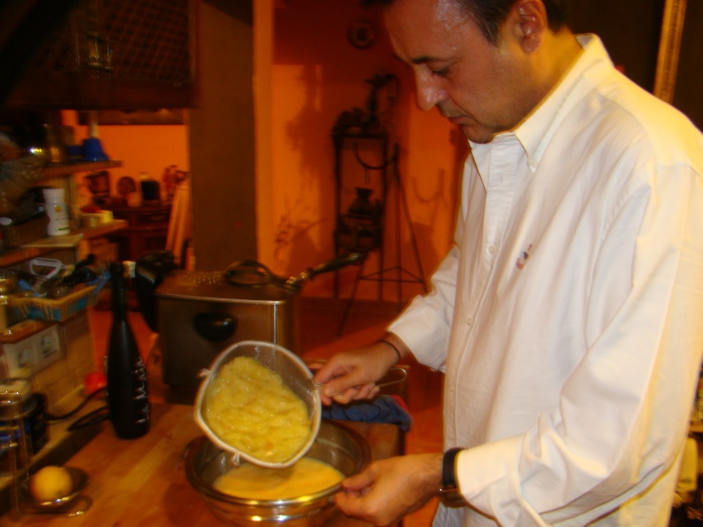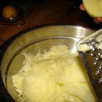 He utilizado patatas vallisoletanas regadas por el río Duero y unos estupendos huevos de corral. Con estos productos difícil fallar. Pelo las patatas y las paso por la mandolina, añado sal al gusto y la cebolla muy picada. Utilizo siempre aceite de oliva. Mientras las patatas se van haciendo, bato los huevos de corral.