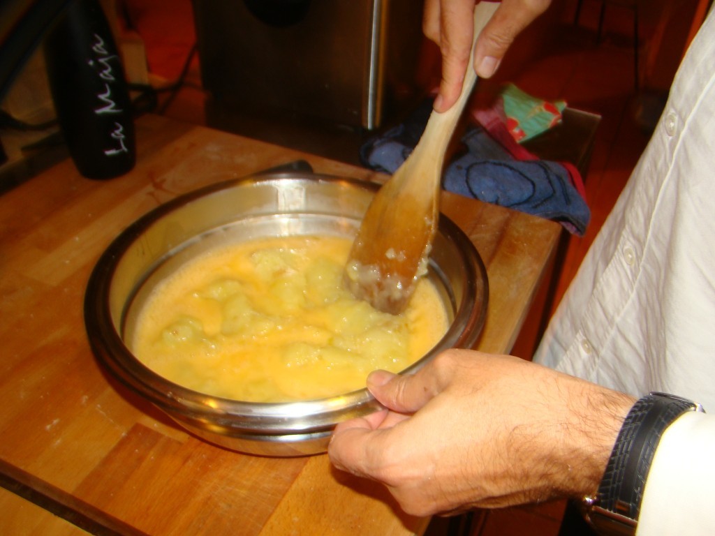 Me gustan que las patatas estén bien hechas y el huevo jugoso, no demasiado cuajada. Le doy un par de vueltas y al plato.