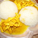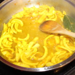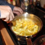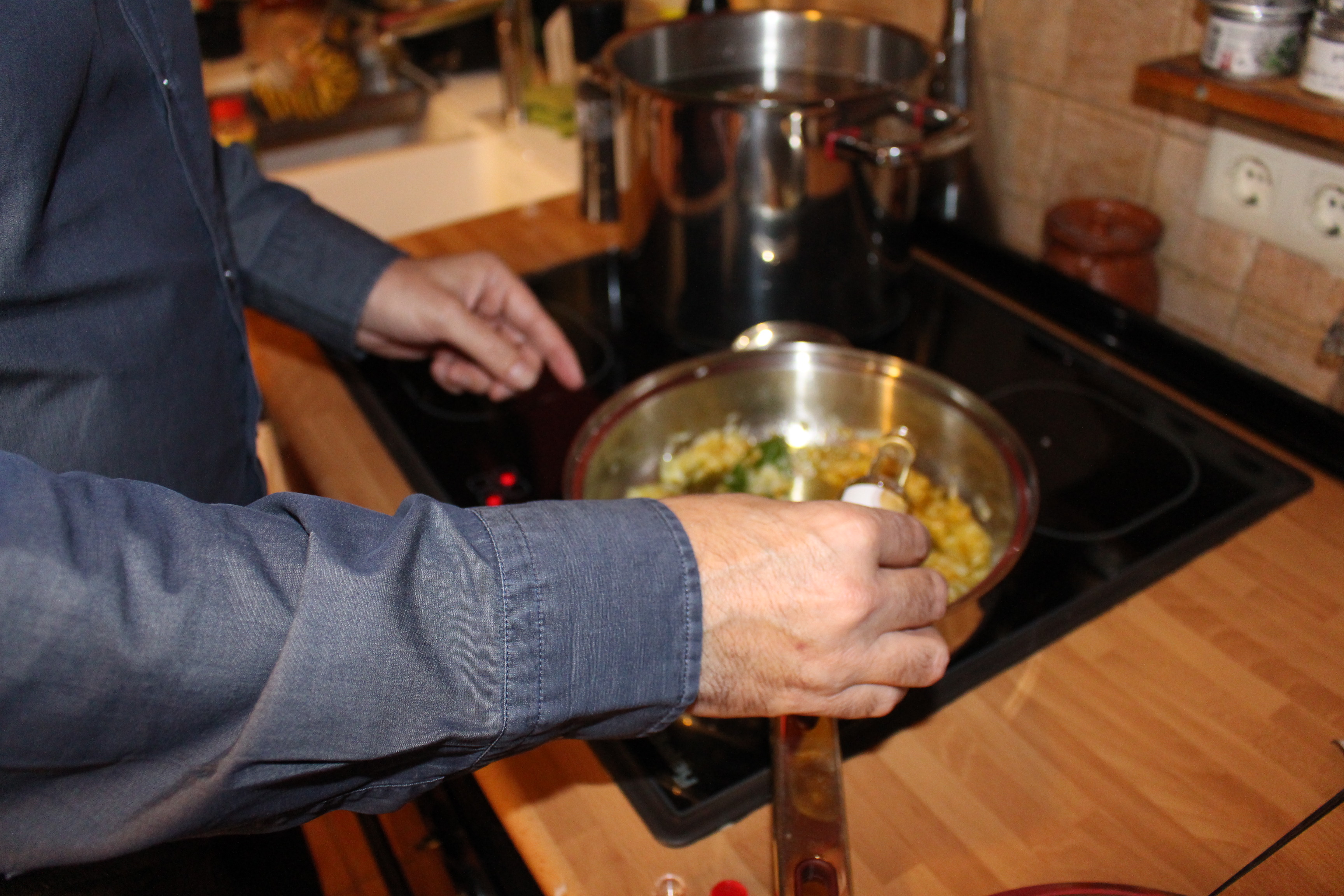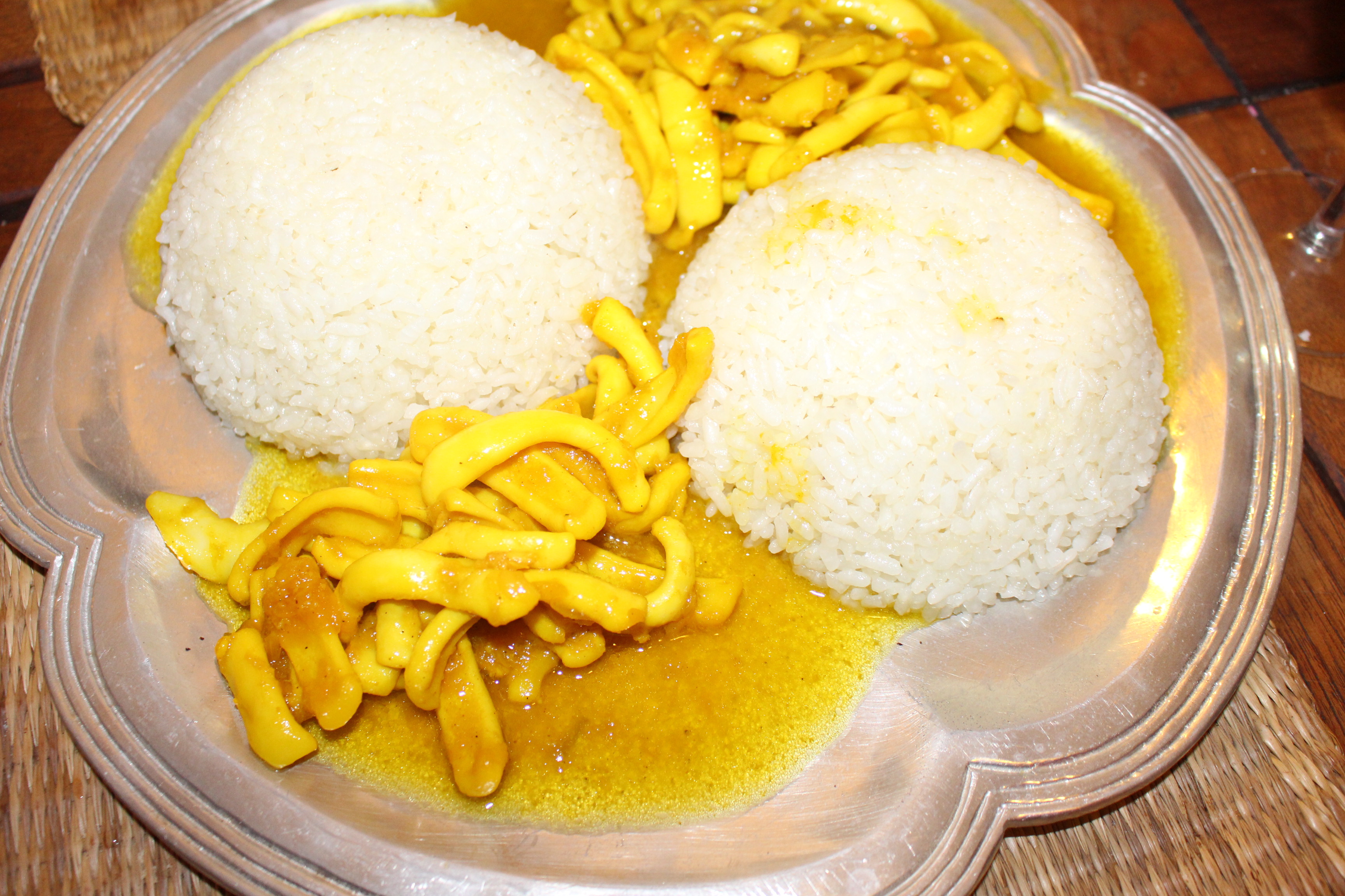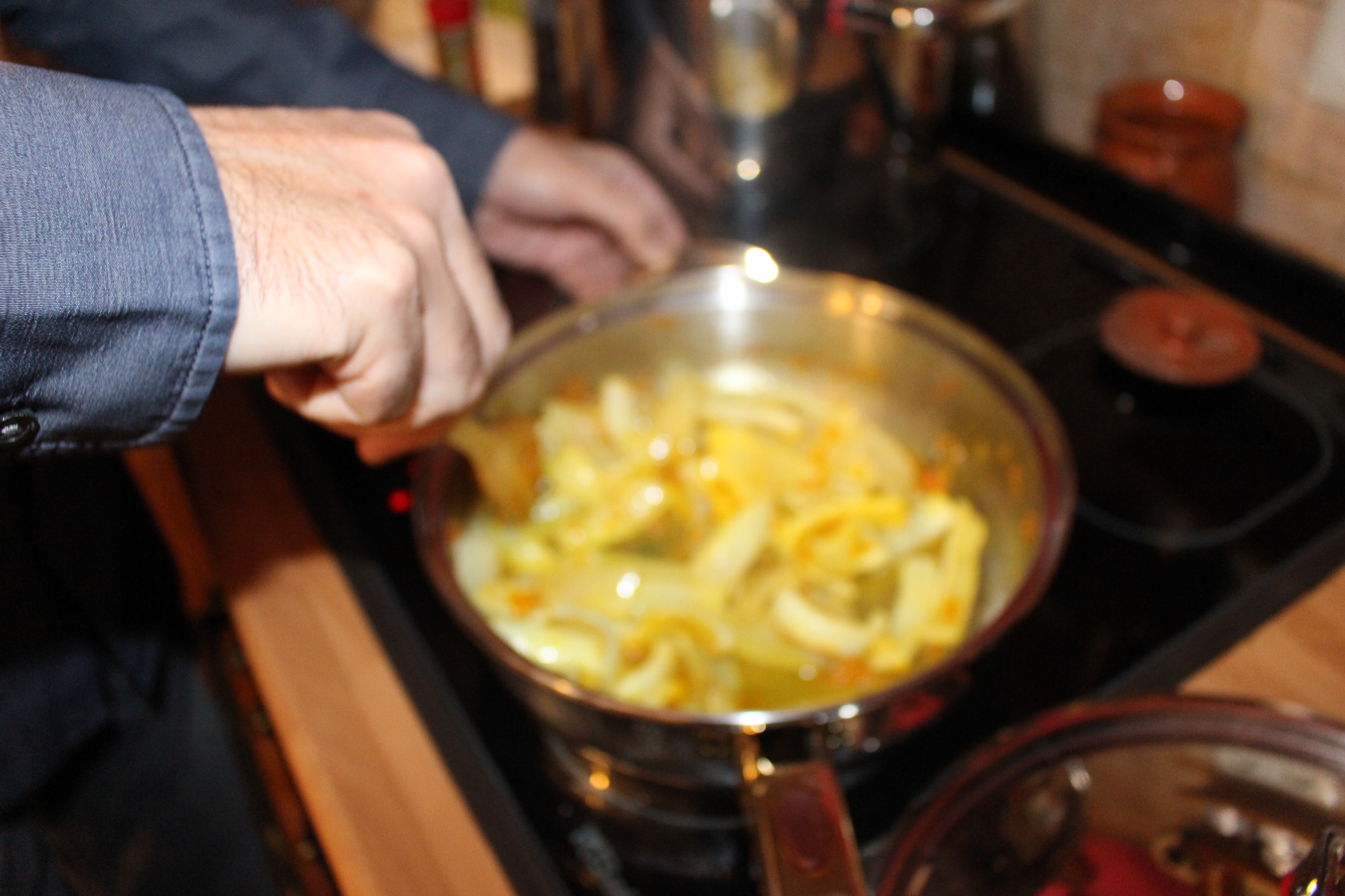 Pocho la cebolleta y el ajo con un poco de aceite de oliva, echo azafrán, el laurel y un chorro de Jerez. Añado los calamares de anilla ( yo los corto en trozos pequeños), cuando el Jerez se ha evaporado, pruebo de sal y listos. Con la Thermomix preparo el arroz blanco siguiendo las indicaciones, lo pongo en unos moldes y a disfrutarlos.