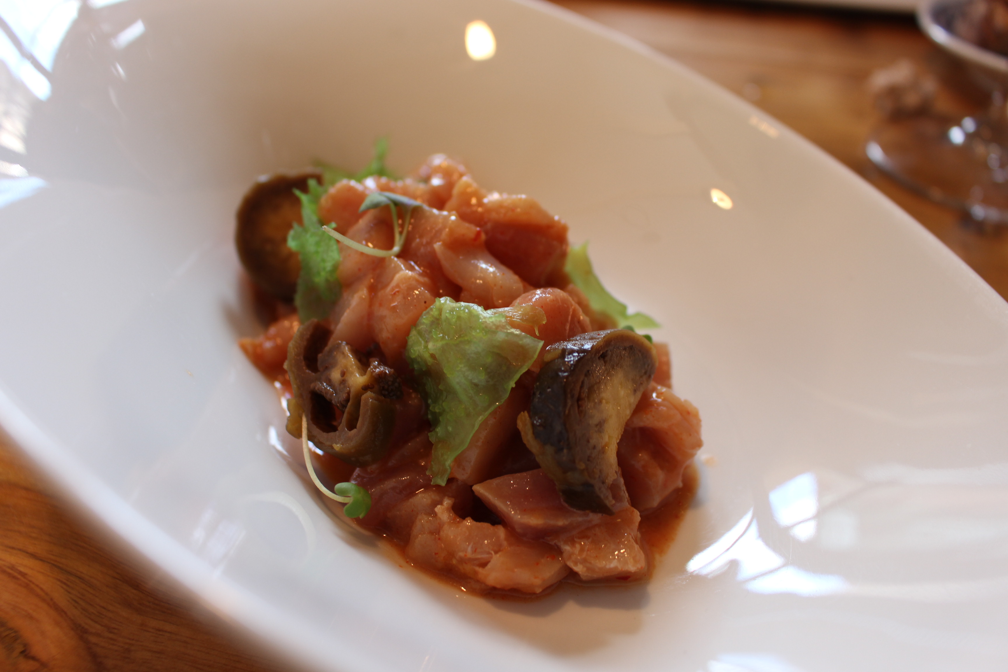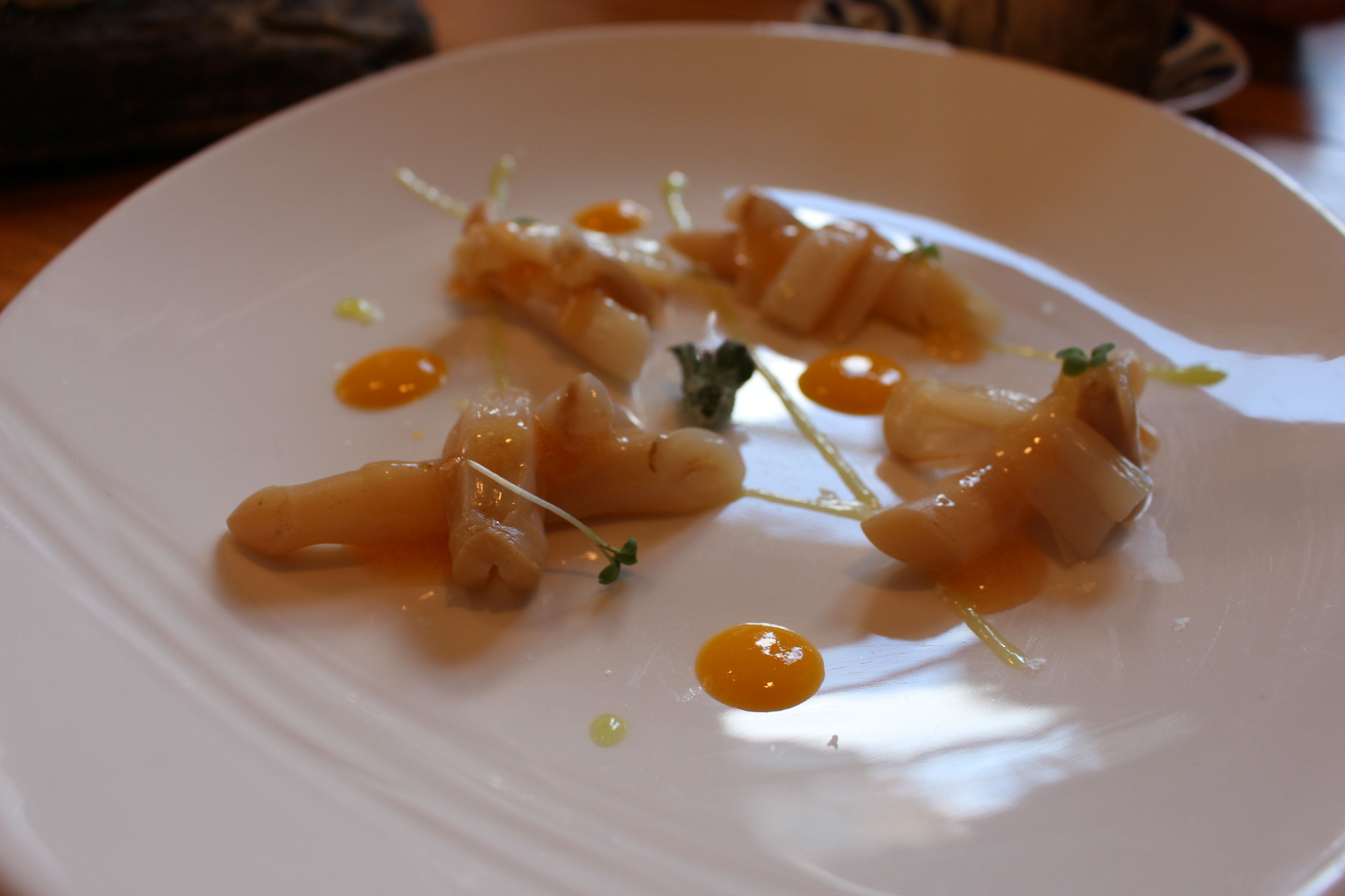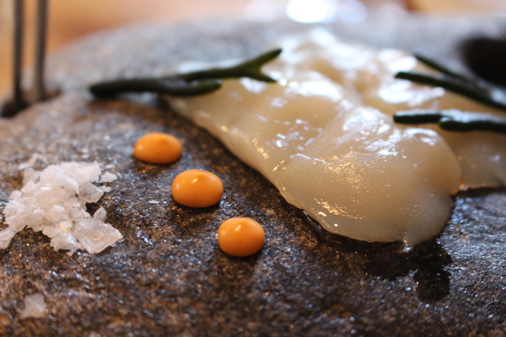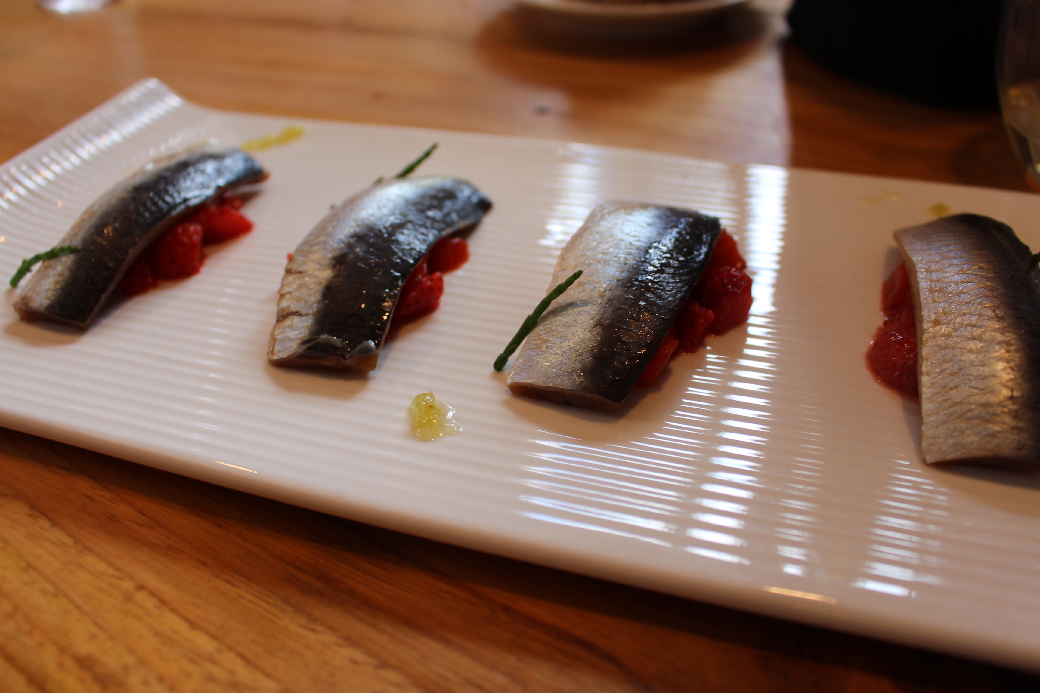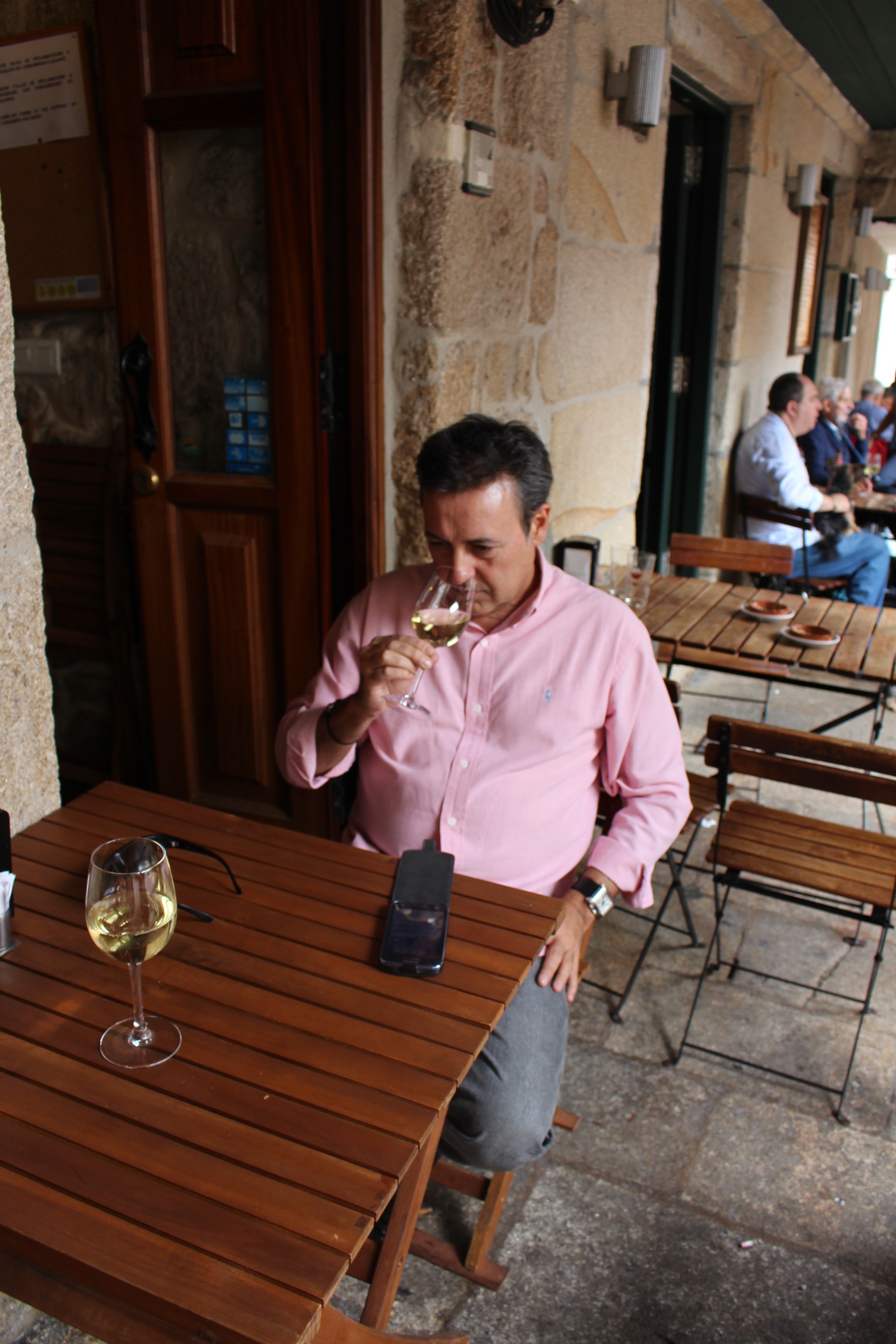 La comida se convirtió en el colofón perfecto a mi visita pontevedresa. En ella coincidí con mis grandes amigos Raúl Pérez y Rodrigo Méndez donde entre unas navajas espectaculares, vieiras ahumadas al sarmiento de albariño, bonito con berenjenas en salsa kimchi y una lubina y un sargo traídos directamente de la lonja, volvimos a conversar sobre la belleza de esta ciudad y de los grandísimos vinos que se están haciendo en Galicia.