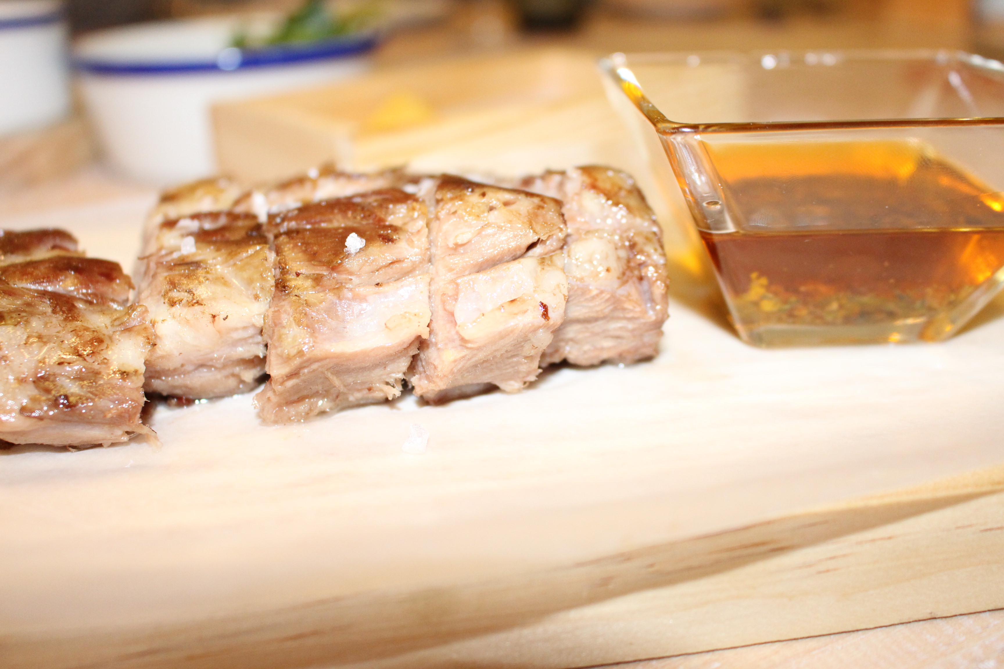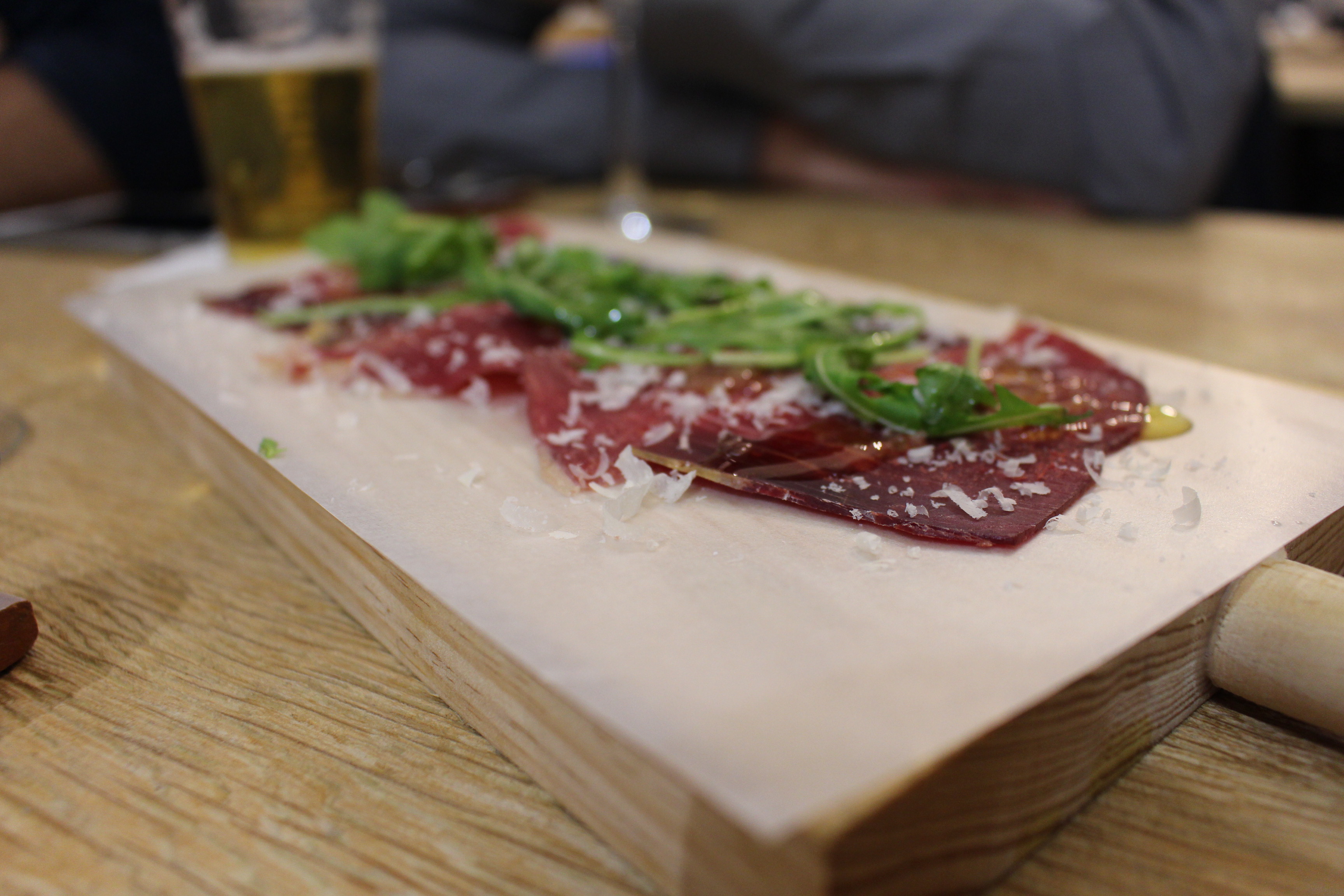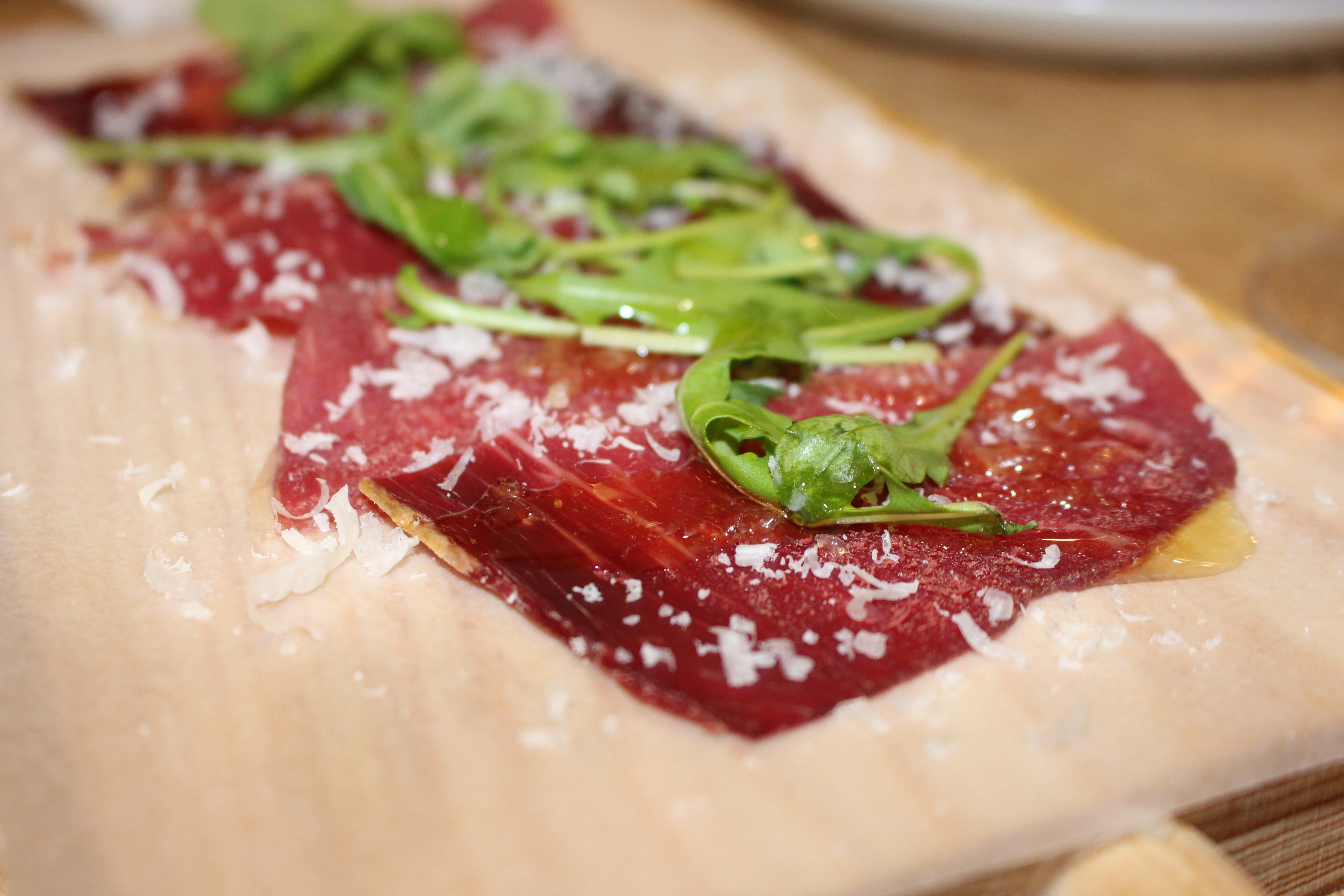 Atlántico ofrece producto de temporada traído directamente de Galicia. Disfrute de una cena realmente agradable. El local tienen varias zonas, una de barra donde en breve los fines de semana un pulperio hará las delicias de los asistentes a la hora del vermut. Un barra de picoteo donde Solla nos ofreció una cecina con rúcula y aceite de arbequina y unos excelentes berberechos en caldo de cítricos.