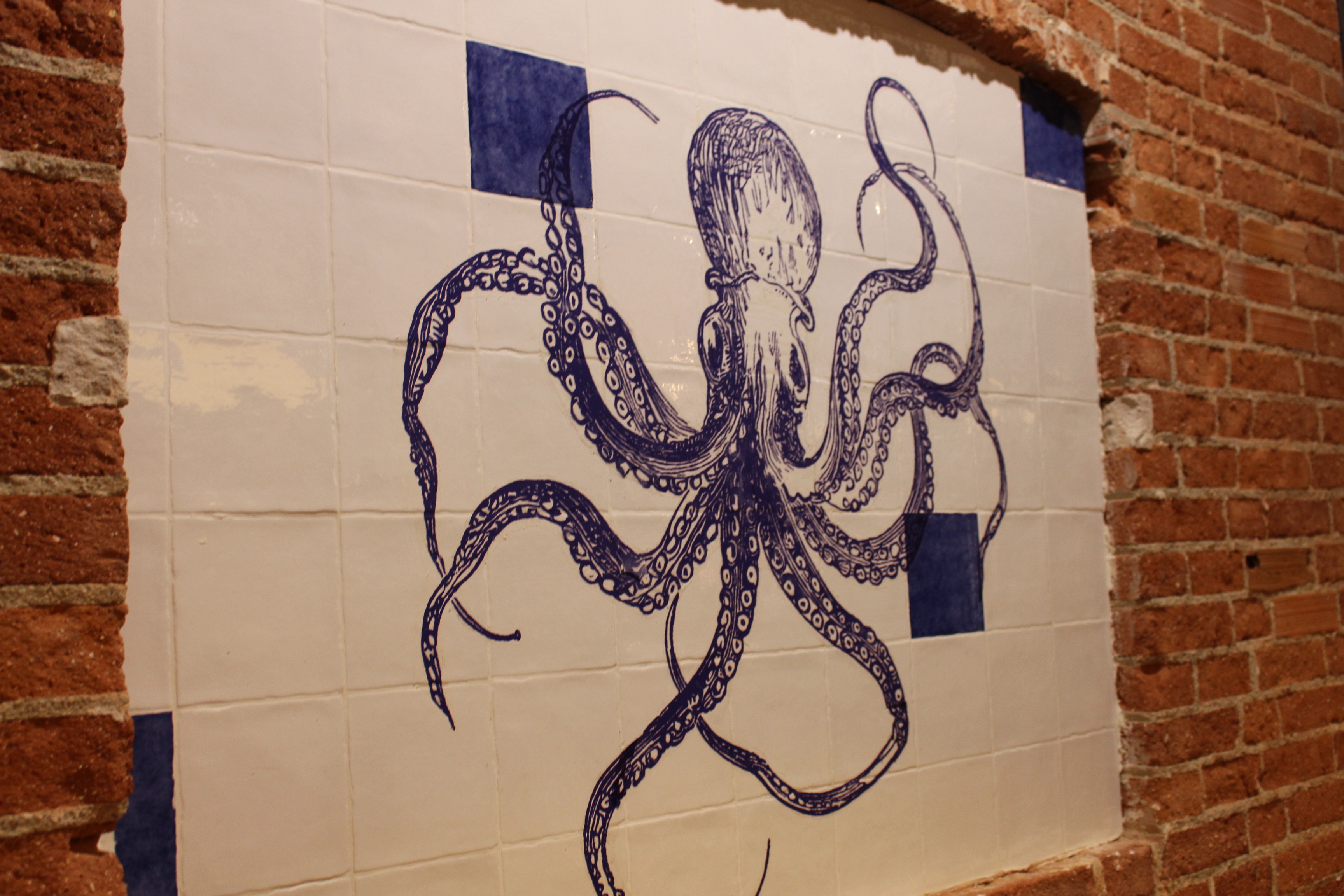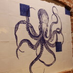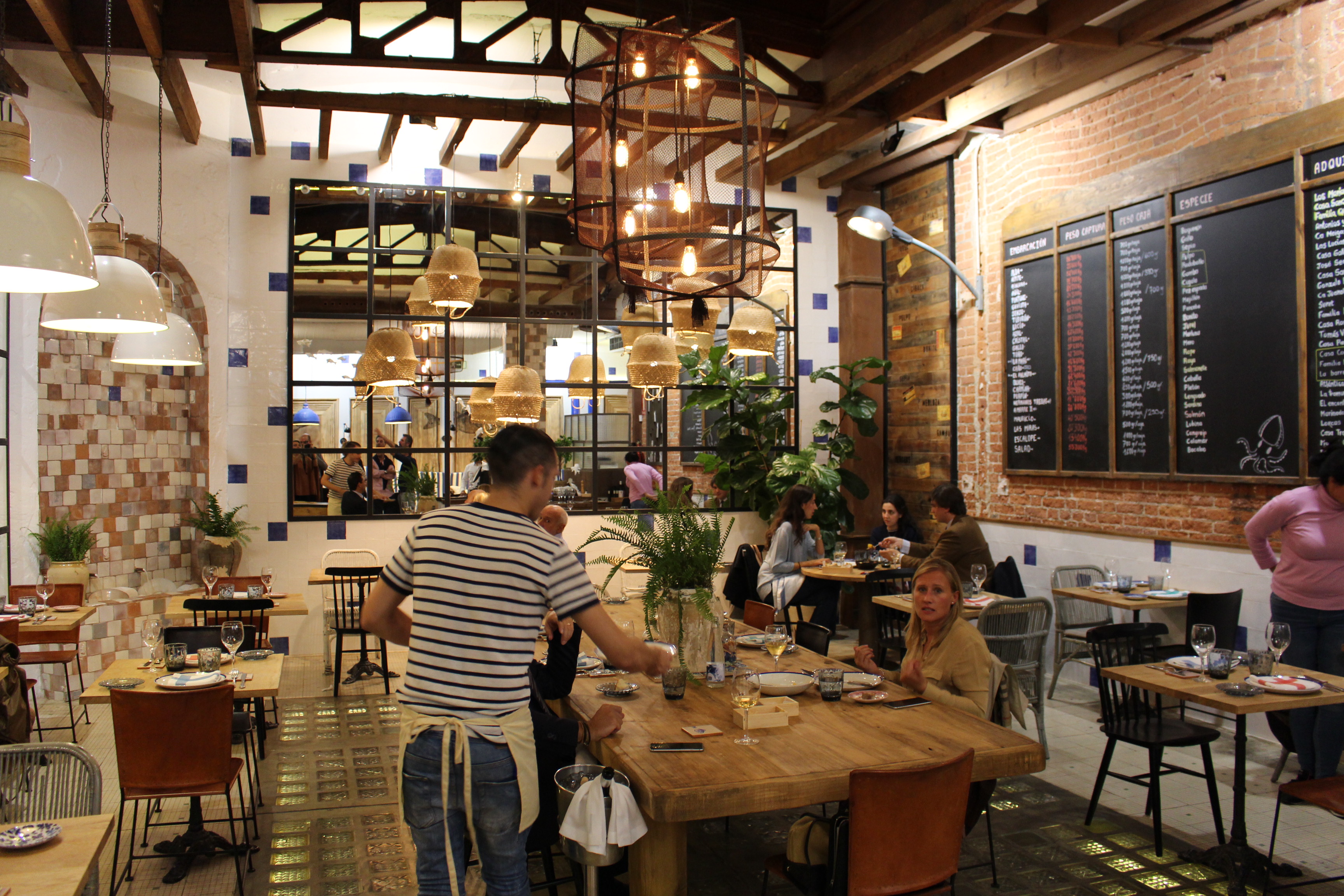 Me enseño el local con una decoración cuidada y sencilla que te transporta al Atlántico con detalles marineros, con una pizarra como las que hay en las lonjas de bajura, conservas, platos y azulejos con motivos marinos.