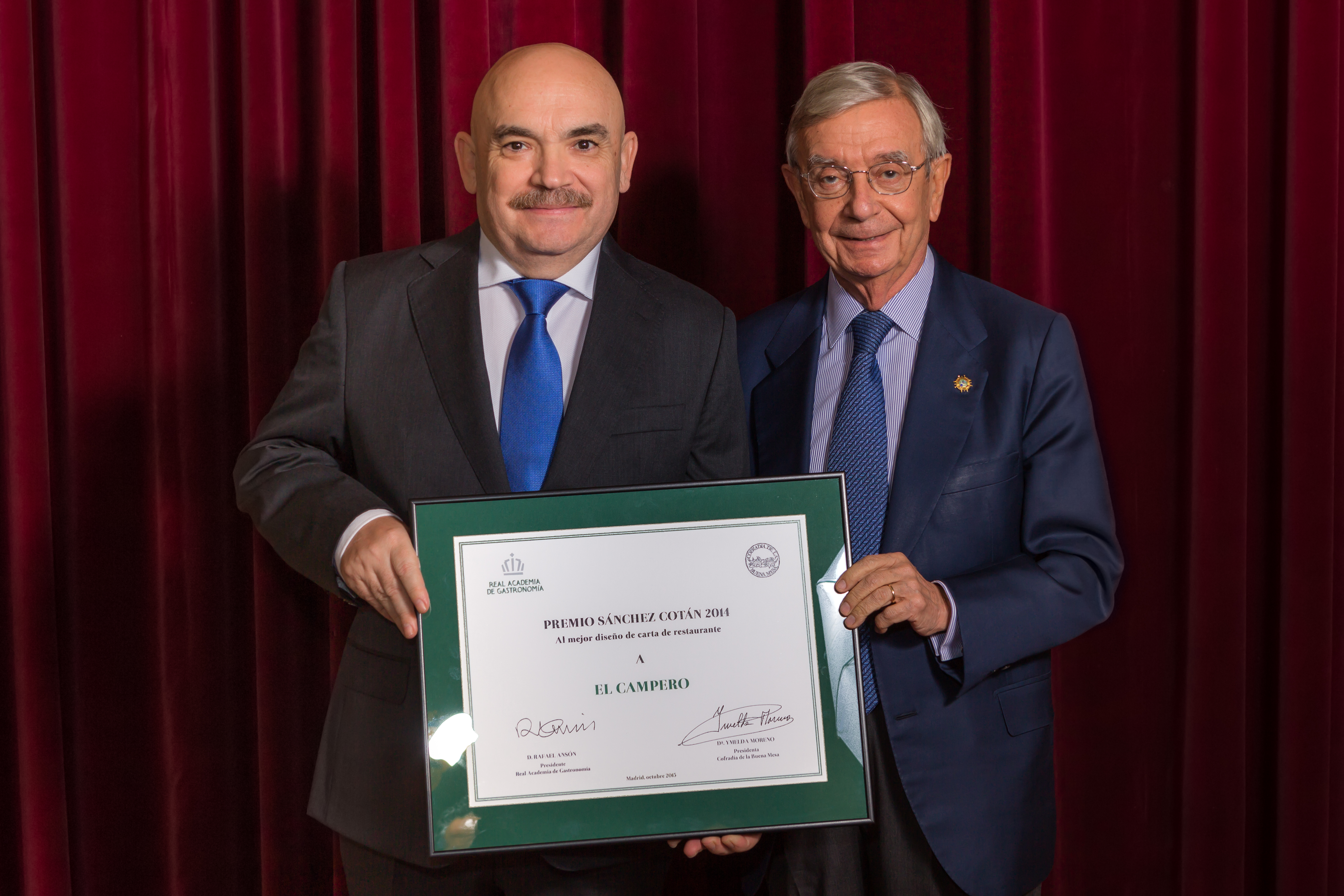 José Melero, propietario del restaurante El Campero (en Barbate) recogió el Premio Sanchez Cotán al mejor diseño de carta de restaurante y por primera vez se prestigia el diseño y el esfuerzo que hay detrás de una carta de vinos, en este caso la de El Portal del Echaurren (en Ezcaray) y su artífice, José Félix Paniego.