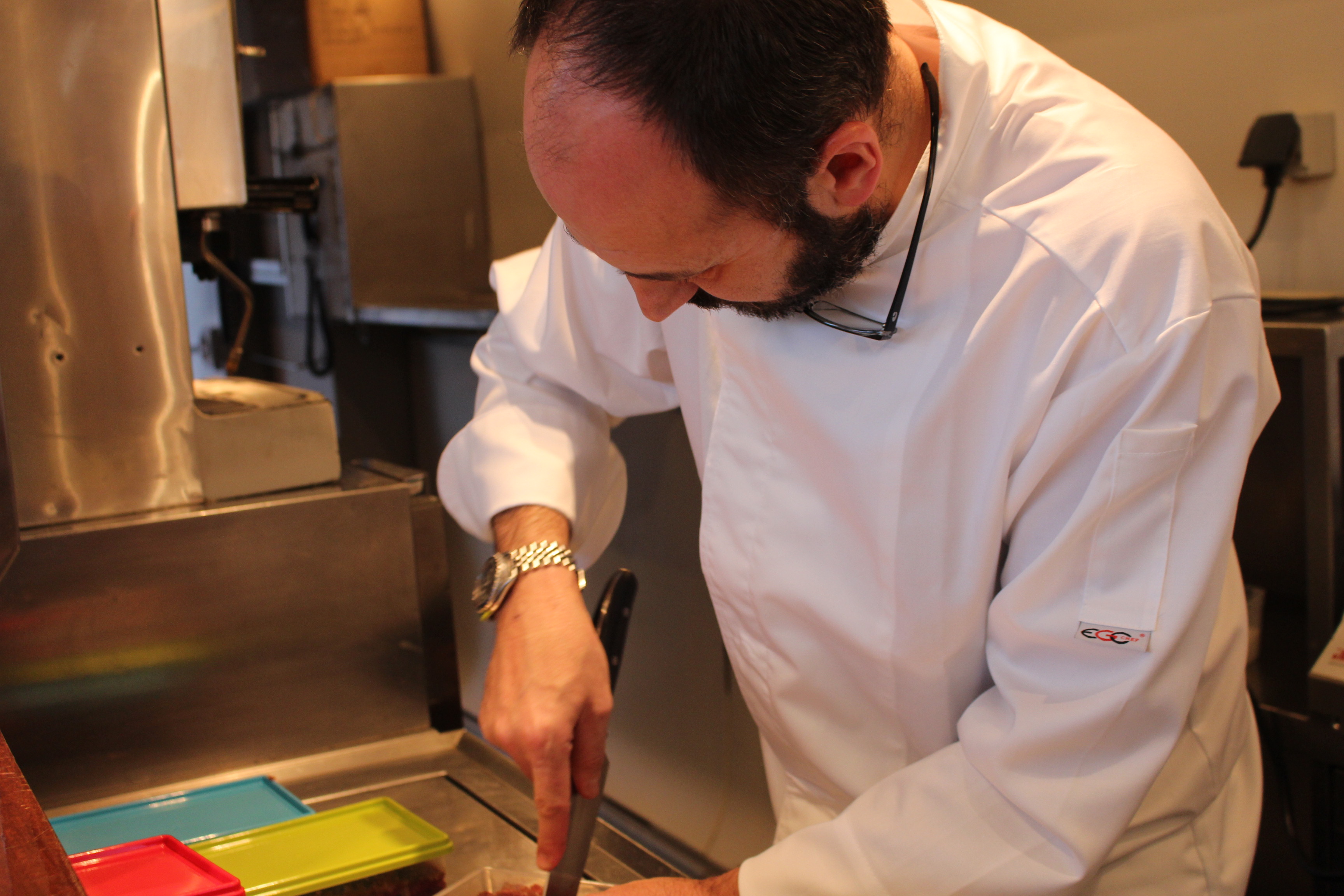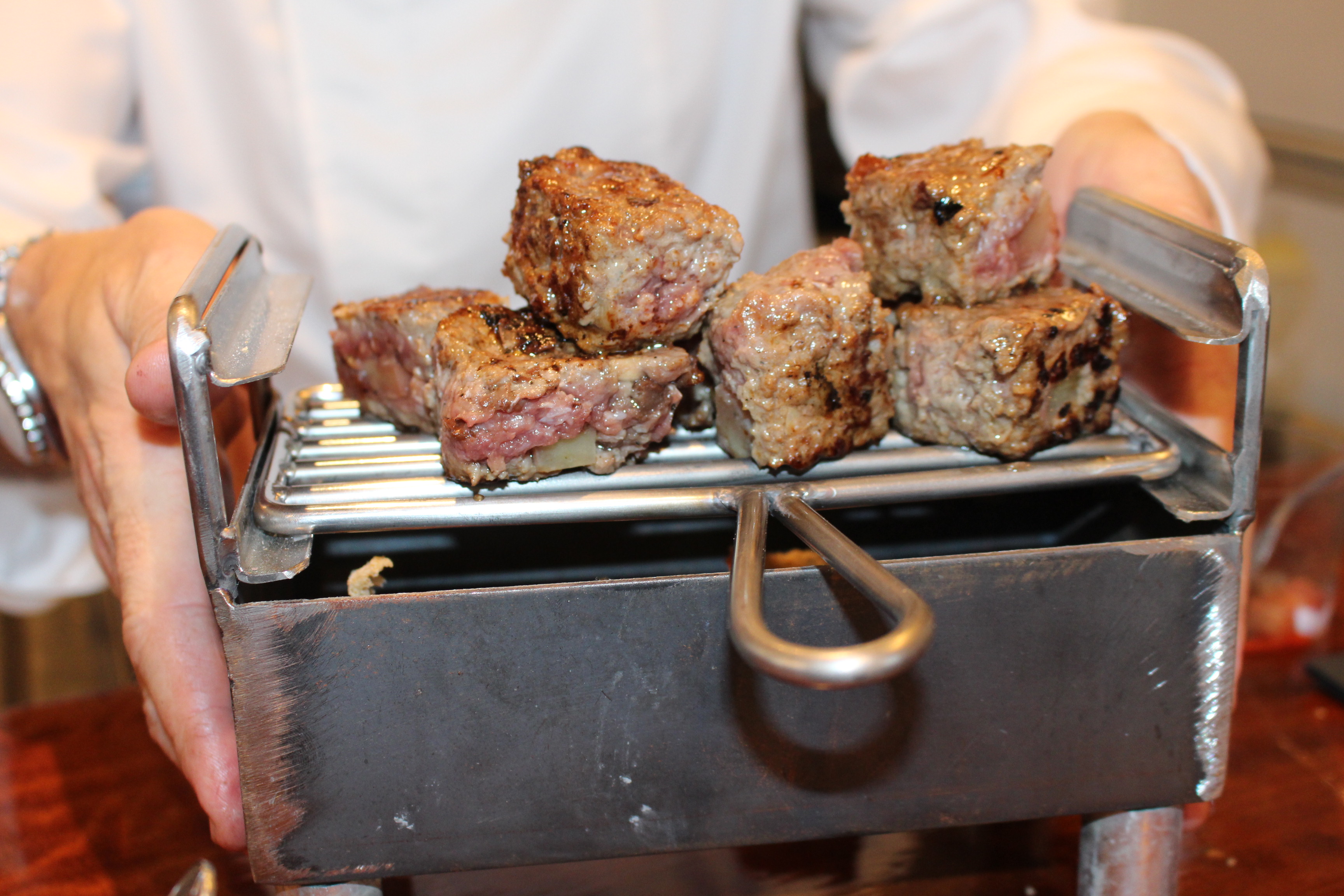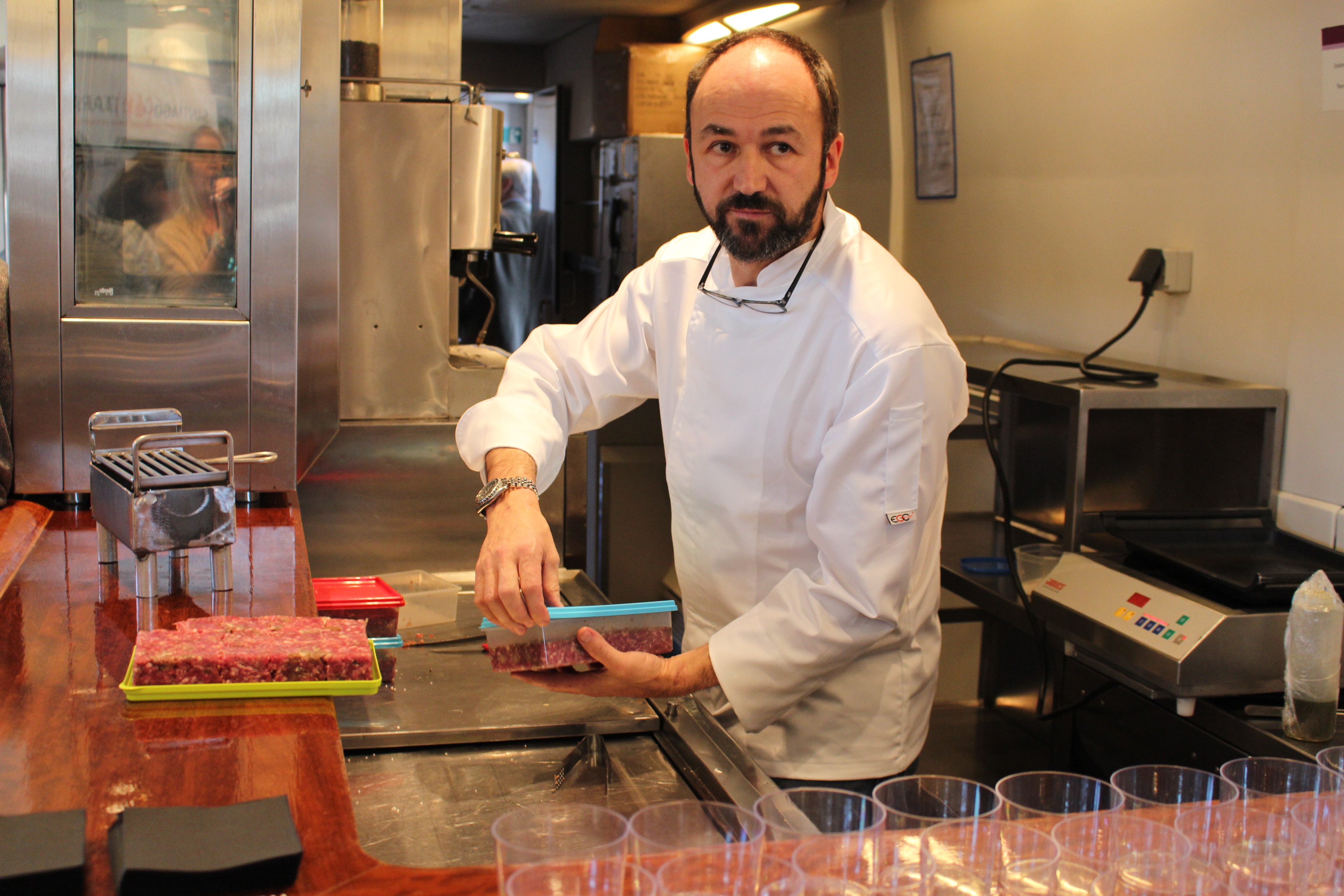 Durante la presentación del evento mi querido cocinero y representante de lo mejor de la gastronomía compostelana, Siro González elaboró unos pinchos de carne de cabra preparados en el vagón de la cafetería del tren Alvia, armonizados con vinos gallegos.