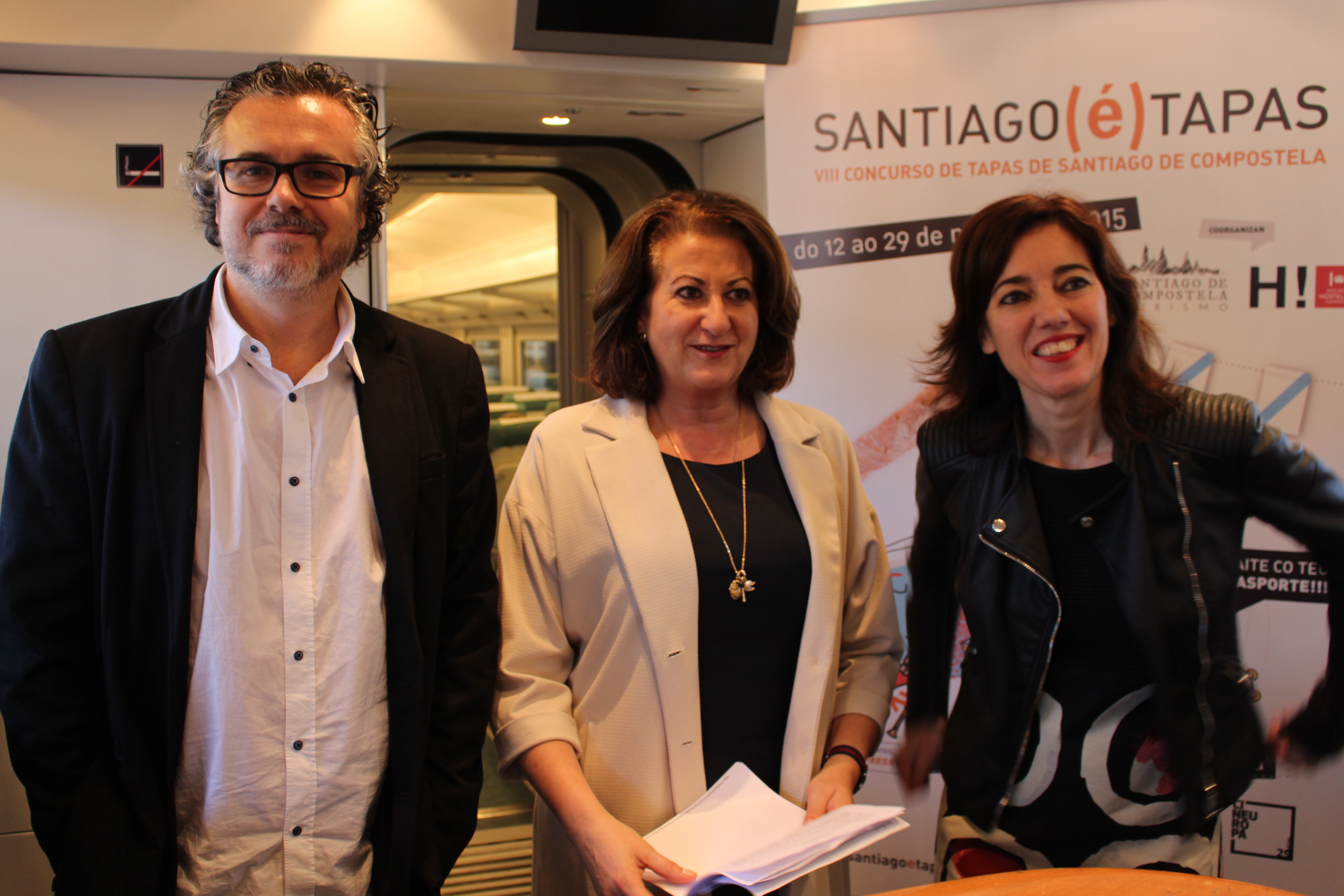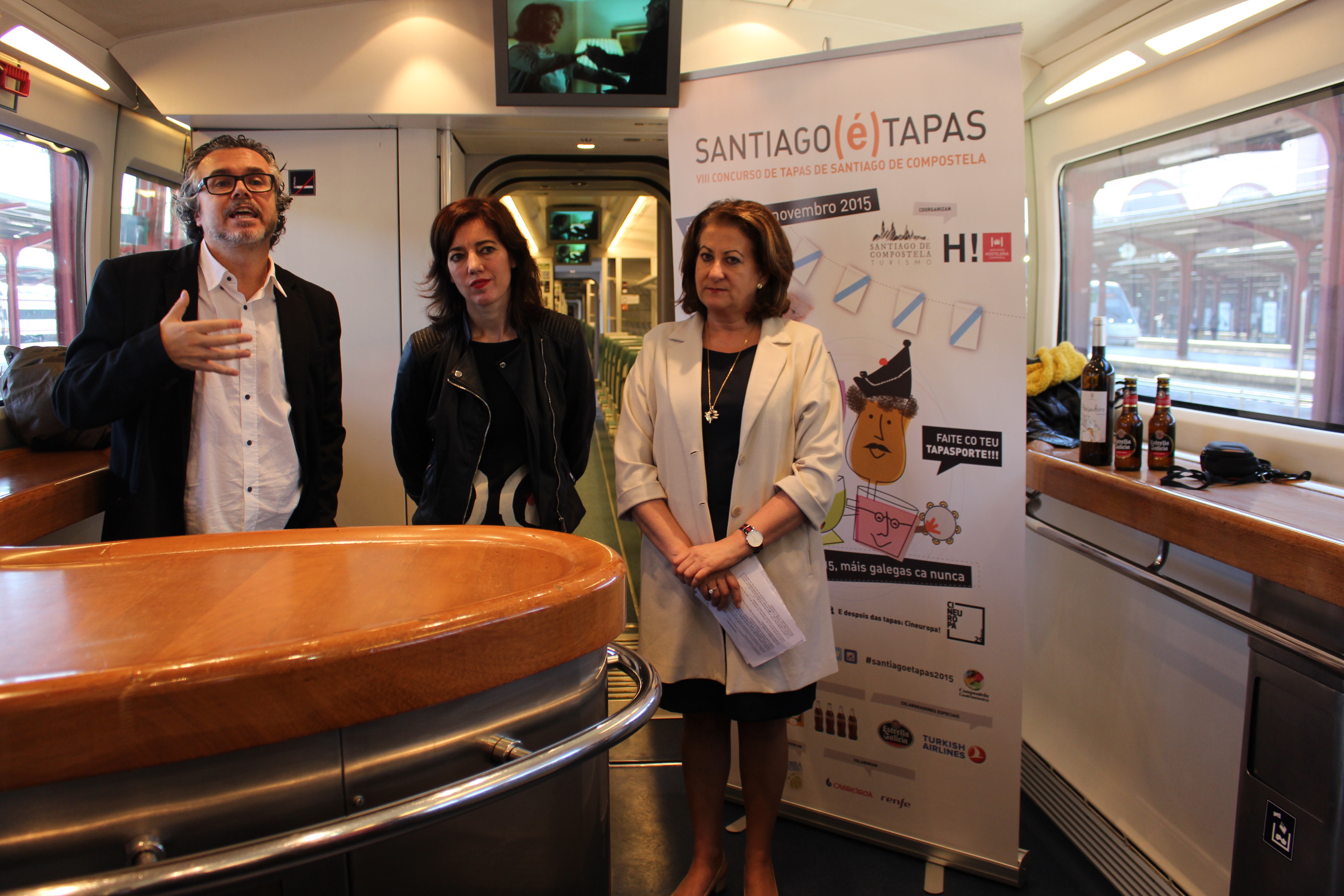 Un vagón del tren Alvia que efectúa el trayecto Madrid-Compostela, en la estación de Chamartín fue el singular y diferente escenario de la presentación de Santiago(é)Tapas ,en el que también se desgranó el programa de Cineuropa ante periodistas y profesionales del sector.