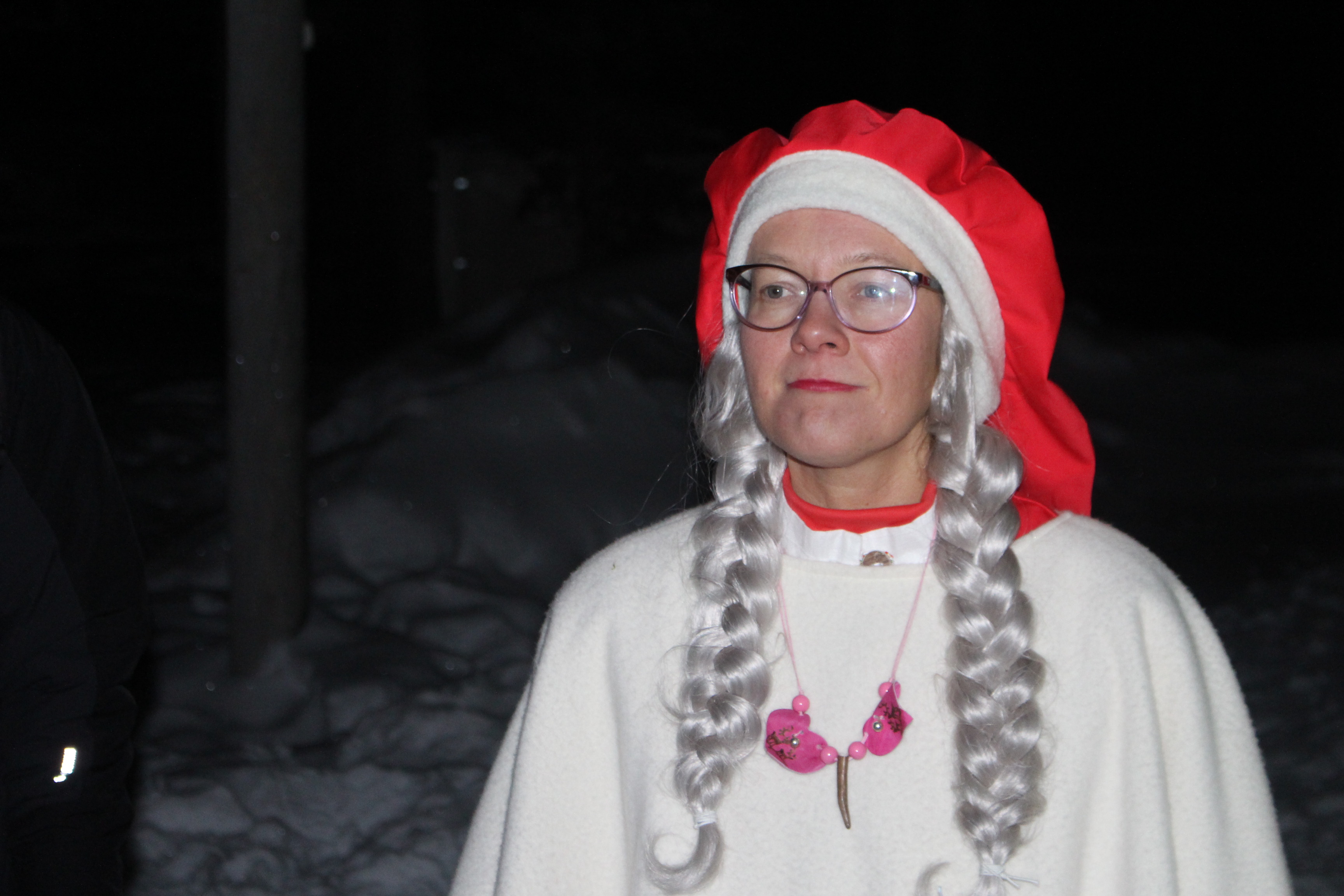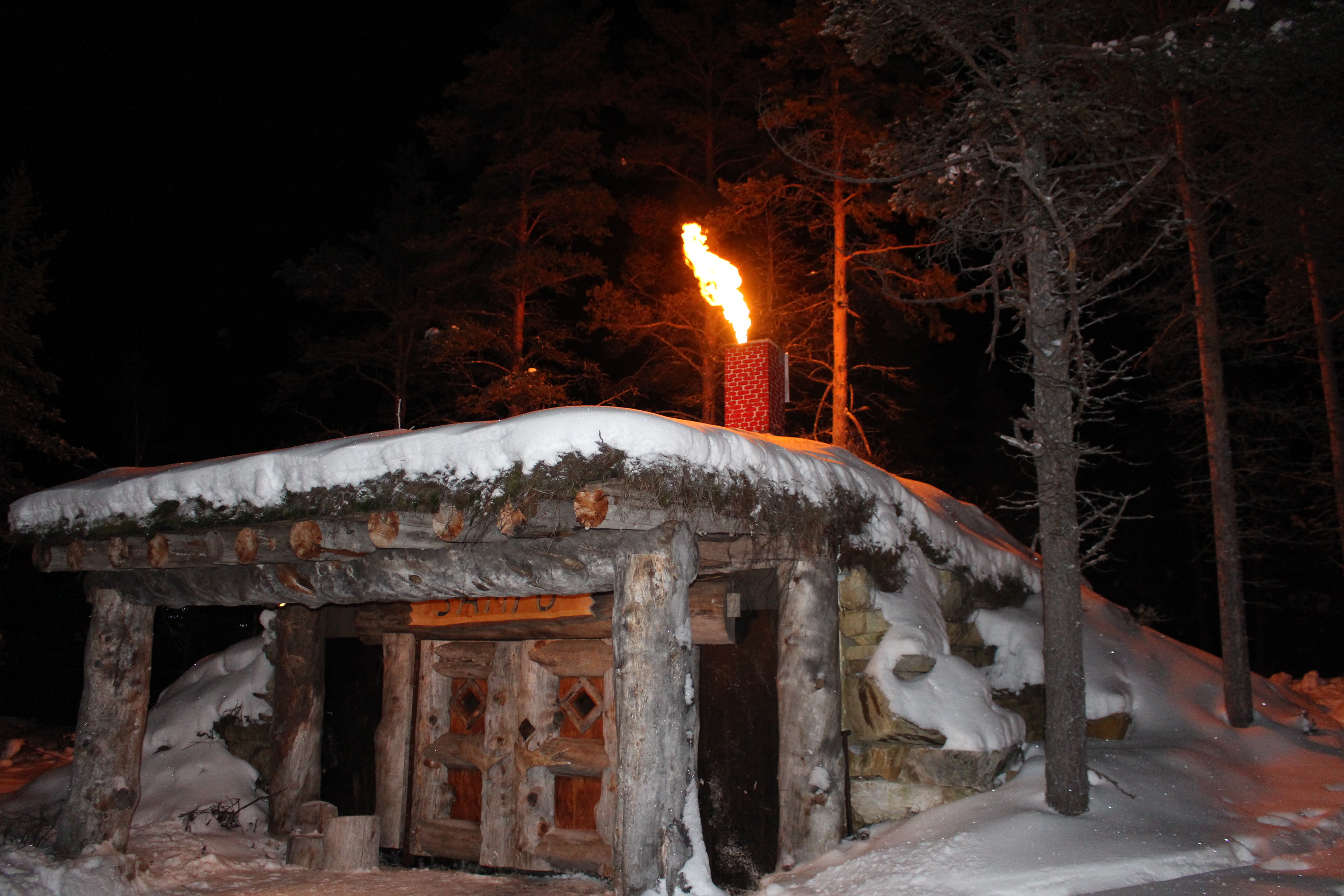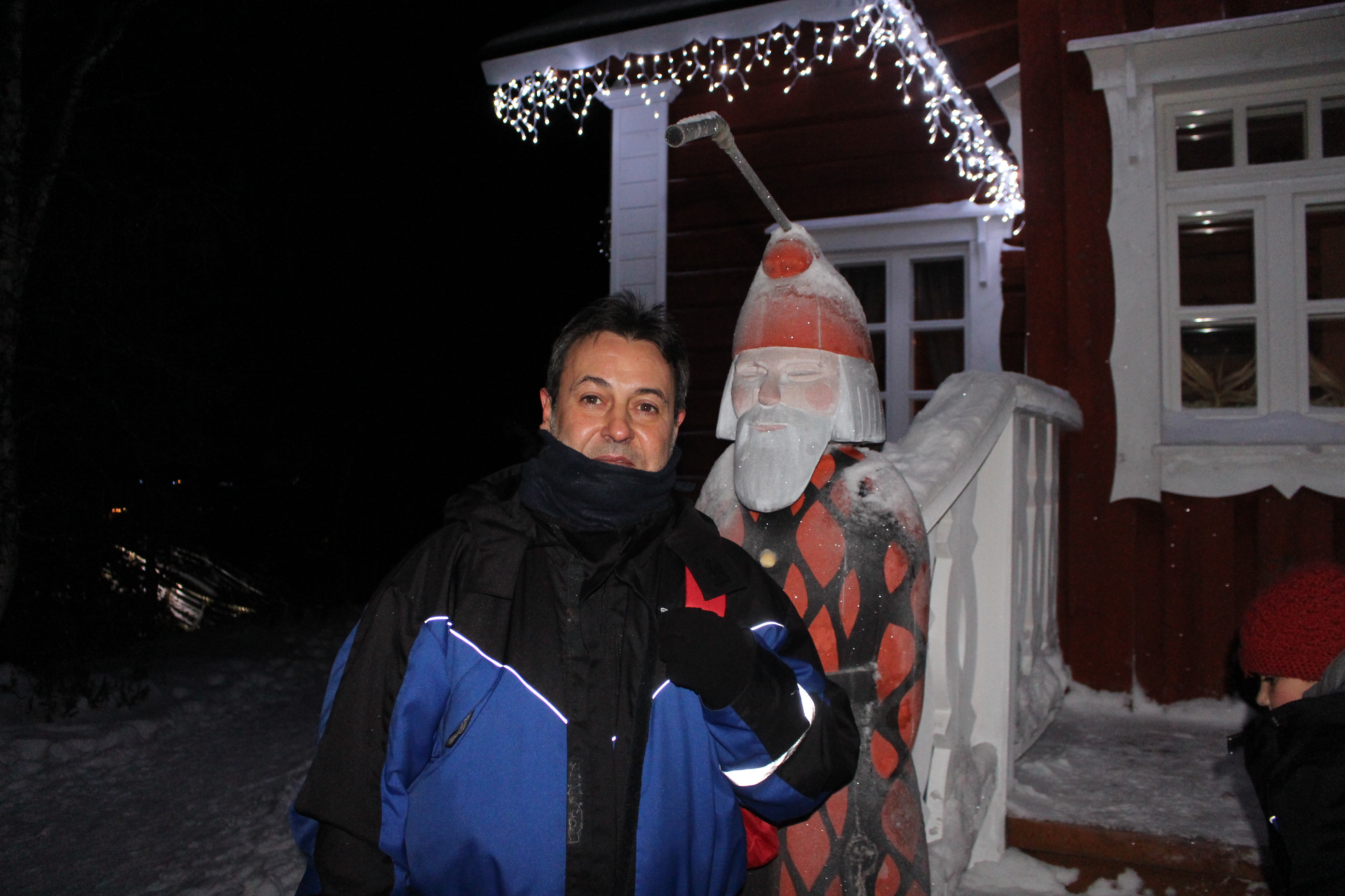 Tras atravesar un bosque virgen cubierto por más de un metro de nieve  atisbé a lo lejos una luz y el humo de una chimenea. Era una pequeña casa de madera. Un elfo salió a recibirme. me acompañó a ver como otra trabajaba elaborando utensilios de hierro. Este mismo elfo me enseñó unos polvos de oro que al contacto con el fuego se transforman en una vistosa llamarada. El fuego desborda la chimenea y en contacto con el cielo infinito y estrellado se transforma en juguetes y regalos que los elfos cargan en los trineos donde viaja Papa Noel. La propia esposa de Santal, fue quien se encargo de recibirme y posibilitar que el hacedor de sueños me recibiera.