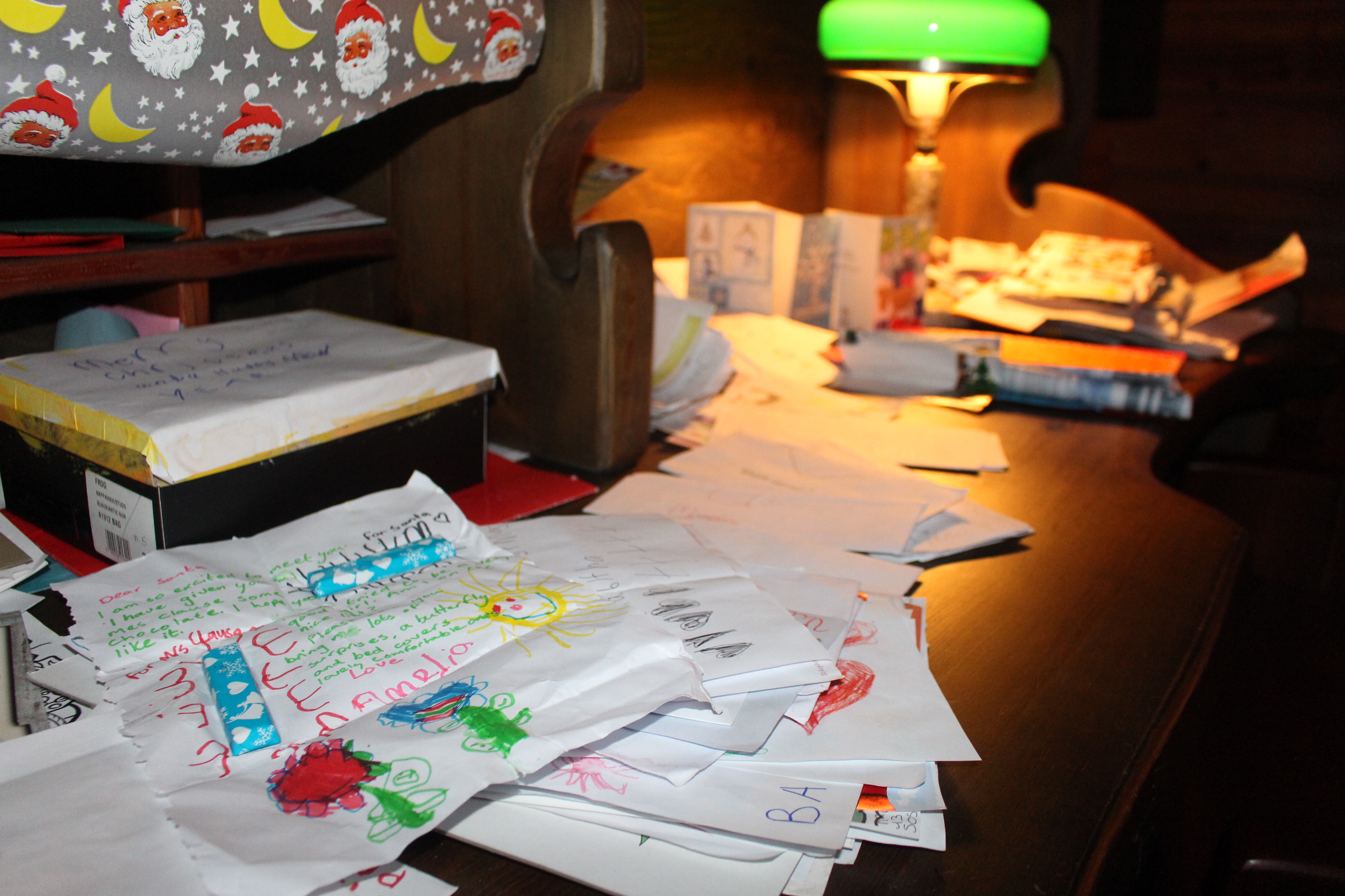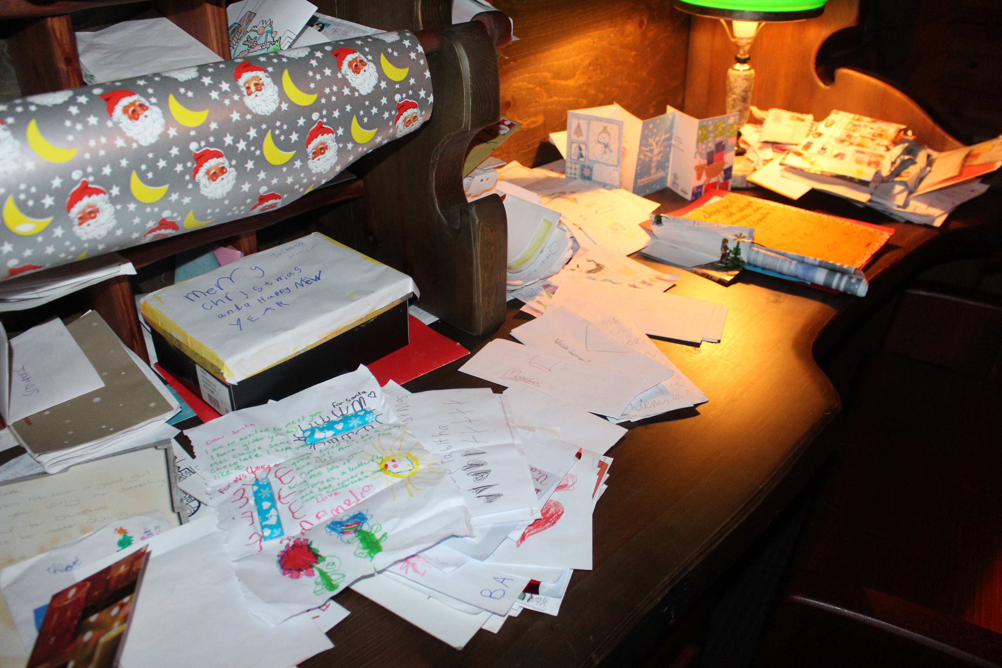 Me sentía tremendamente emocionado. Junto a una chimenea, un precioso abeto adornado de Navidad y un escritorio lleno de cartas, de todas vuestras cartas y las de millones de niños de todo el mundo, me dedicó unos simples pero perdurables minutos. Sabía de mi esfuerzo por encontrarle y no dudo en apartar su ingente tarea estos días, para escucharme.