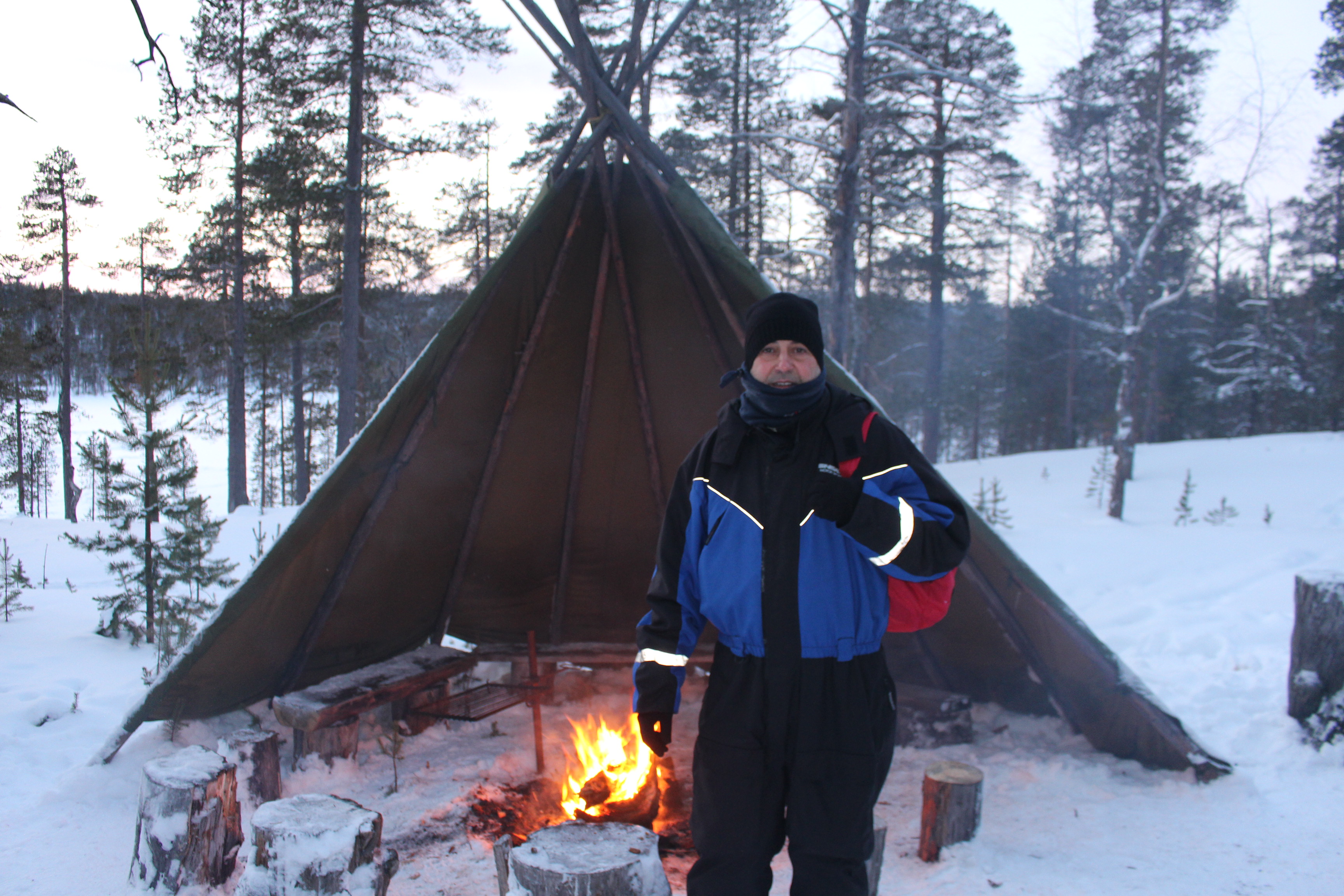 El frío arreciaba con el atardecer. Menos mal que mi aciago intento por pescar algo en el lago, los samis lo compensaron con un excelente guiso de alce con patatas y zanahorias hecho al fuego de leña de los inmensos bosques de esta gélida Laponia.