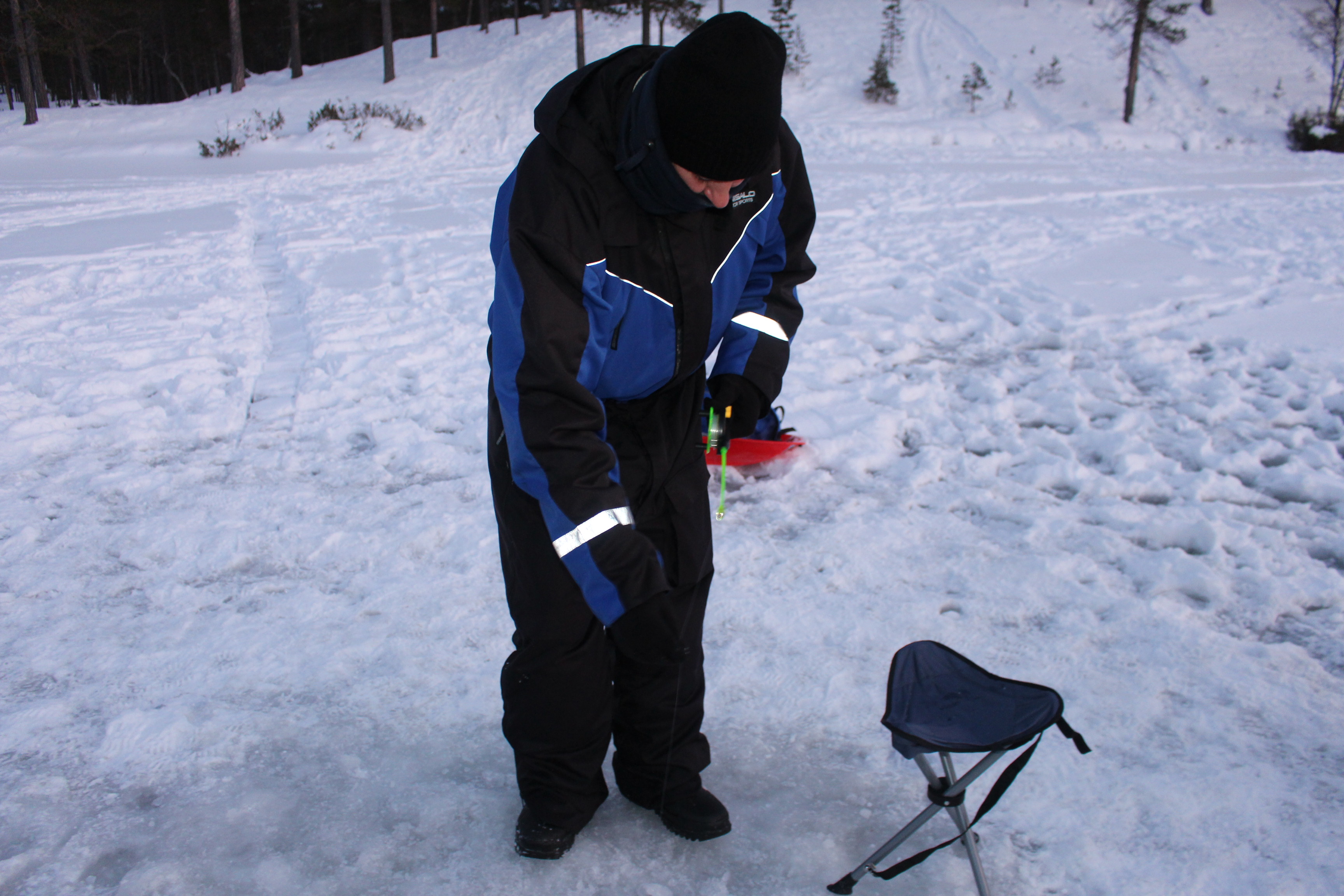 Muy al norte, casi en los límites mismos de esta majestuosa Laponia finlandesa, los lagos se multiplican. Lagos helados, donde los samis practican la pesca, agujereando la espesa capa de hielo de aproximadamente treinta centímetros, para capturar con enormes dosis de paciencia una trucha atigrada autóctona de estas zonas. Junto a ellos practiqué este arte ancestral, sin éxito.