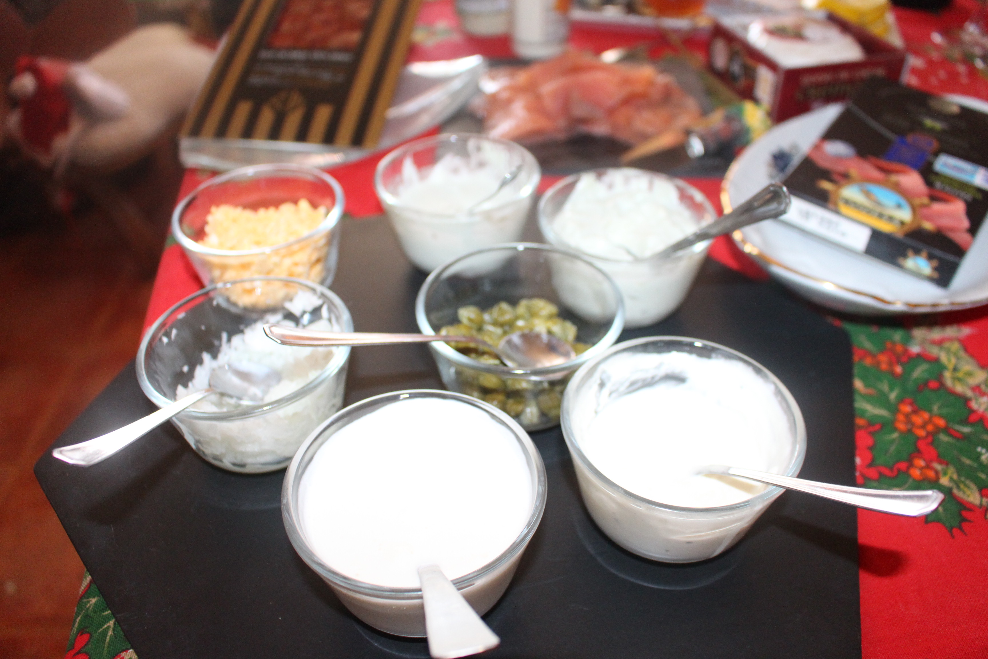 Me encanta el salmón ahumado que acompaño con nata agria, huevos, alcaparras y cebolletas, en esta ocasión era uno excepcional de Ahumados Domínguez y he utilizado también las salsas de la misma marca, una nórdica especial para el salmón y otra al eneldo.