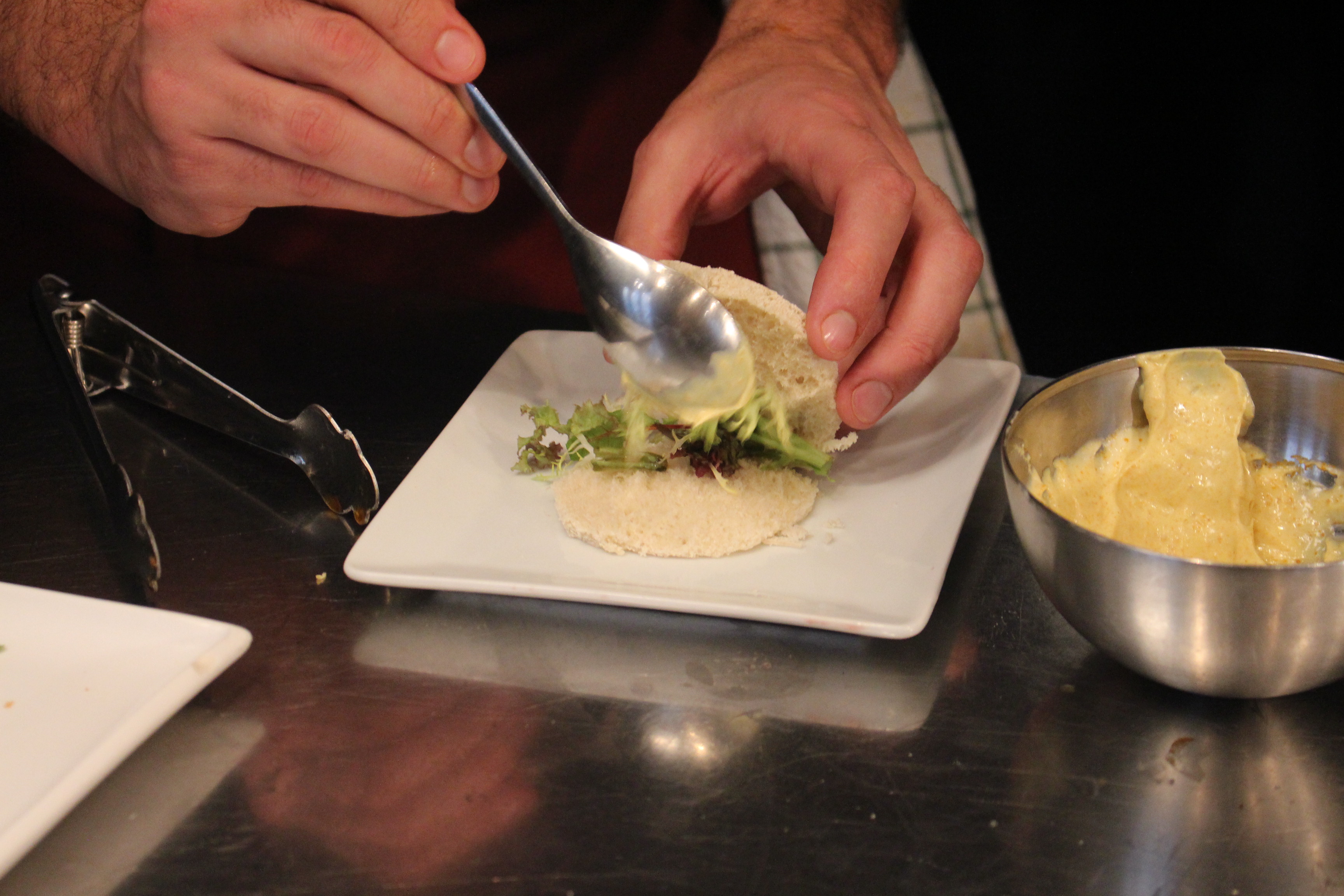 Se pone la carne en forma de brocheta y se lleva a la plancha. En el horno calentamos un pan de pita, al que colocamos unas lechugas cortadas y un poco de salsa de curry y listo para disfrutarlo.