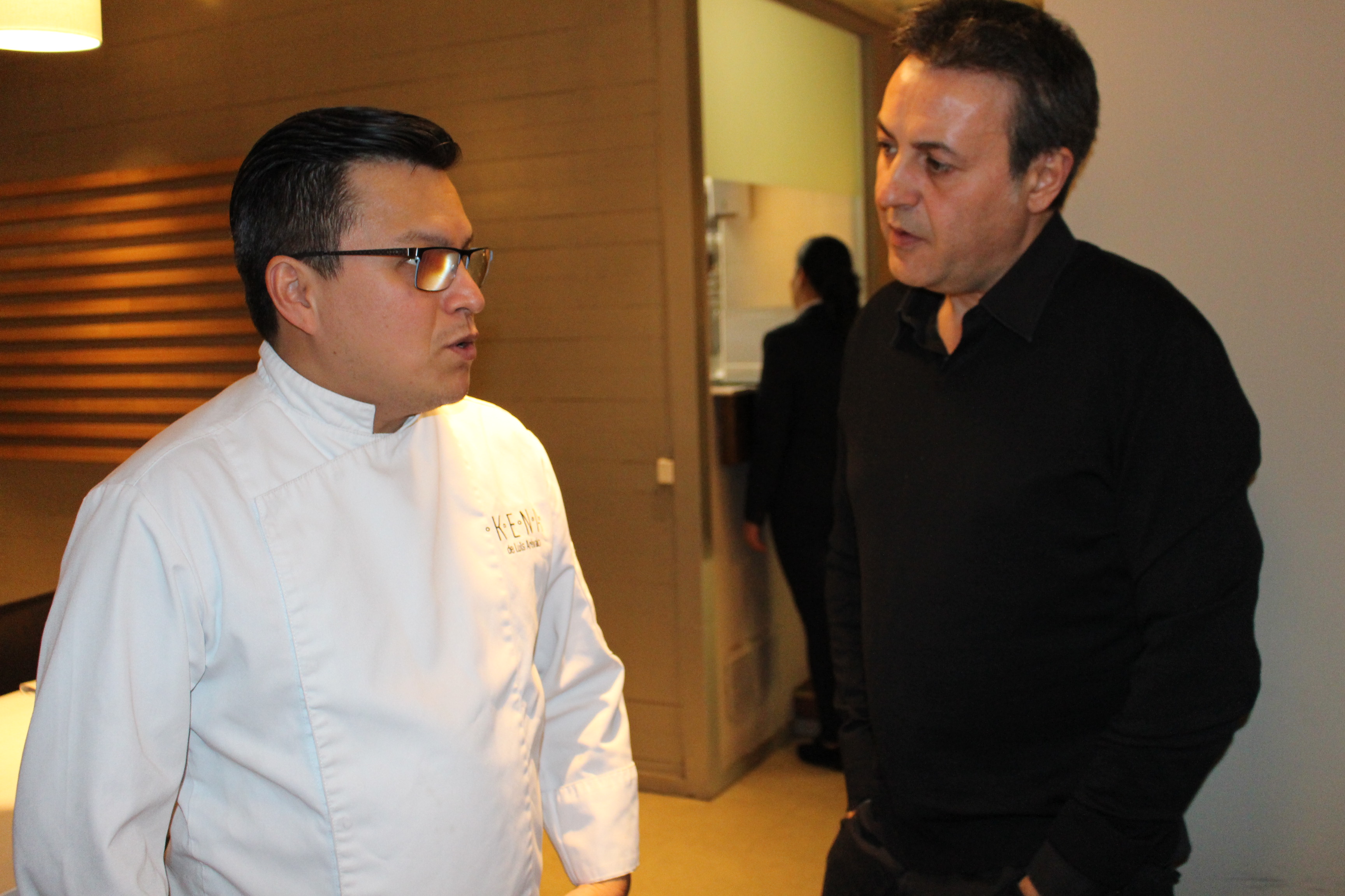 Estuve en su restaurante Kena con nueva ubicación en pleno barrio de Salamanca de Madrid, decorado por Nacho García Vinuesa, con un estilo actual y una estética moderna, en línea con las eclécticas creaciones de Arévalo. Kena de Luis Arévalo, Espacio Creativo Nikkei, es sin duda su gran apuesta, el proyecto más personal del cocinero. Cuenta con 4 espacios – la Barra, el Desenfadado, el Gastronómico y el Lounge – para 4 conceptos y públicos diferentes, en los que desfilarán tiraditos, ceviches, sashimis, niguris, sushi, rolls…con monitores de televisión en los que se puede ver al chef elaborando sus propuestas.