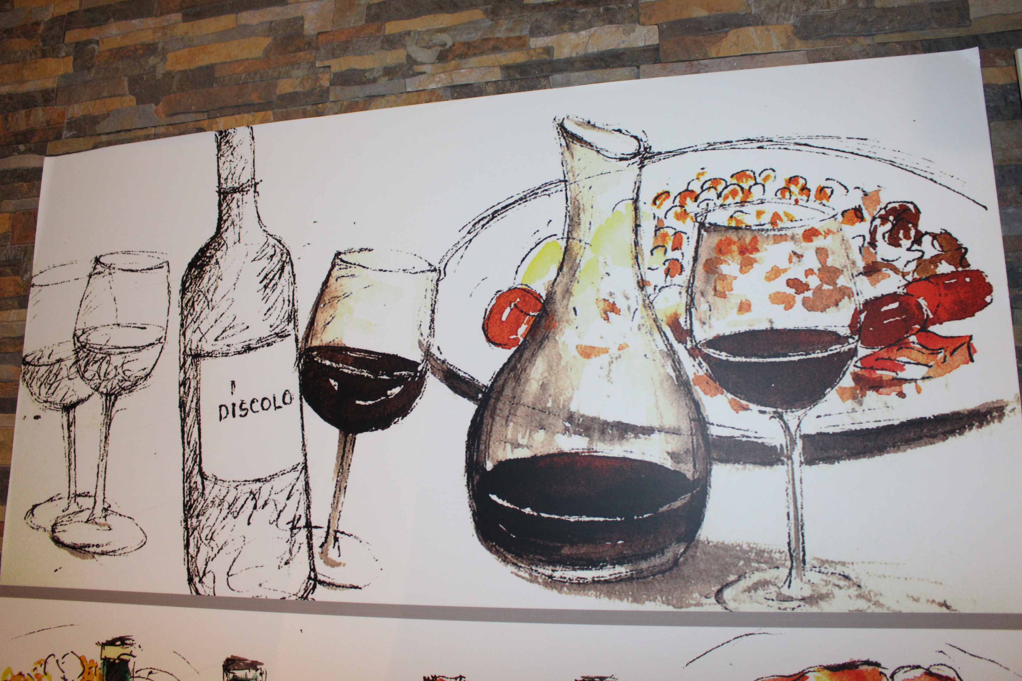Al deleite de unos sabores intensos y profundos se une el deleite visual que proporcionan una decoración sencilla que tiene en las acuarelas gastronómicas de Paco Somoza, del que en tantas ocasiones os he hablado, su esencia fundamental.