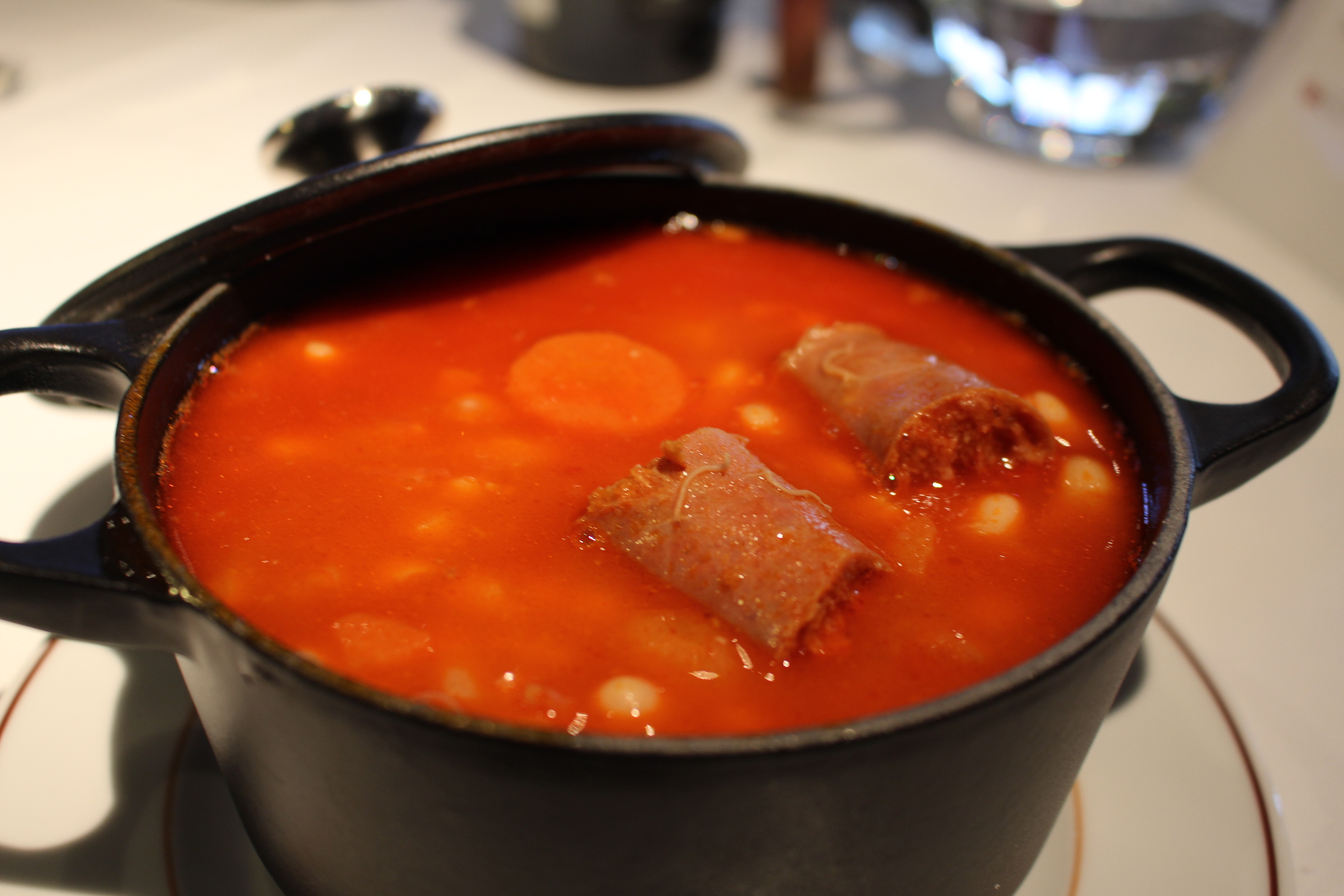 Croquetas inolvidables, judías con chorizo, rabo de toro y un postre elaborado con productos de proximidad, manzanas reineta, queso de la zona y miel de Mateo armonizado con un vinazo elegido por Félix Paniego, B de Basilio de Bodegas Basilio Izquierdo. Poco más se puede pedir.