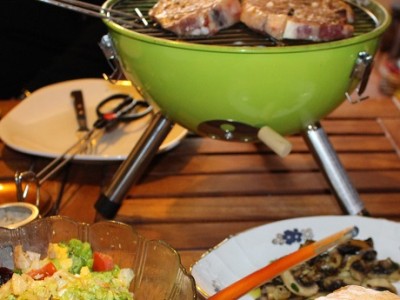 Estrenando parrilla de interior con buena carne y una gran ensalada con lechuga de hoja de roble, llena de color y buenas propiedades nutricionales.