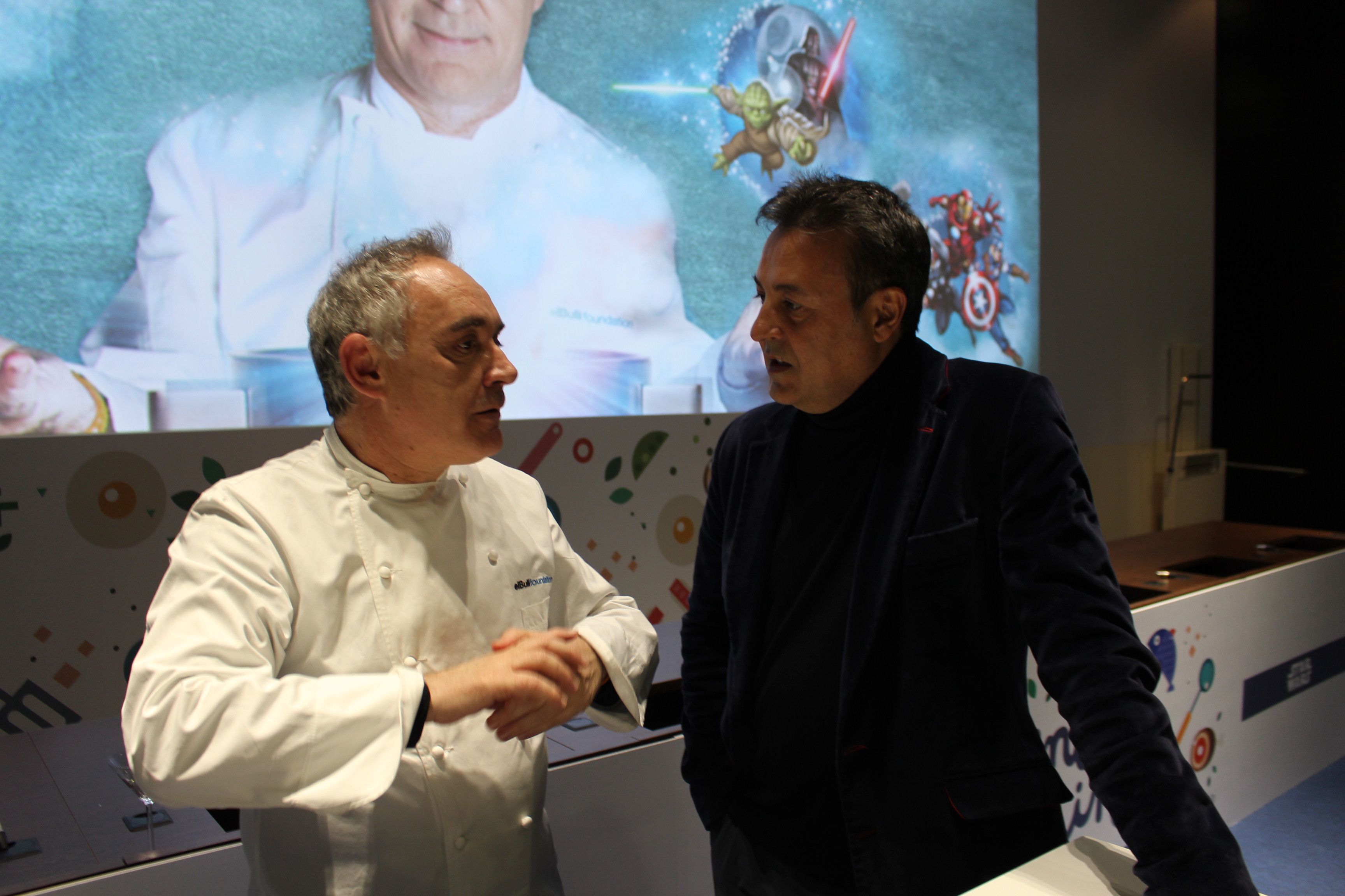 Siempre es un privilegio entrevistar a Ferran Adrià. En esta ocasión ha sido para la web, de la que, por cierto, nos honra con su seguimiento. ¿Que puedo contaros de un personaje de tal envergadura? Se han dicho tantas cosas ya. Considero que es un hombre absolutamente revolucionario, en permanente ebullición como su mítico y añorado Bullí. De personalidad apasionada, piensa más rápido que lo que puede transmitir. Es un infatigable trabajador que ha consagrado su vida a investigar, a ir más allá, a romper siempre con lo convencional. Es cercano y un verdadero adalid de la conversación. Hablas con él y de inmediato te contagia ese entusiasmo con el que vive. Me cuenta que, en estos momentos, nos presenta lo que define como el proyecto más importante de su carrera, conseguir junto con los muñecos de Disney, admirados por millones de personas en el mundo, a comer sano, mejor y de manera saludable. «La cocina ya es un hecho cultural que va a ayudar a hacer una vida mejor»-me comenta.