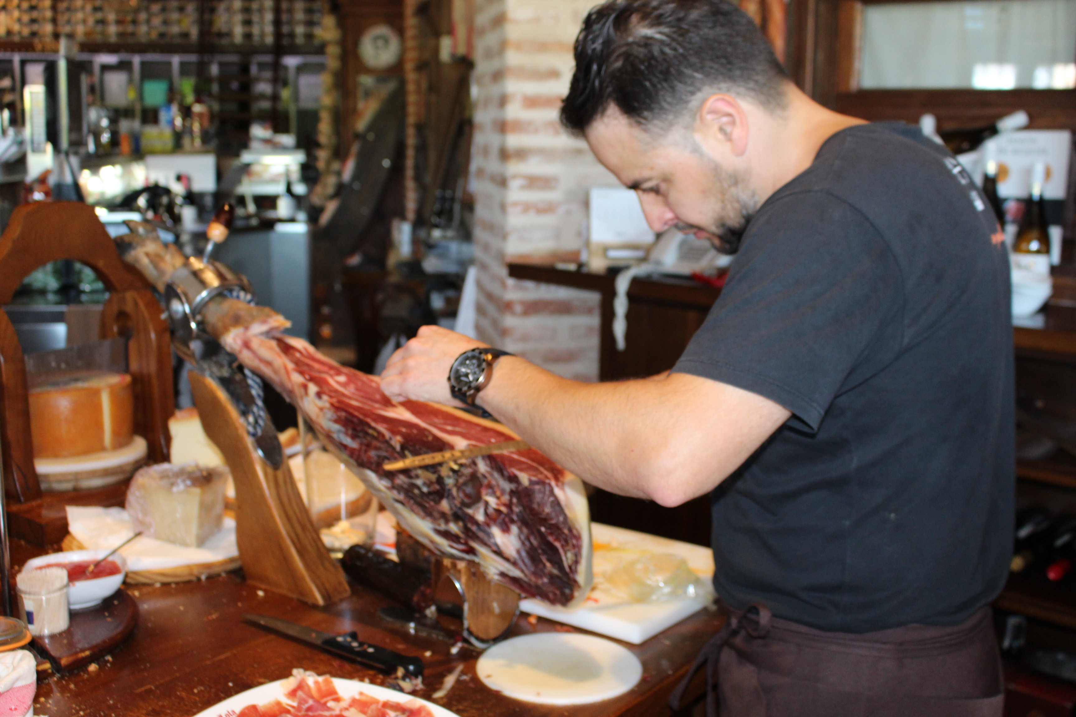 Conocí a dos de sus hijos, Bruno de la Oz, sumiller y a Federico que con autentica maestría se encarga de cortar el jamón y los embutidos para los clientes.