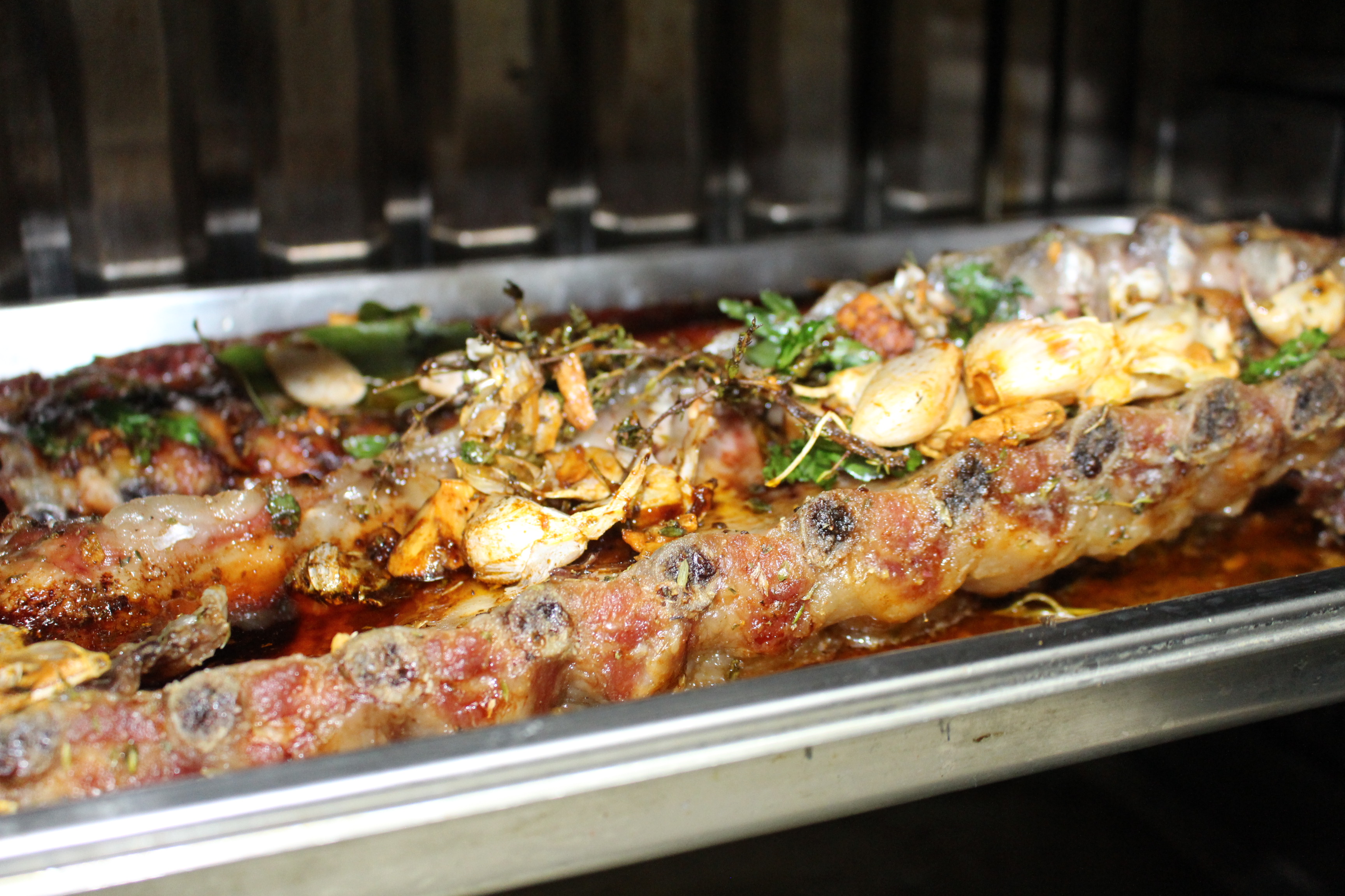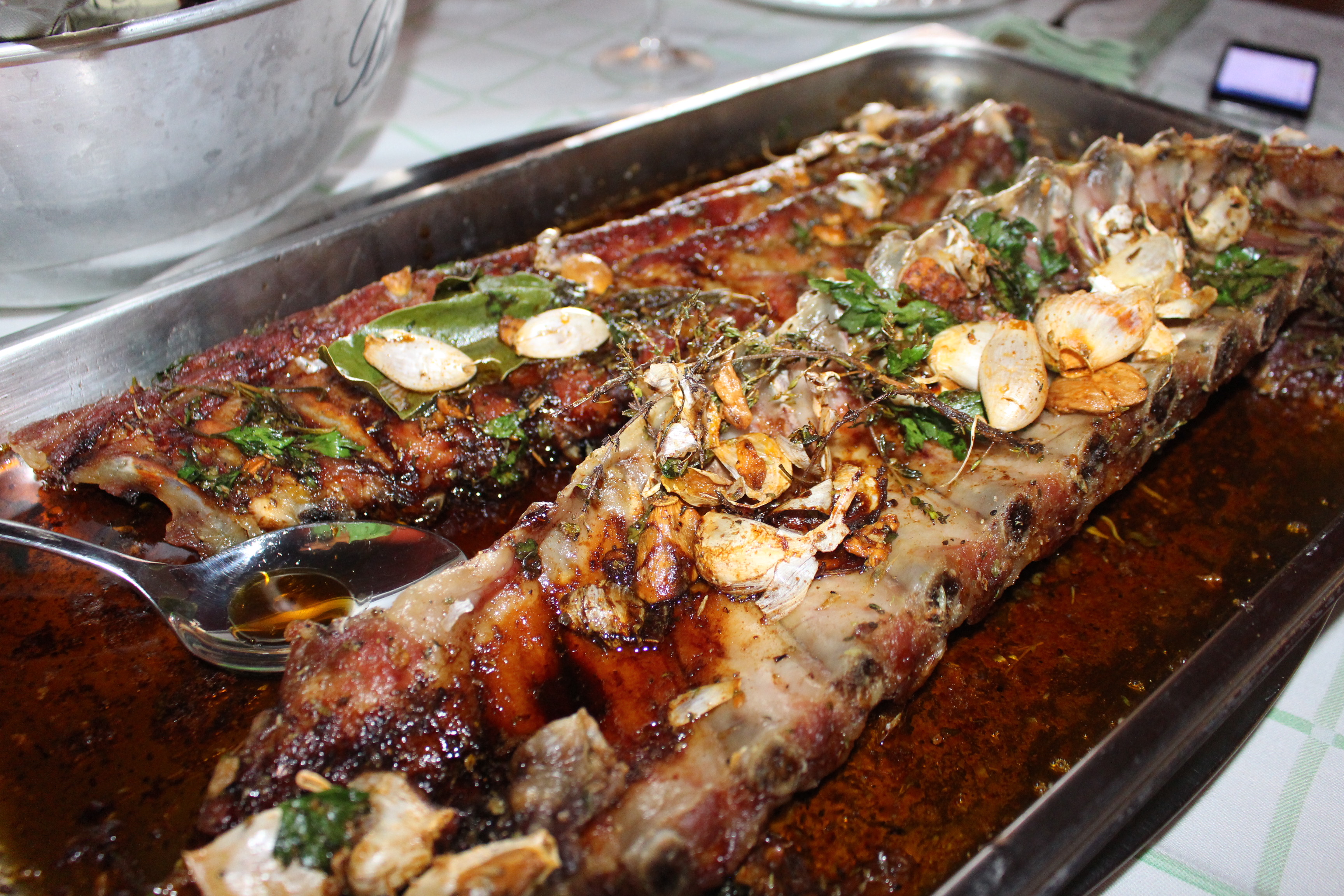 Este año nos decidimos  por un costillar adobado con hierbas del campo y por unas patatas revolconas, que también cultivan en la Dehesa. Aunque puede parecer muy contundente, las abulenses  revolconas acompañan a la perfección al costillar.