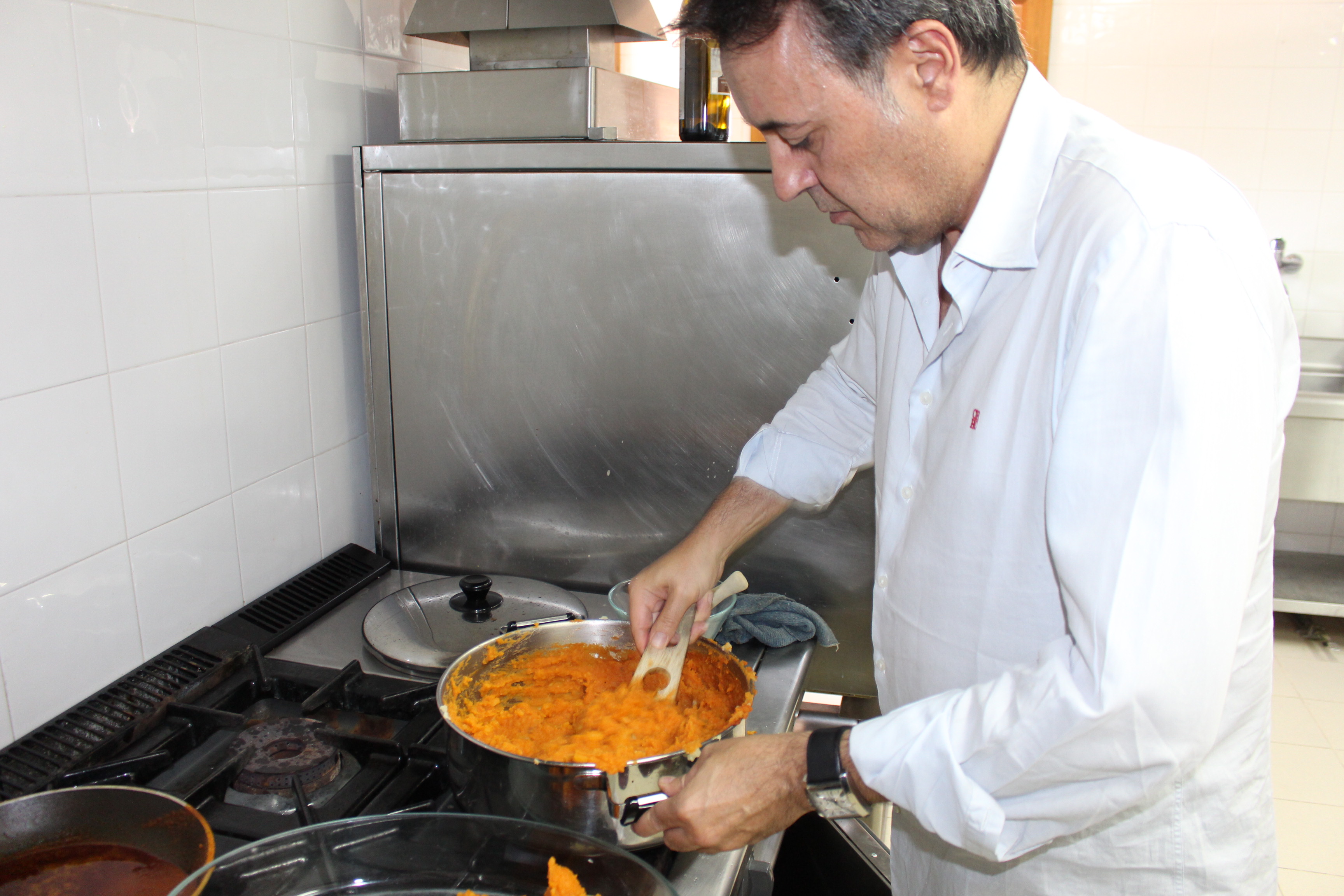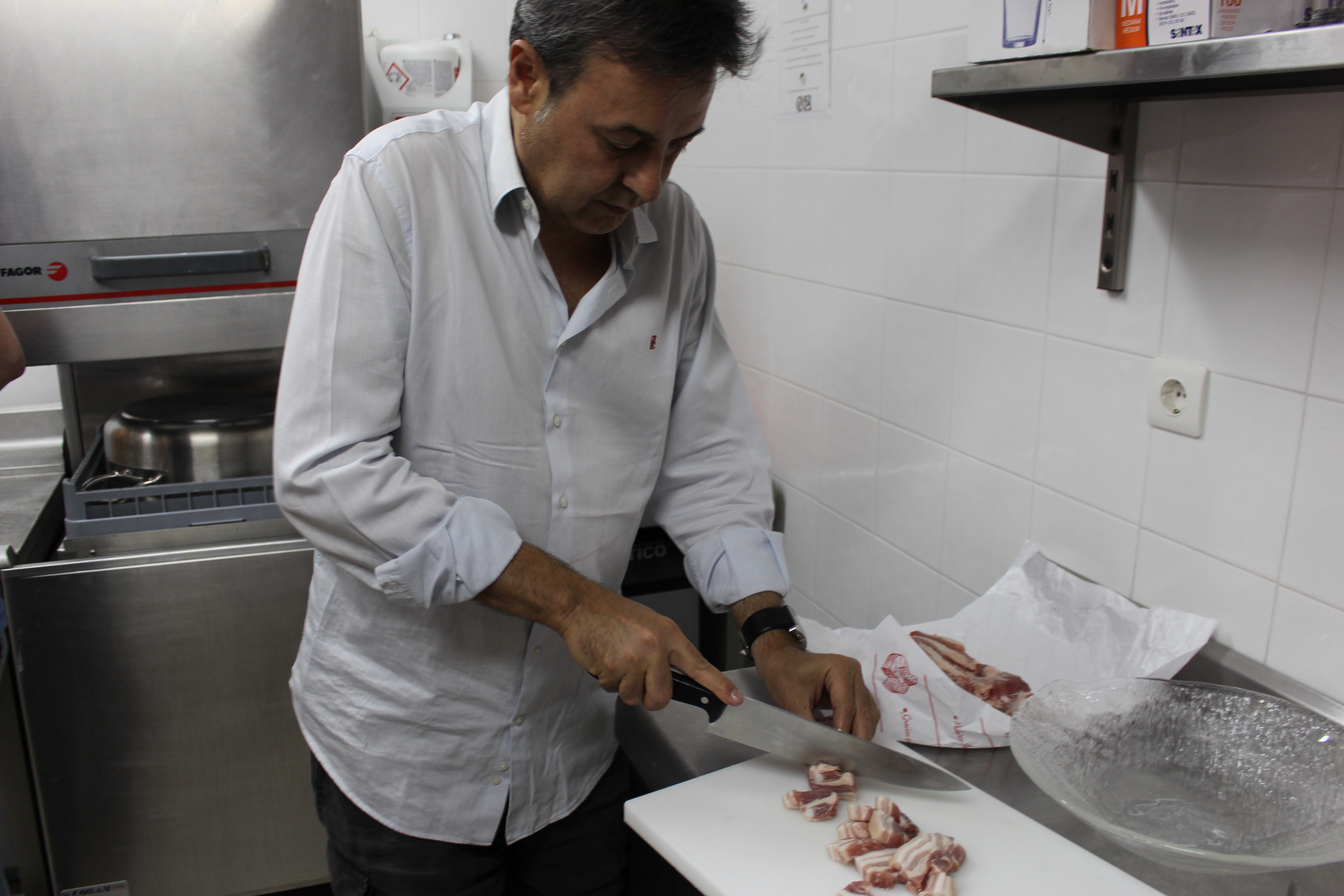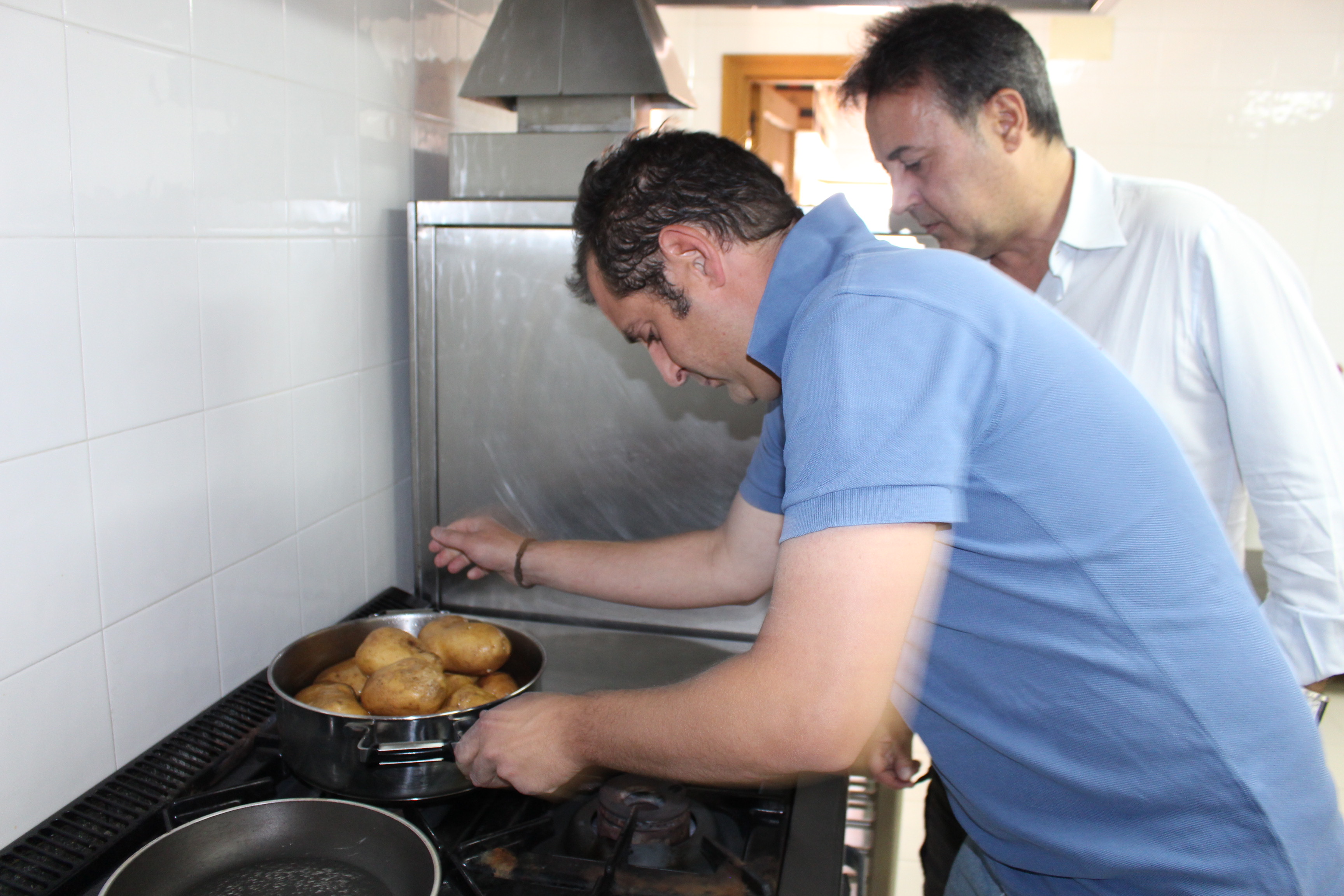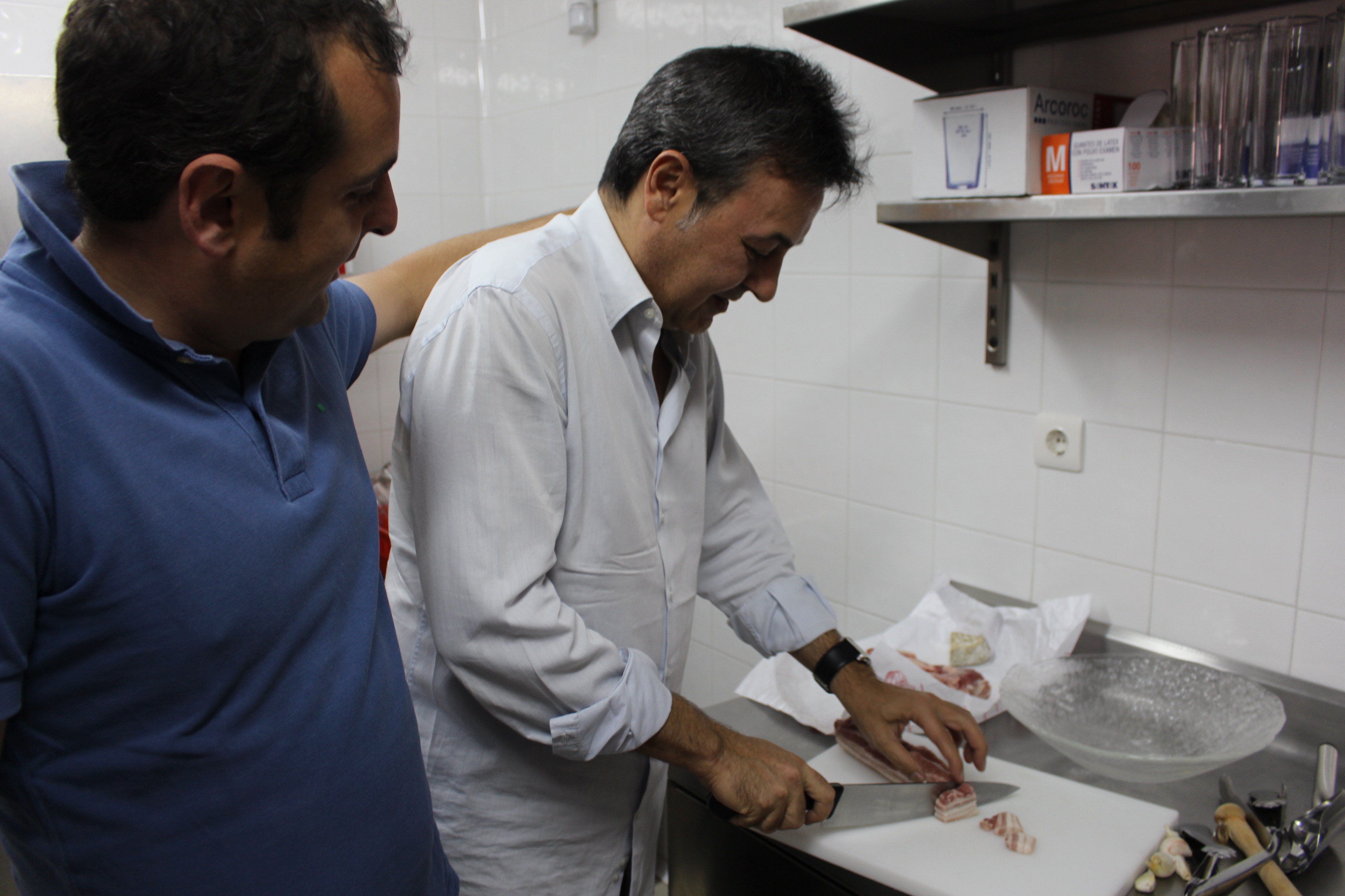 Iván y Belén Sanz, dedicados en cuerpo y alma a la bodega son los pinches perfectos. Nos metemos entre fogones acompañados por un buen aperitivo y empezamos a elaborar el plato.
