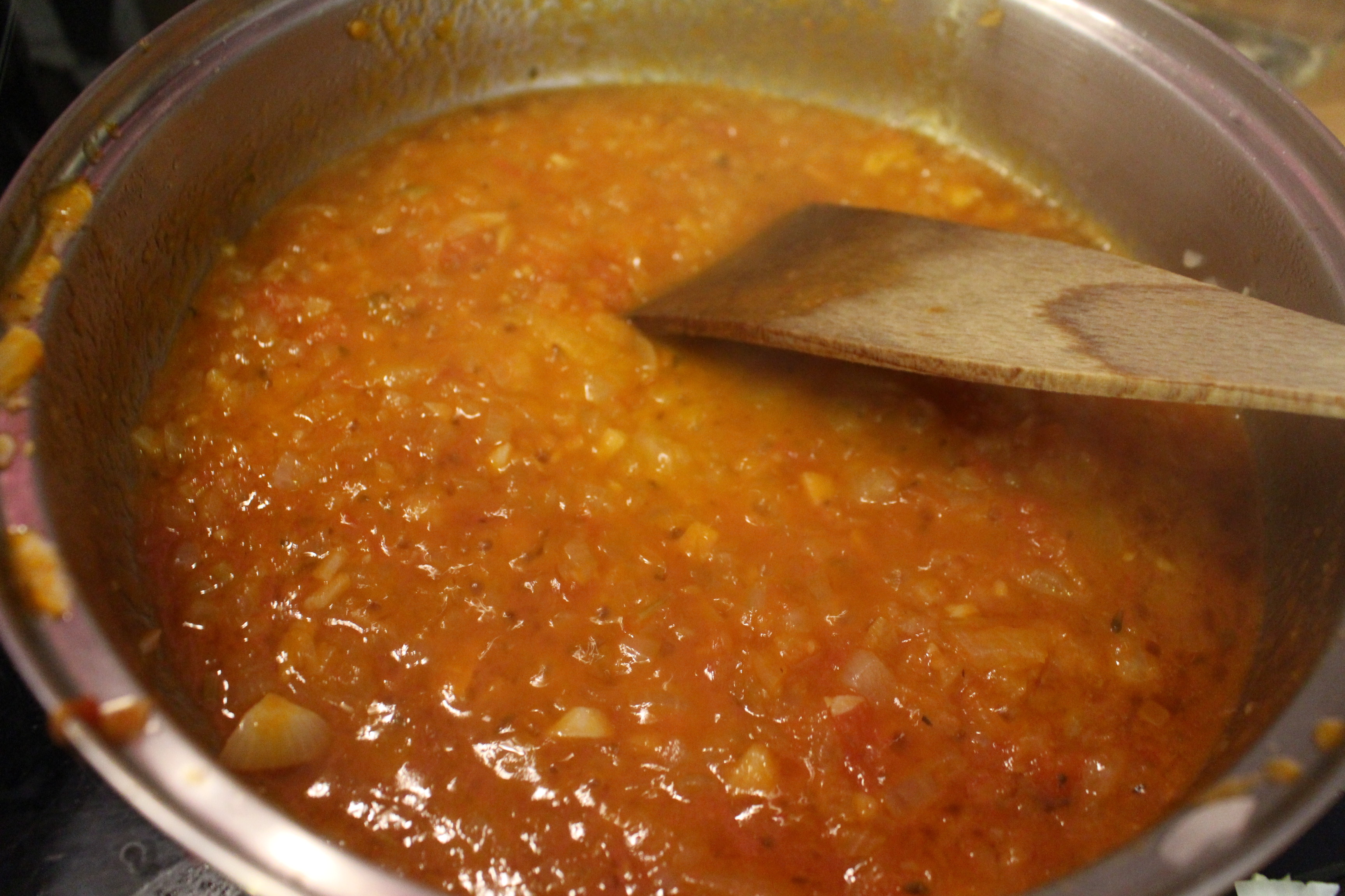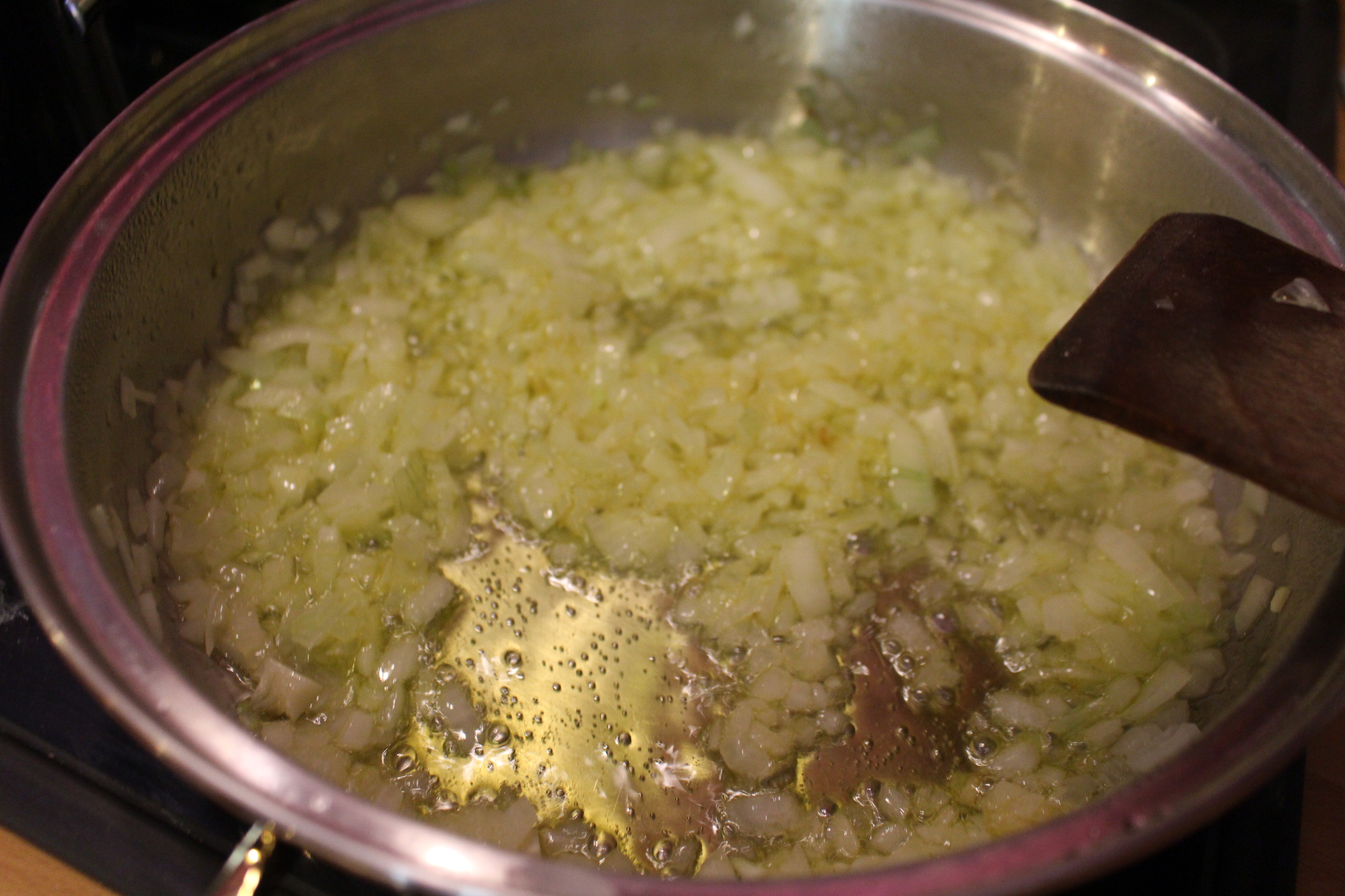 Una vez limpios los calamares, los dejo en remojo en una olla con vino tinto. Mientras en la sartén pocho la cebolla picada, cuando está listo añado el tomate natural triturado.