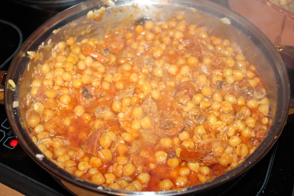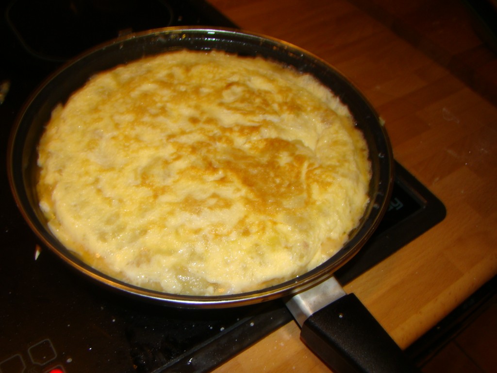Tortilla de cocido: patata, col, garbanzo, pelota.
