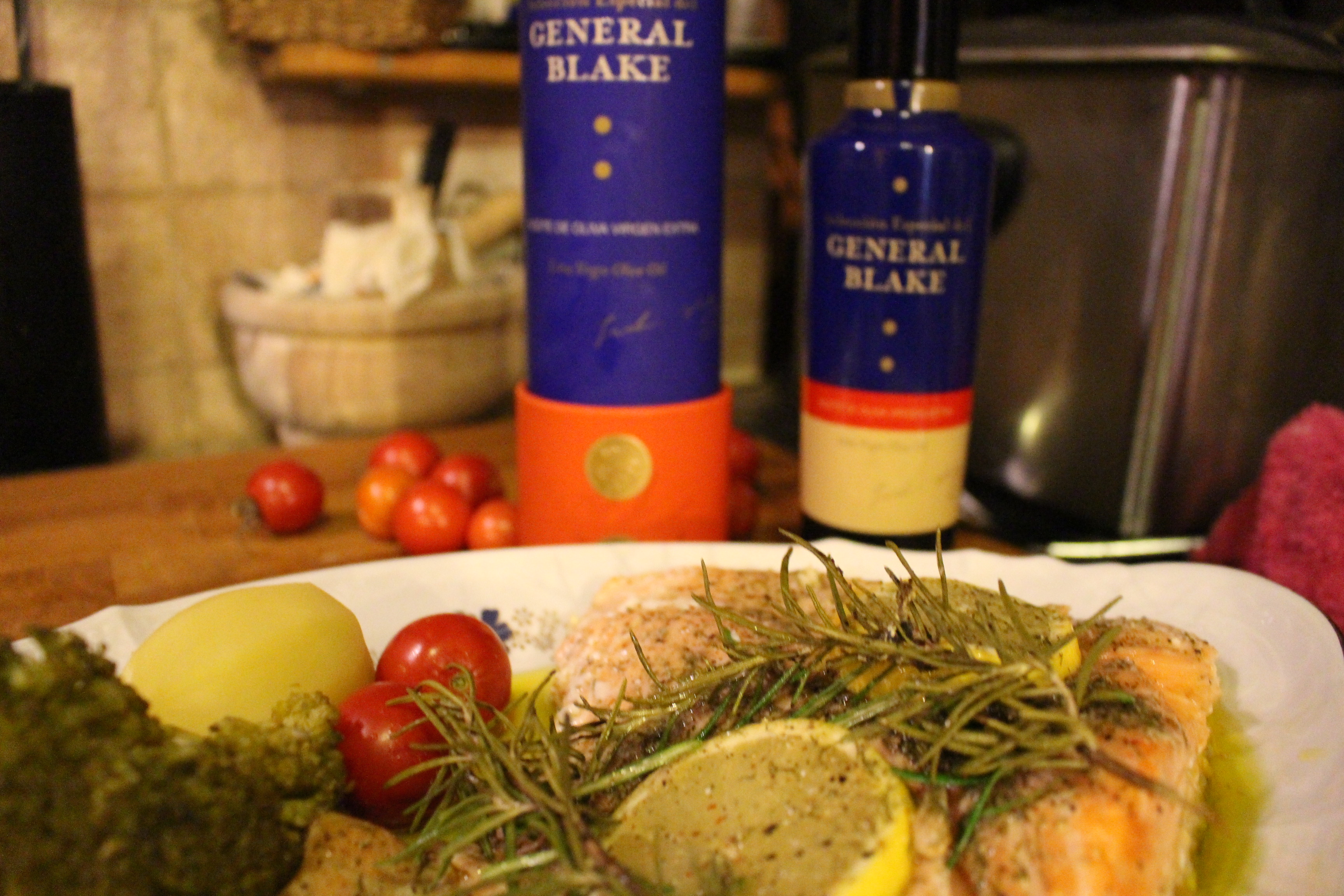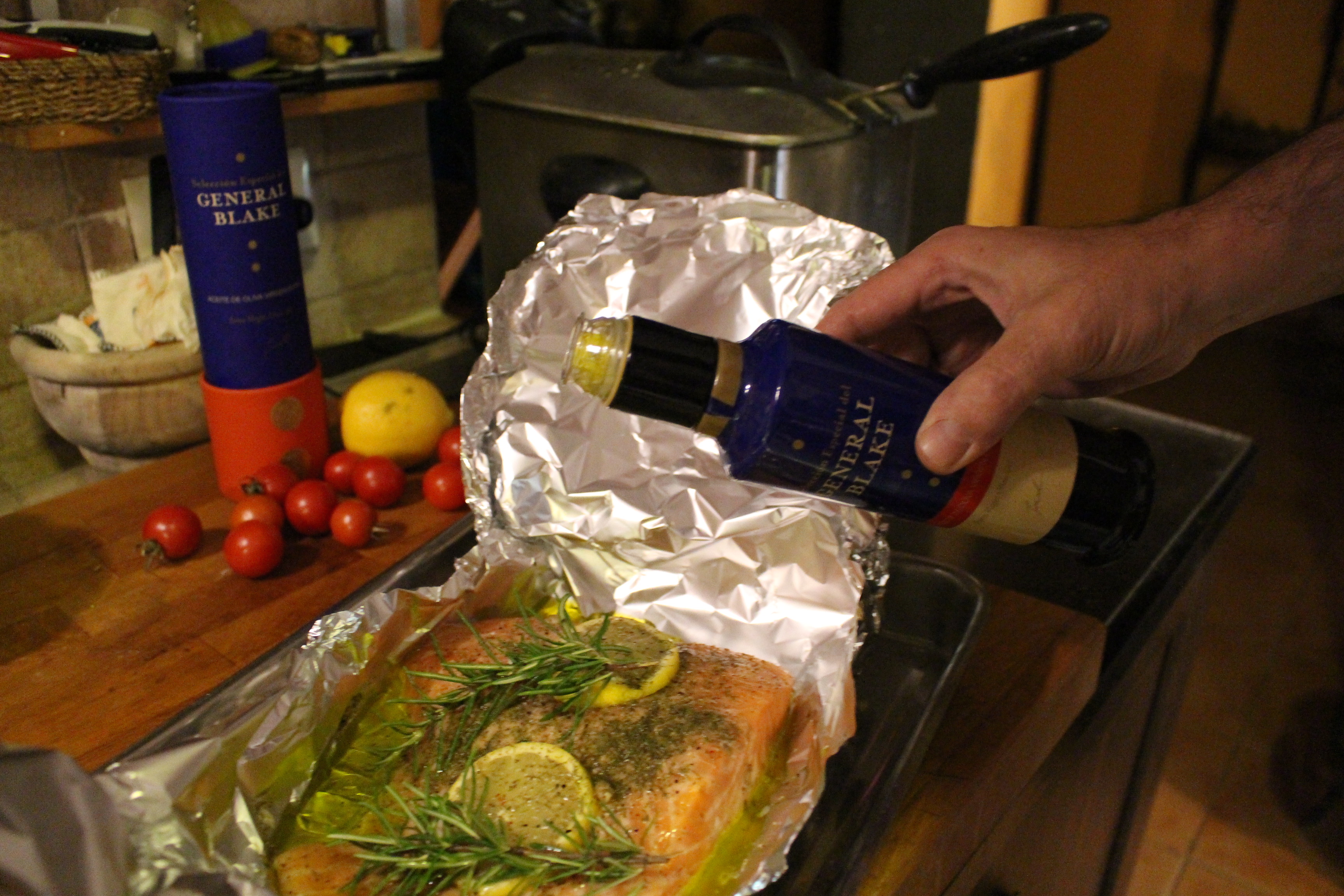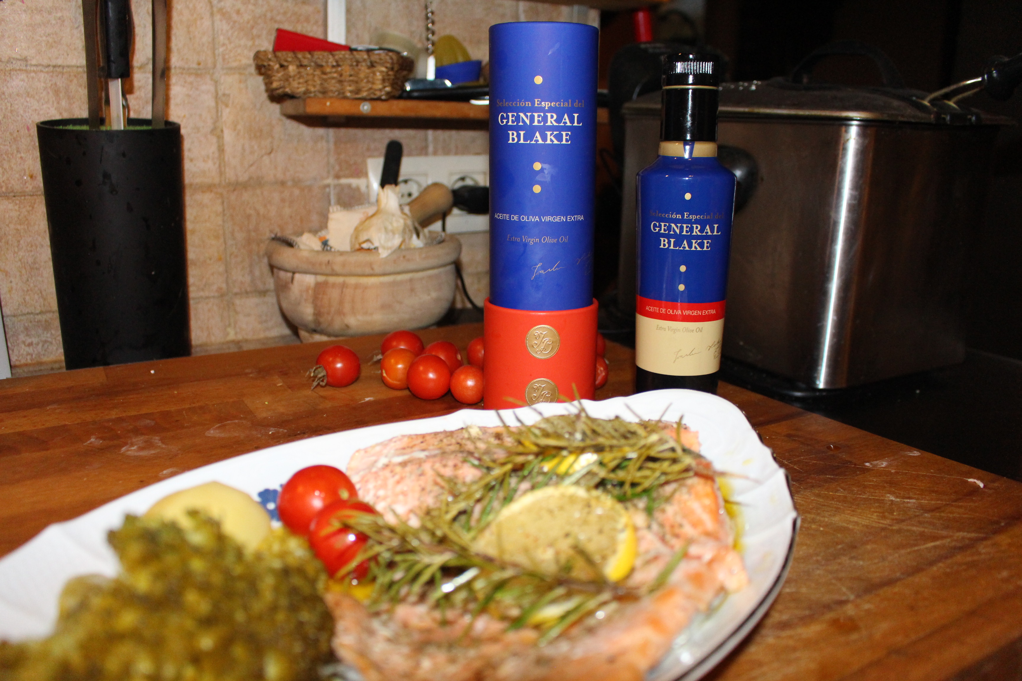 He querido aromatizarlo con un aceite muy recomendable, se trata del Aceite de Oliva Virgen Extra Selección Especial General Blake, un aceite de Grupo Valdecuevas, excelente y de extraordinaria calidad. Un aceite perfecto para aliños, aderezo de pan y demás consumos en crudo.
