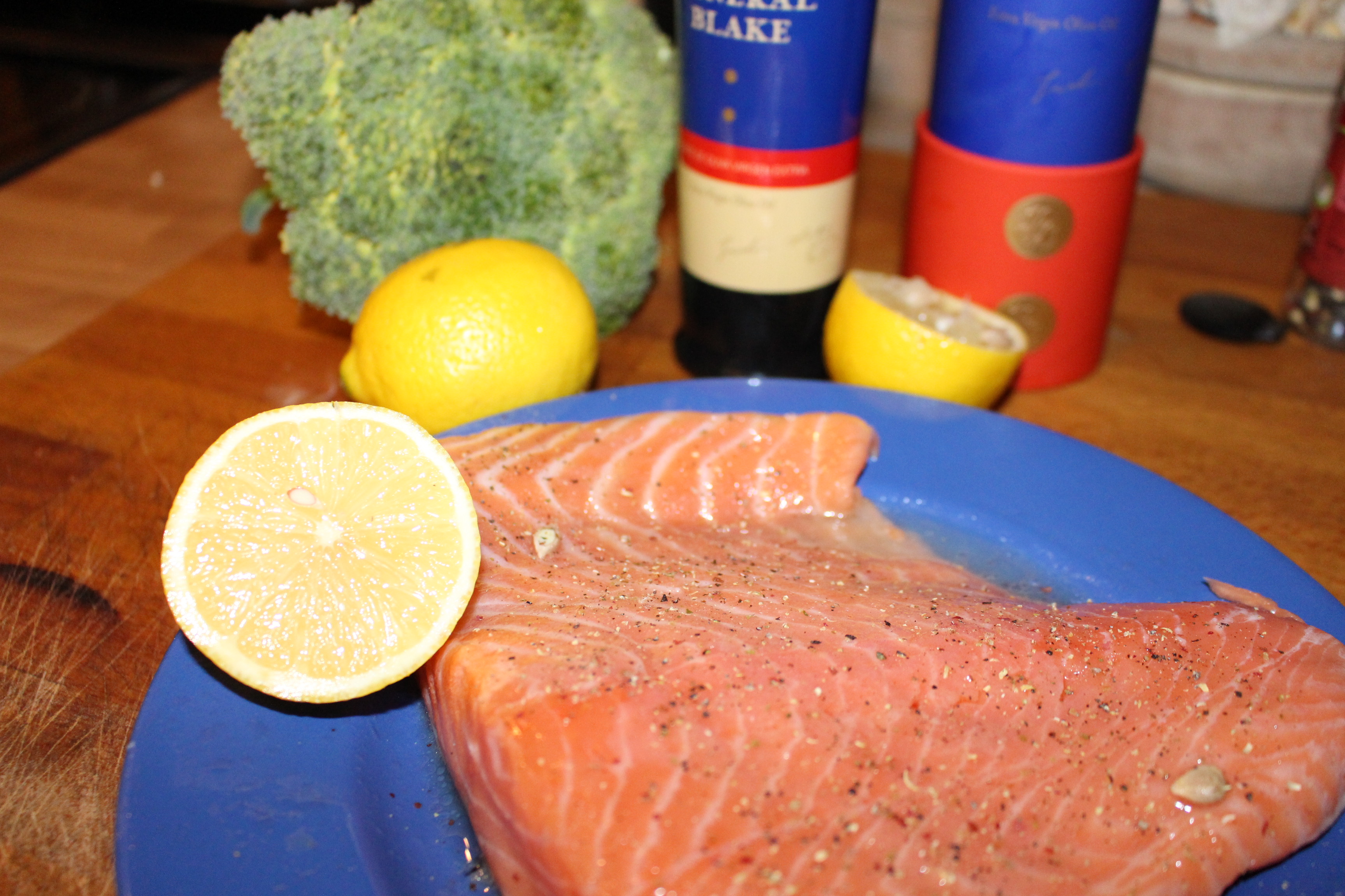 Precaliento el horno a 180 grados y voy preparando el lomo de salmón.