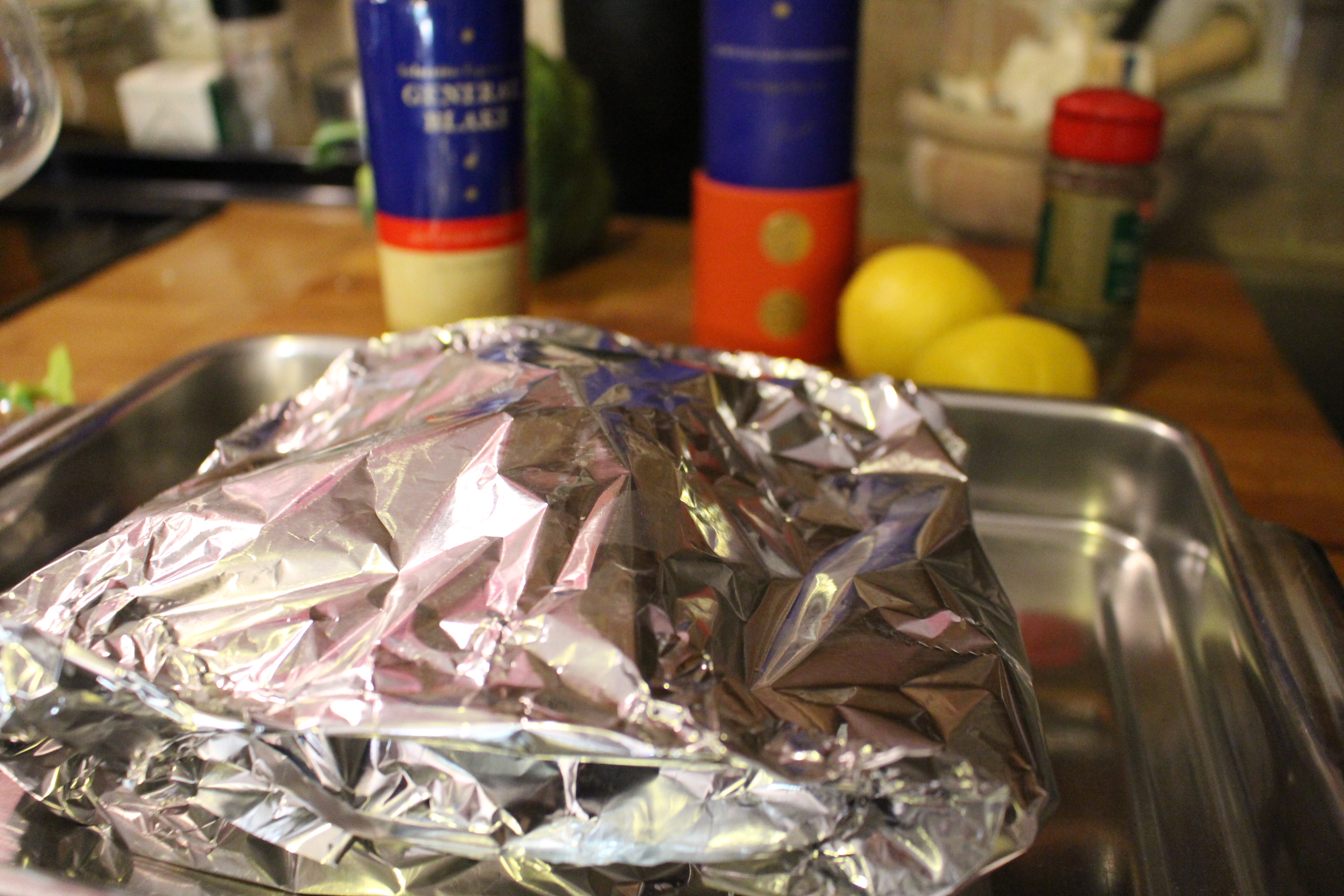 Cuando ya tengo aromatizado el salmón, cierro haciendo un paquete el papel de aluminio y lo meto en el horno unos 10 minutos.