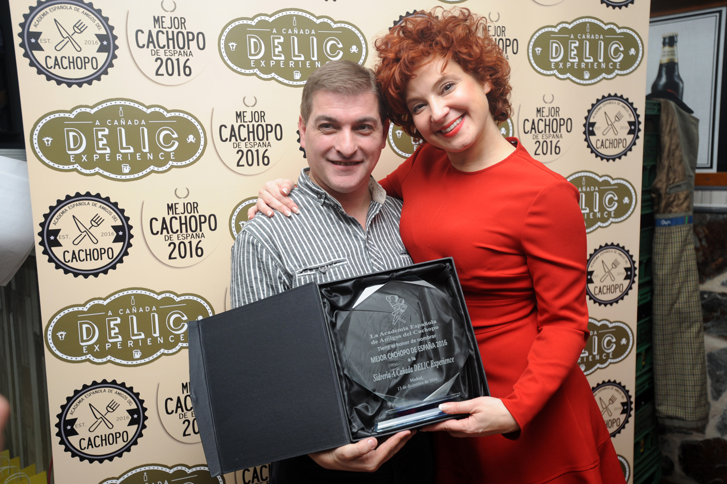 Ana Villa y César Román sostienen la placa al Mejor Cachopo de España 2016