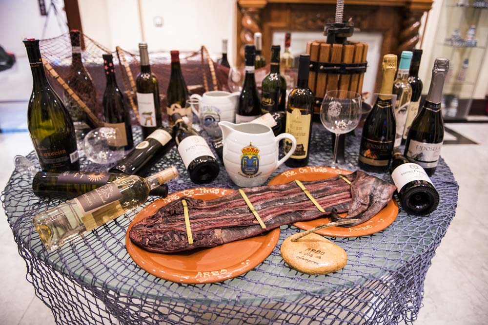 En esta reunión promovida por hosteleros, bodegueros y habitantes del concello, que ha seguido celebrándose gracias a la tradición familiar y a la transmisión de recetas de padres a hijos -como en empanada, lamprea asada a la brasa, frita y rebozada, guisada con fideos y tirabeques y a la arbense-, también se presume de vinos, otro de los tesoros de Arbo. Son vinos con Denominación de Origen Protegida Rías Baixas como el Albariño y el Condado, de la subzona del Condado do Tea, monovarietales de albariño y polivarietales de albariño treixadura y loureira.