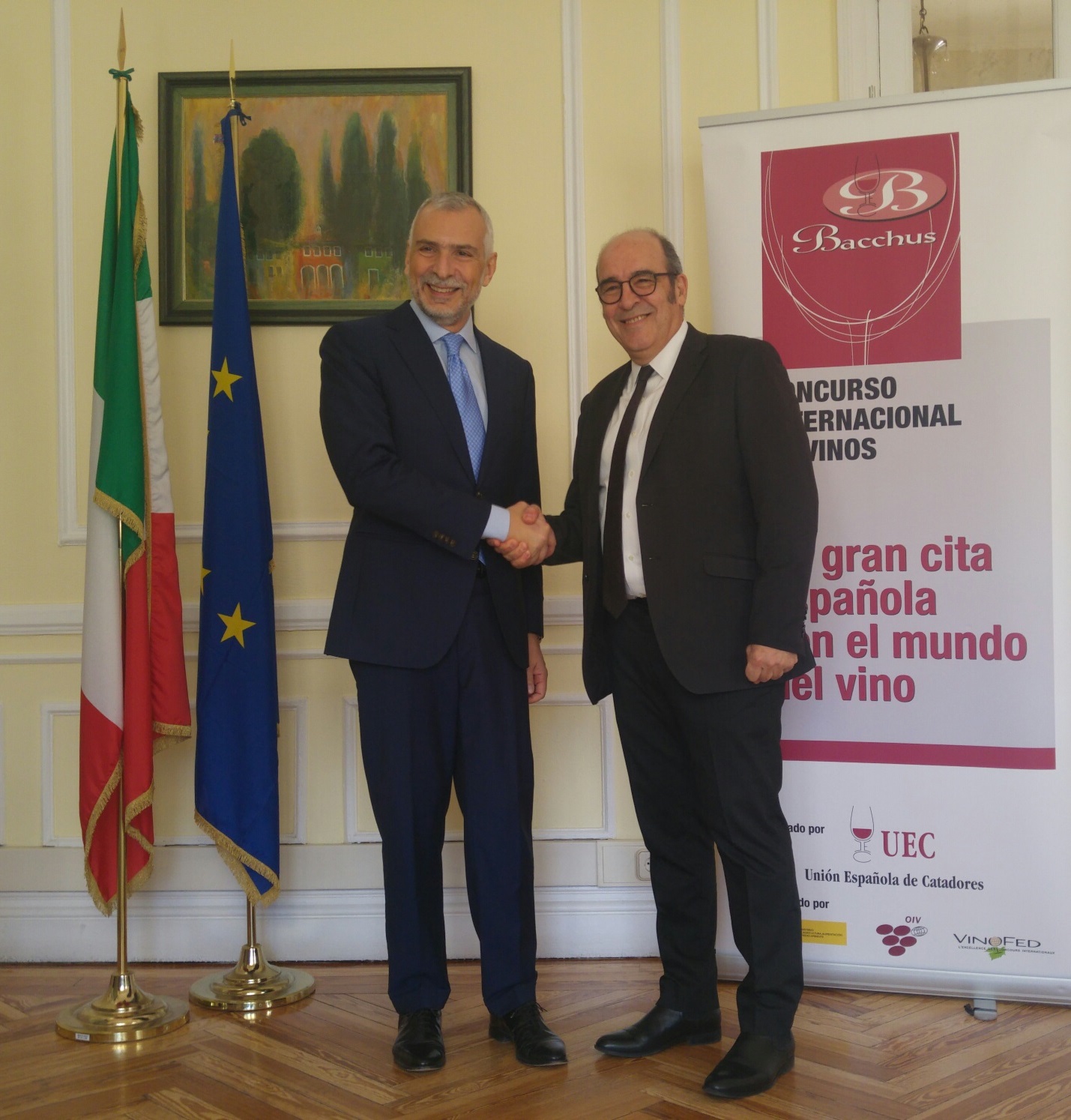 La Unión Española de Catadores, organizadora desde su fundación del Concurso Internacional de Vinos Bacchus, y la Embajada de Italia en España formalizaron en los salones de la Embajada de Italia en Madrid la firma del acuerdo por el cual Italia se convertirá en país invitado a Bacchus 2017, con la participación de 46 vinos italianos inscritos a través de la Agencia Italiana para el Comercio Exterior- ICE y la Cámara de Comercio e Industria Italiana para España.