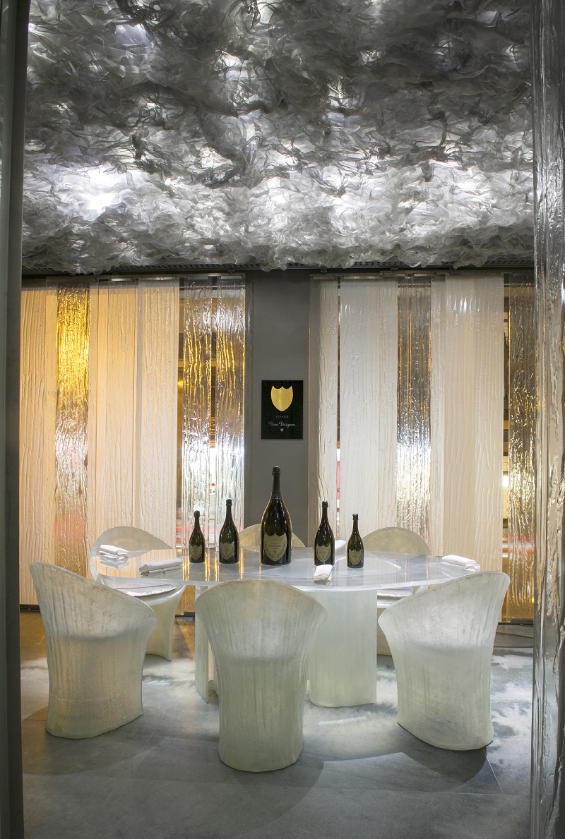 Dentro del comedor, en el que tan solo se atienden 24 comensales por noche, destaca el espacio Dom Pérignon, el lugar donde complementar la experiencia Enigma hasta llegar su apogeo y el espacio en el que se pone de manifiesto la colaboración entre este espacio y el considerado mejor champagne del mundo.