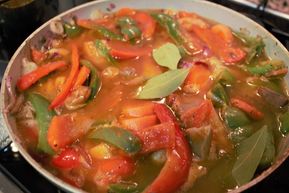 Especiamos con tomillo, romero y unas hojas de laurel. A los 30 minutos introducimos las patatas y un poco de perejil picado.