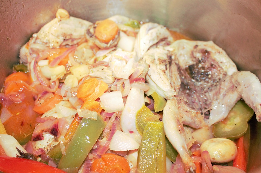 Receta de aves: Codornices guisadas con verduras, setas y patatas