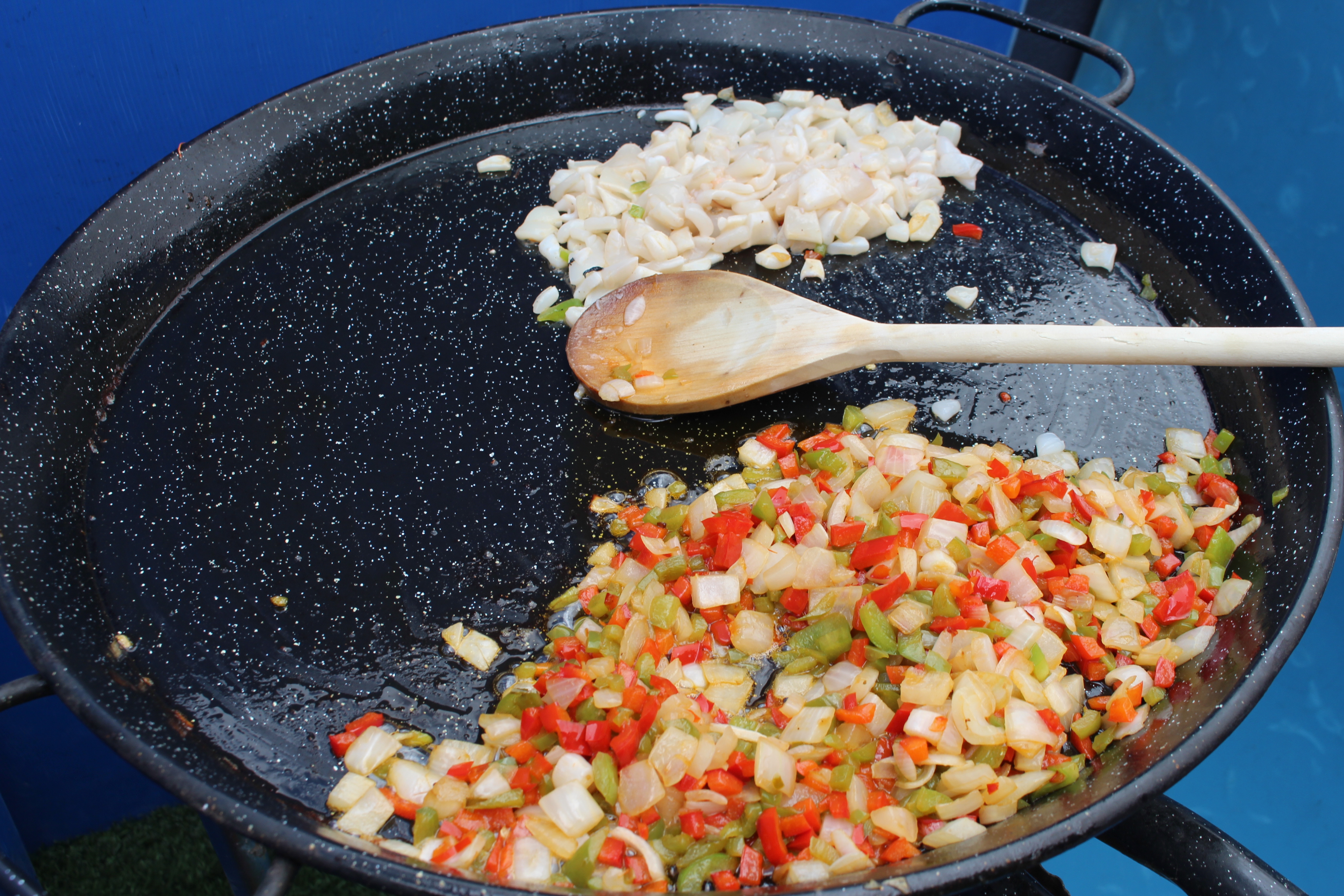 Los arroces iban saliendo con puntualidad británica. El primero en la competición fue Alberto García, violinista del grupo Celtas Cortos. Preparó un arroz bomba de conejo y pollo.