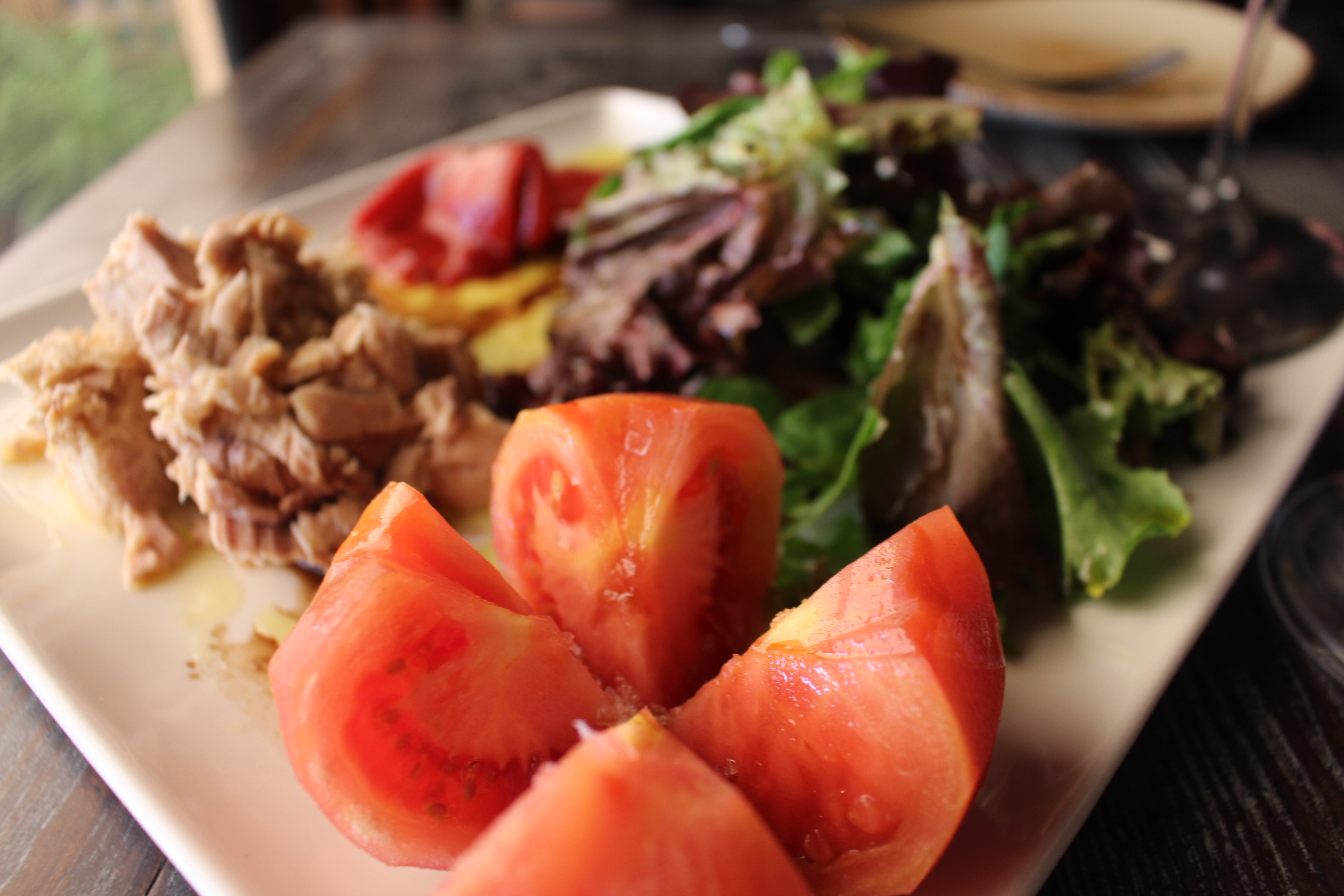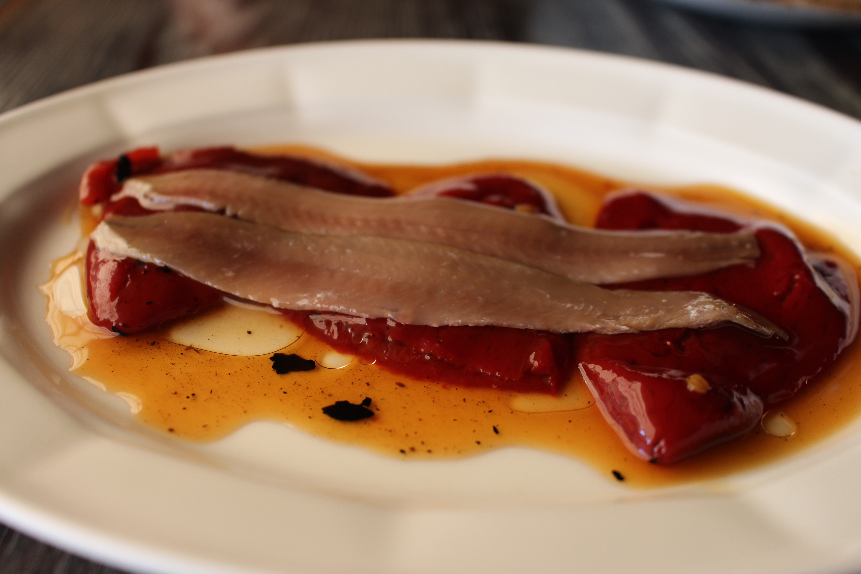 Entre las delicias que probé, destacaría unas excelentes croquetas caseras, una tosta de morcilla con pimientos caramelizados, unas estupendas anchoas  y una muy equilibrada y de intenso sabor ensalada de bonito en escabeche.