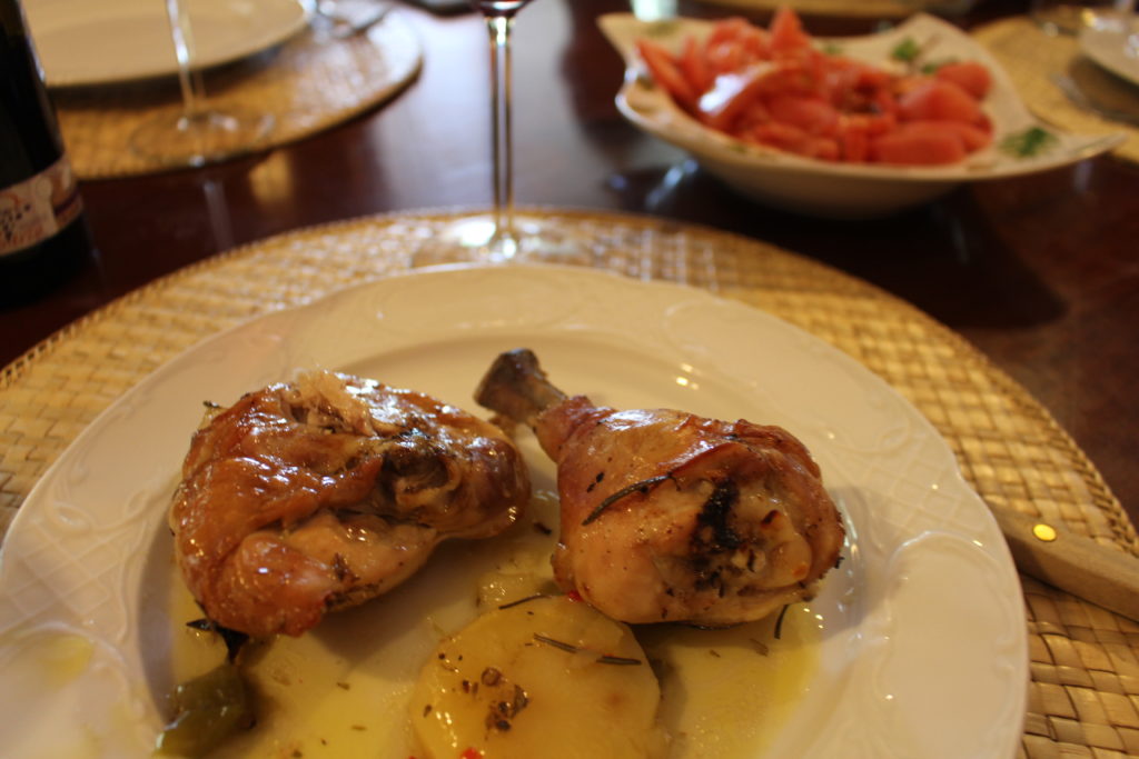 Contramuslos de pollo y ensalada de tomate