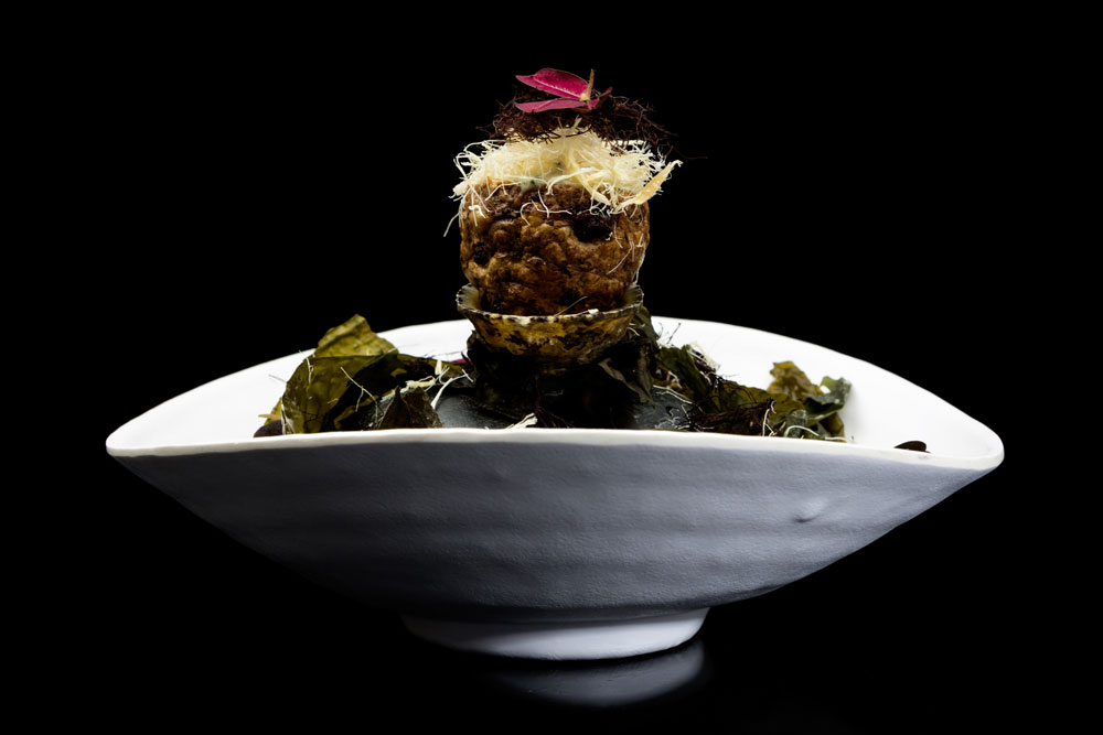 La tapa ganadora es un homenaje al producto más característico de la repostería mallorquina en cuanto a su aspecto desarrollada con la intervención de una salsa protagonizada por un producto inesperado como el cangrejo de río.