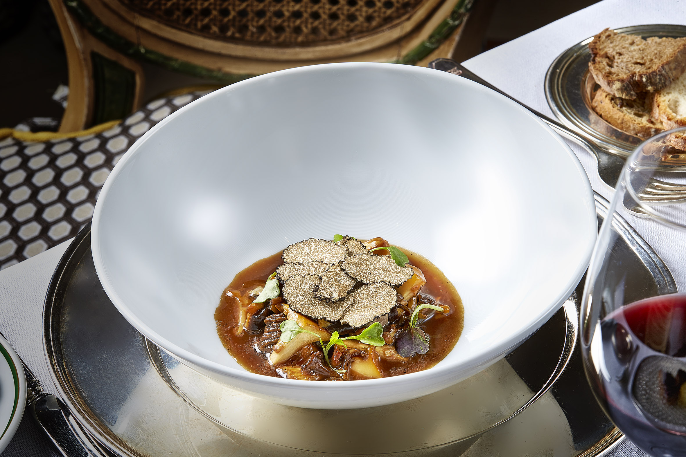 Guiso de seta de temporada con trufa, yema de huevo poché y foie