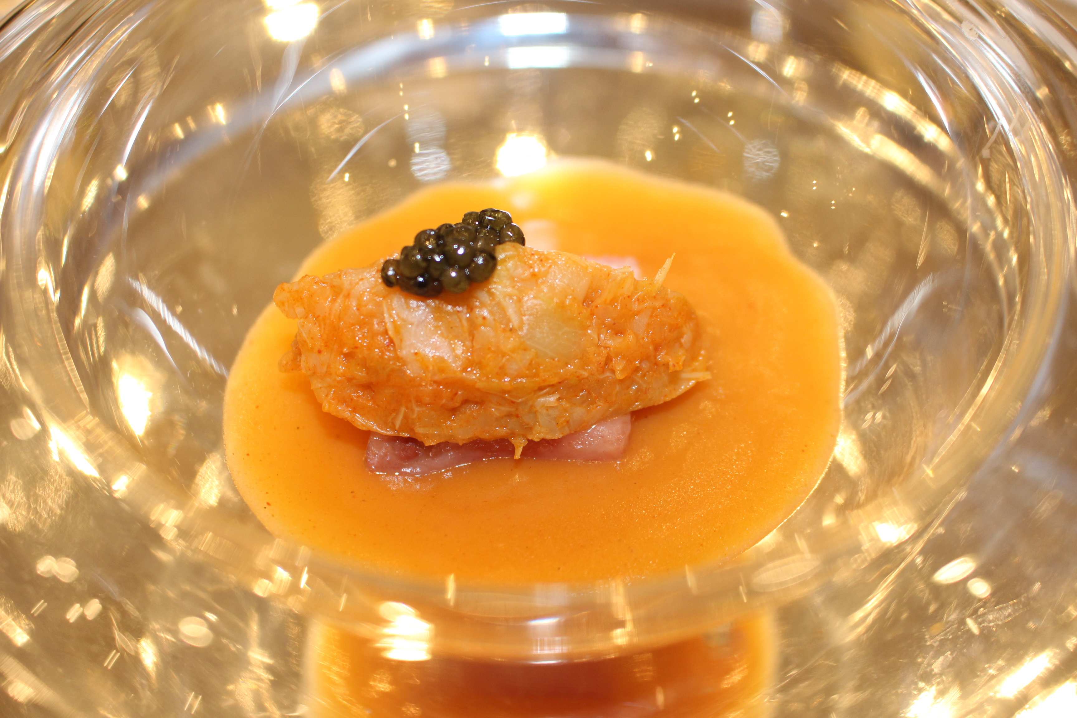Gamba blanca con jugo de jerez a baja temperatura